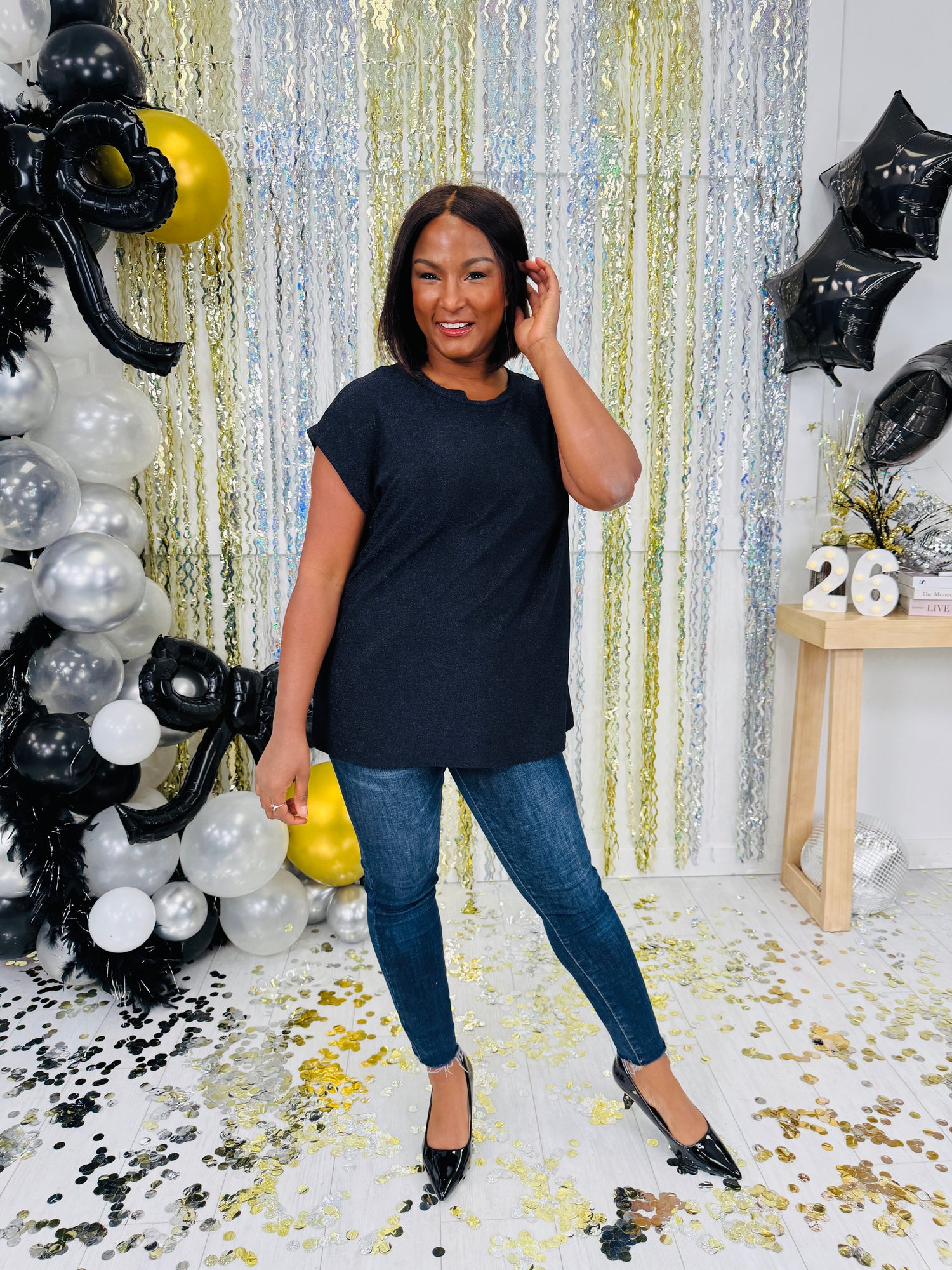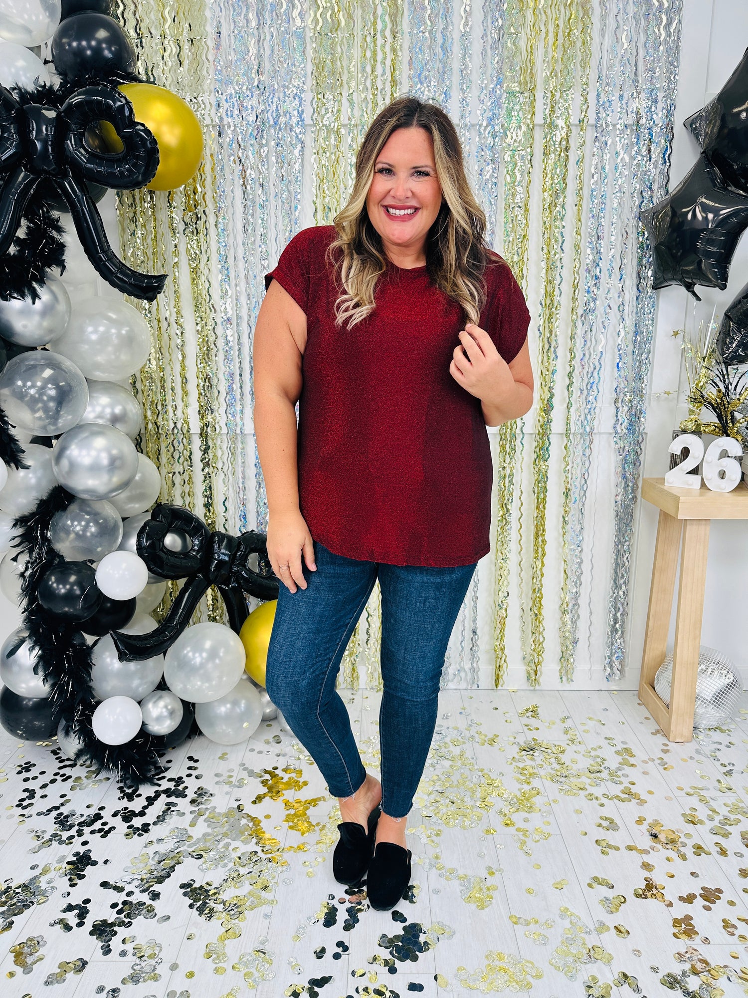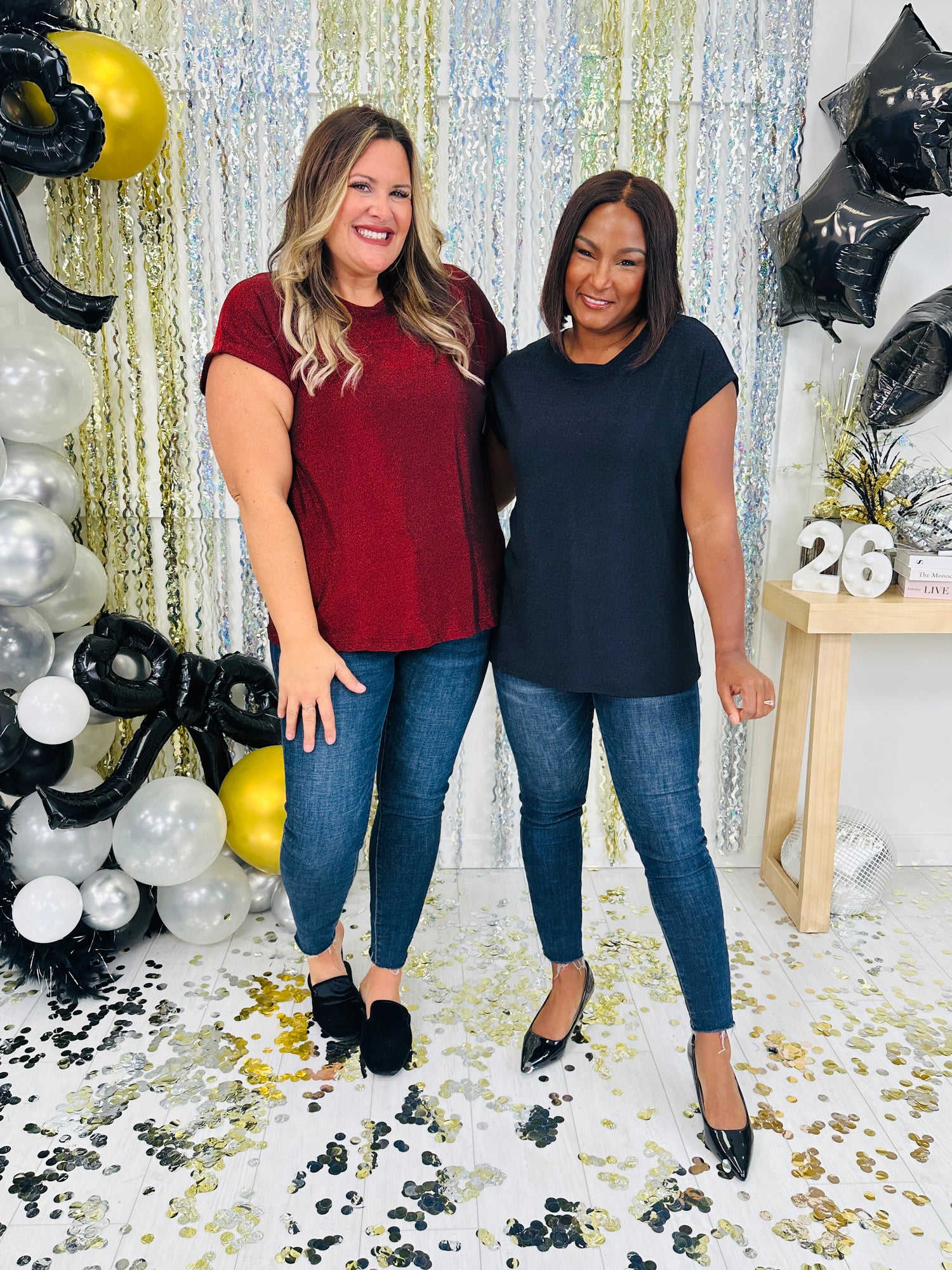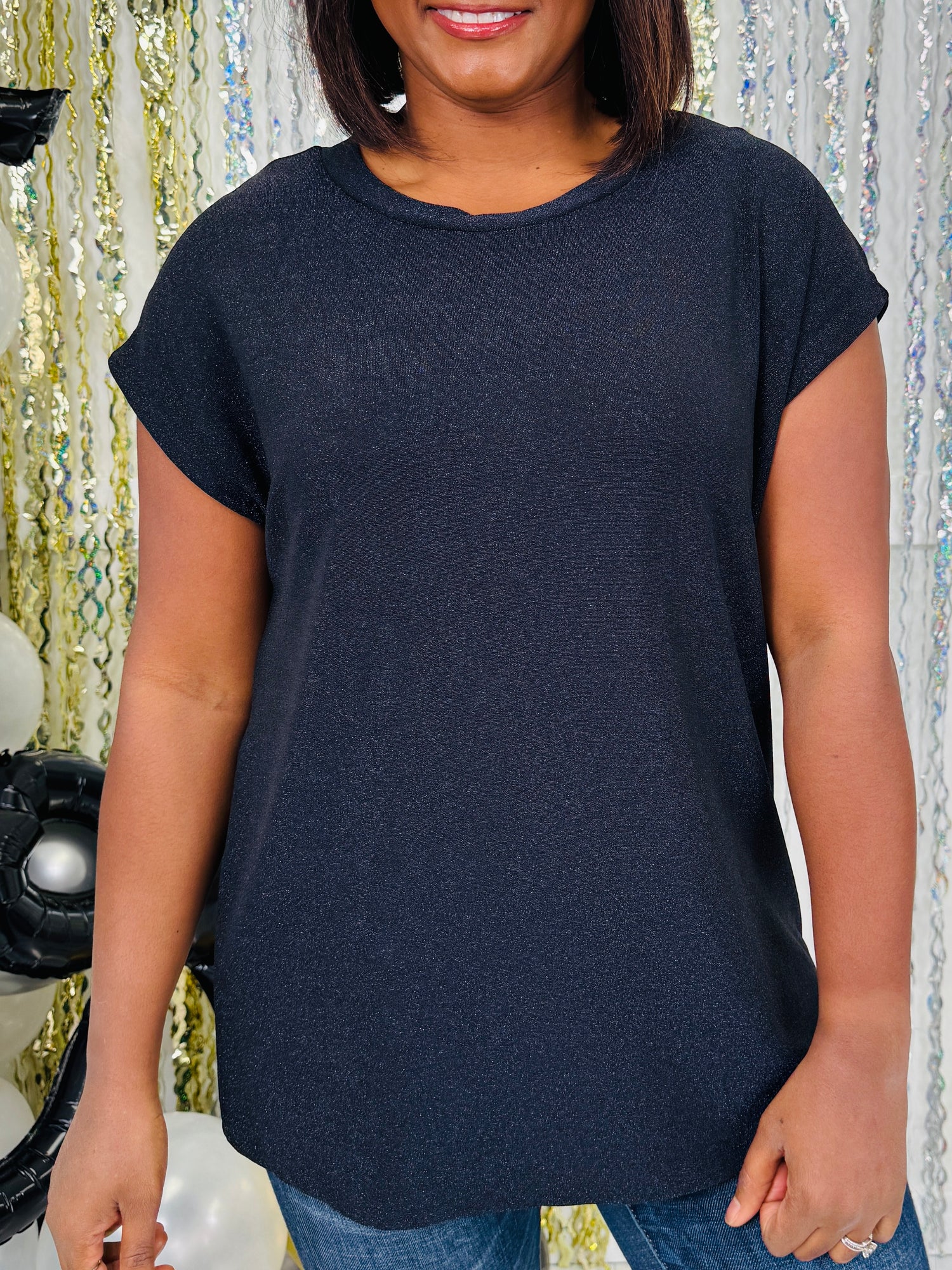 This stunning top features a shimmering fabric that adds a touch of sparkle and elegance to any look. Its relaxed fit ensures comfort, while the round neckline gives it a timeless, versatile style. Available in several colors, this piece is perfect for dressing up or down, making it a go-to choice for both casual and special occasions.
