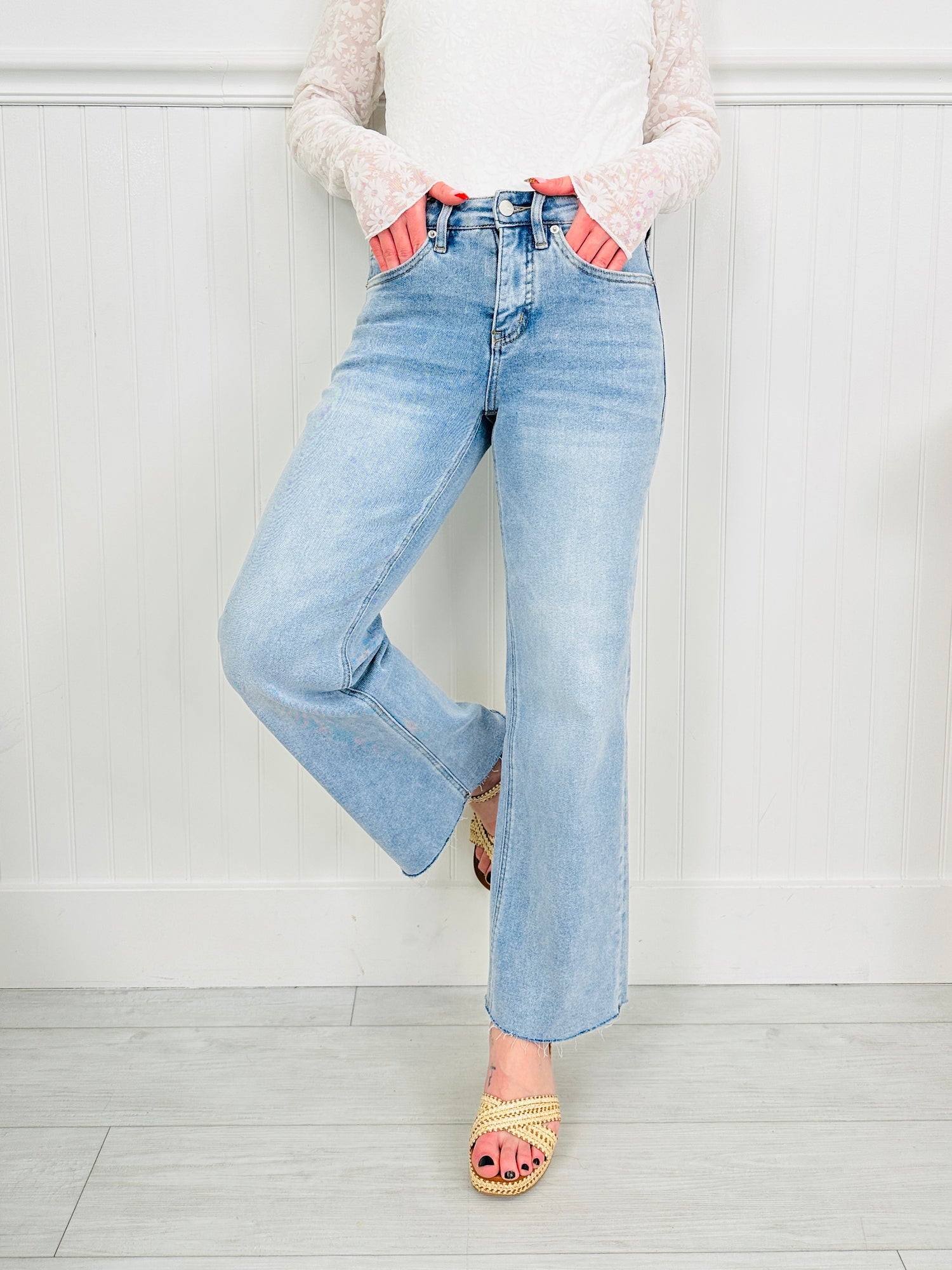 All Eyes on Me Tummy Control Wide Leg Cropped Jeans