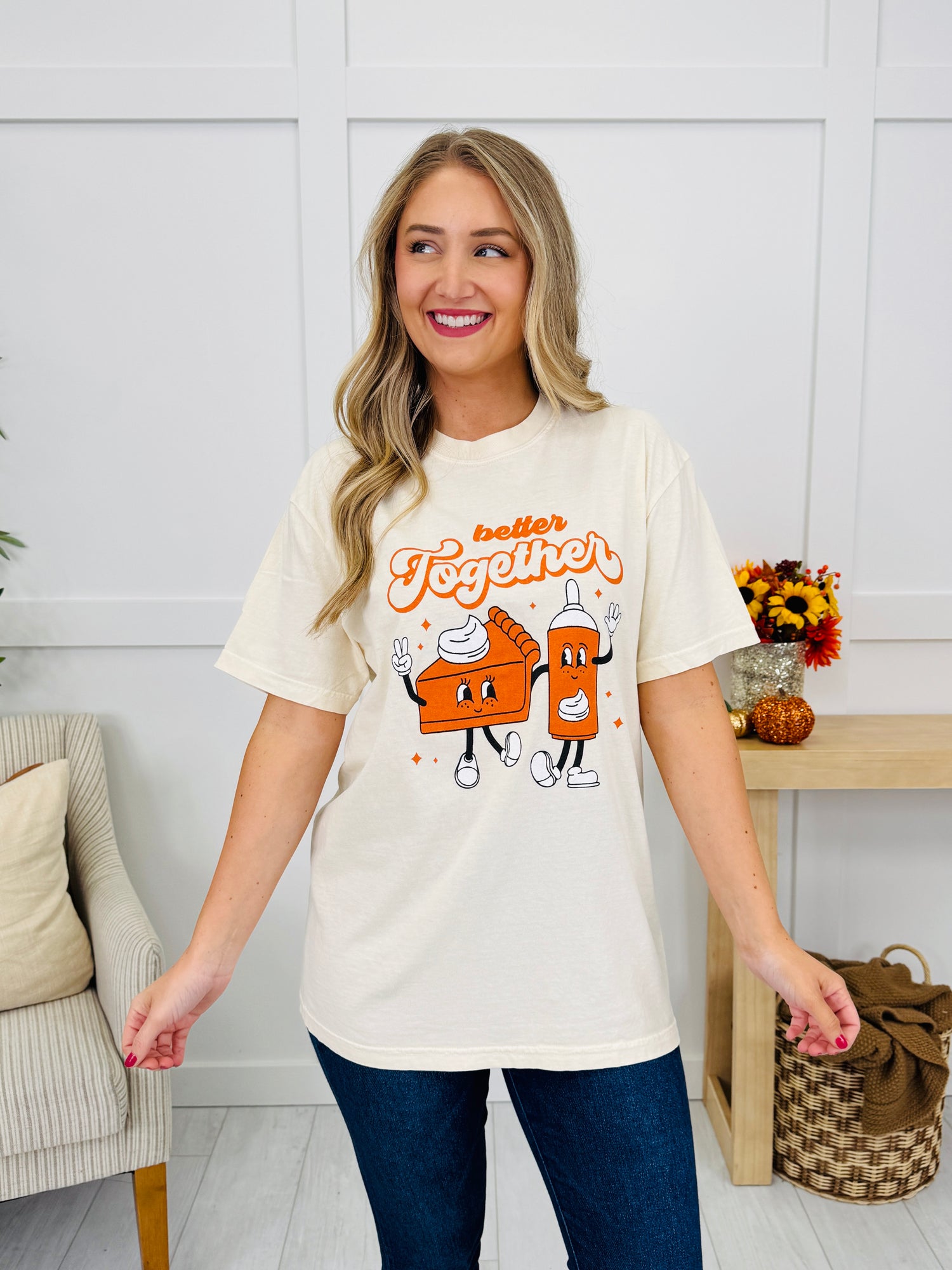 The Better Together Tee is the perfect mix of fun and festive for the fall season. Featuring a retro-inspired pumpkin pie and whipped cream graphic, this tee captures the sweet side of Thanksgiving with a playful twist. The vibrant orange and cream design gives it a cheerful, nostalgic vibe that’s ideal for holiday gatherings, baking days, or cozy weekends.