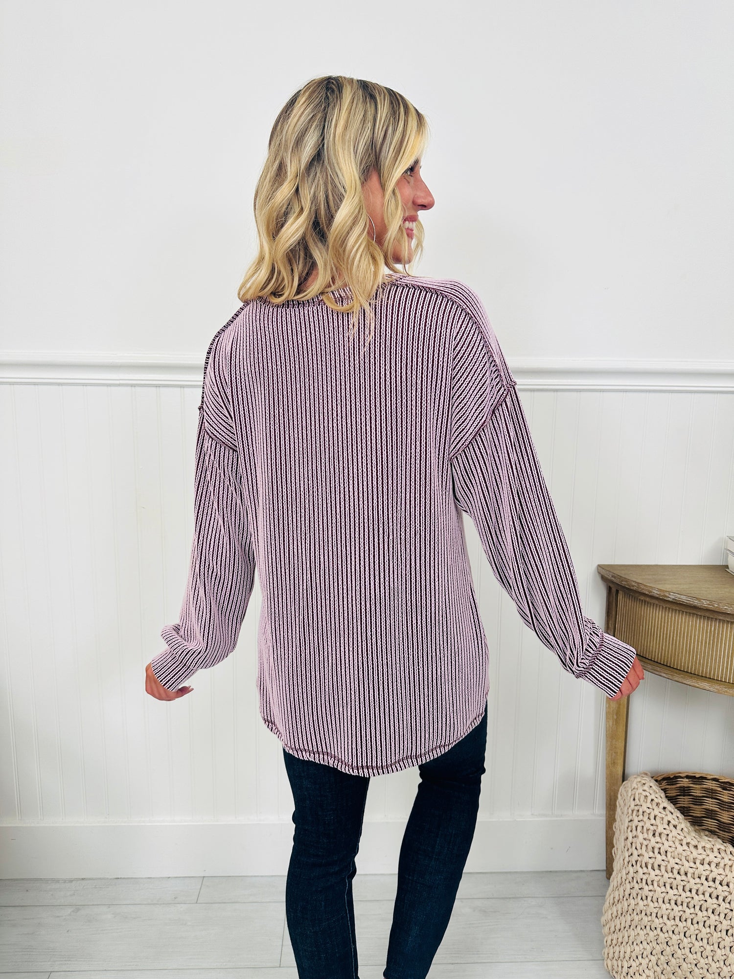 Your fall wardrobe will be better with this top, made from our best selling raised-rib fabric! The fabric is buttery soft and stretchy, and our customers rave about it constantly! This piece stands out because of the white detail, which gives your outift an extra pop. Oversized, flowy, and flattering on every single body type, this top is under $40 so you should probably get multiple colors! ;)