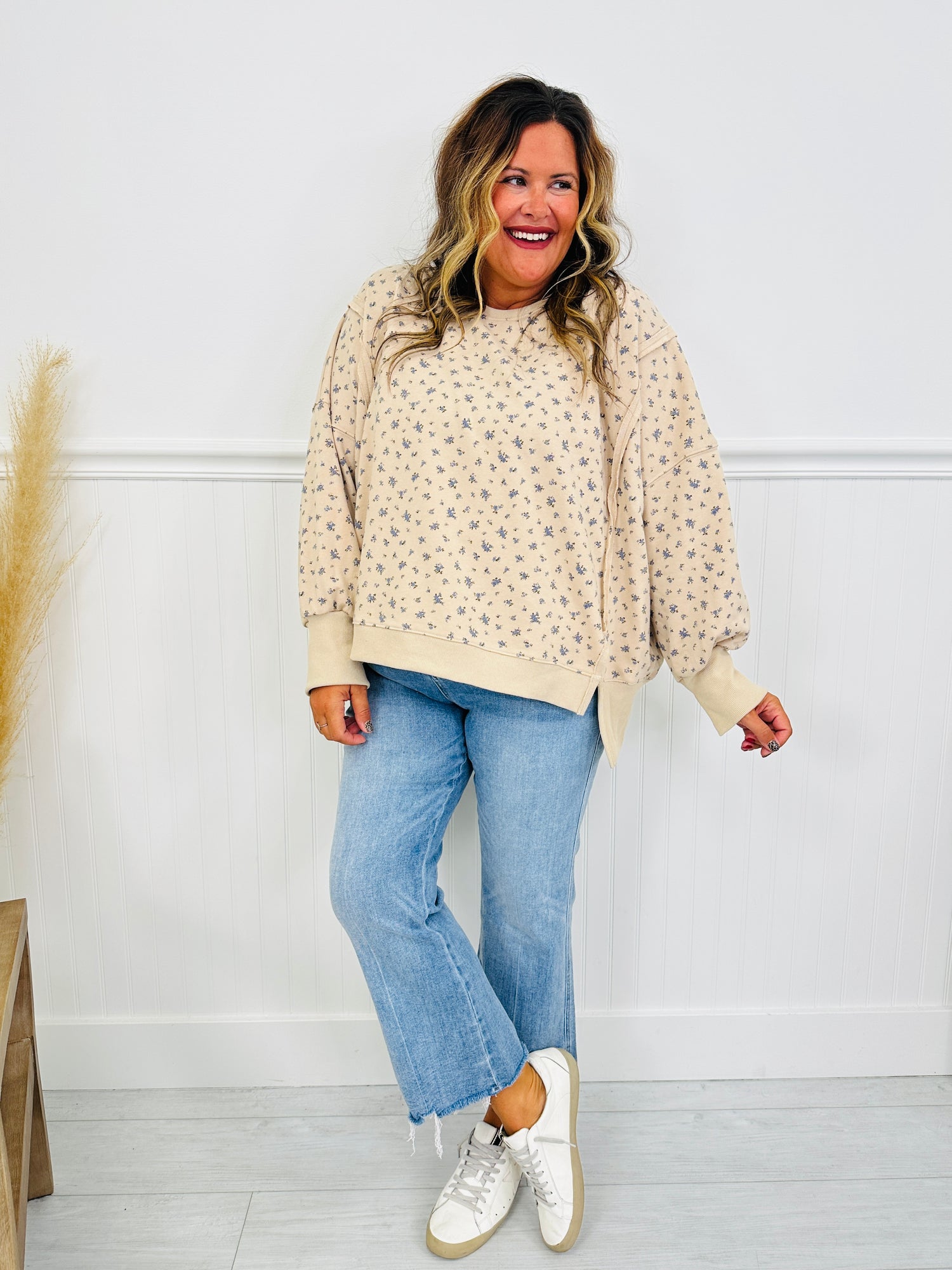 It's time to bloom into fall fashion and this new fall arrival is the perfect pullover to do just that. It's the perfect mix of cozy and trendy! Made from soft French terry material, it has that lived-in comfort you’ll reach for again and again. This best selling silhouette is oversized, flowy, and flattering on every body type. We love the trendy slits on the sides and on the sleeves.