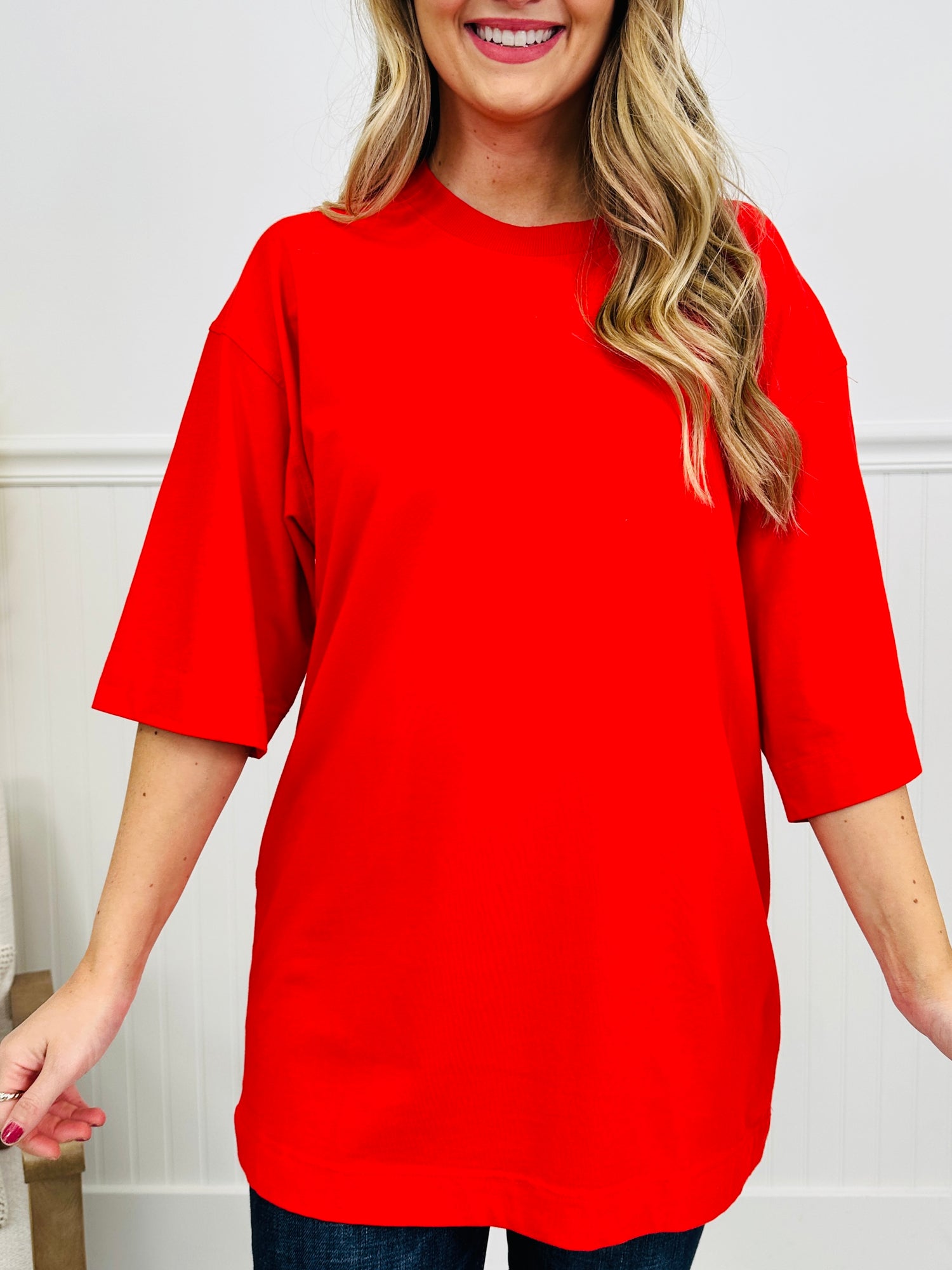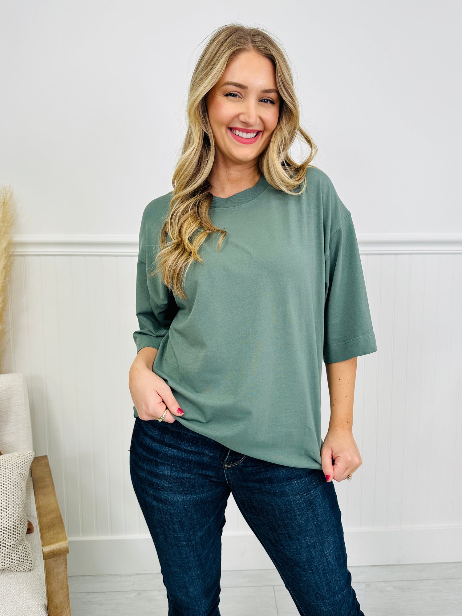 This essential tee is the ultimate go-to for effortless styling, featuring a classic crew neckline and a relaxed, easy fit that’s perfect for everyday wear. The versatile solid design makes it simple to pair with anything in your closet, whether you’re keeping it casual with jeans or layering it under a jacket. With its timeless look and comfortable feel, this top is one you’ll reach for again and again.