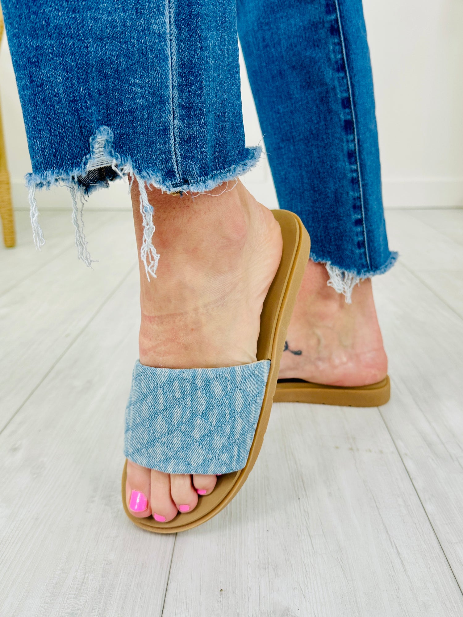 The soft, quilted denim strap adds a trendy touch to these slip on shoes, while the open-toe design keeps your feet cool and breathable. With a cushioned sole, these slides provide all-day comfort for running errands or relaxing with friends.