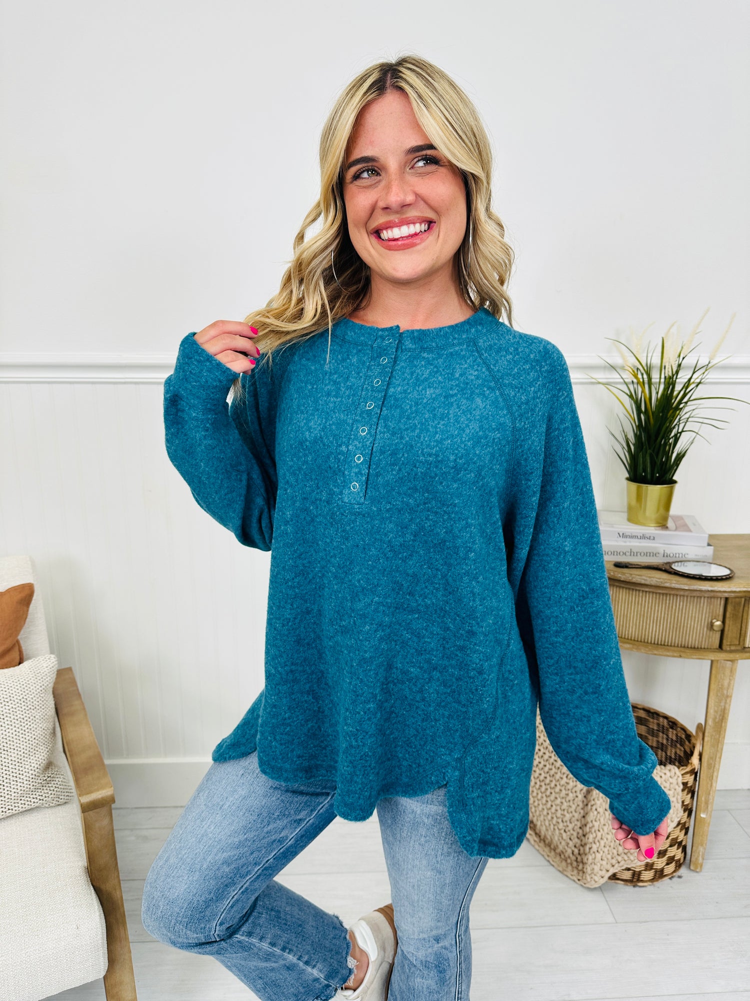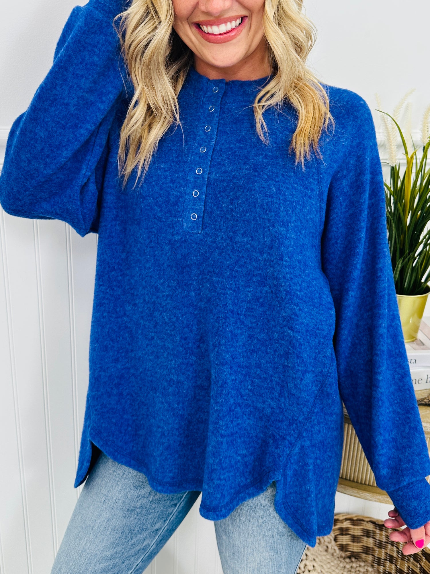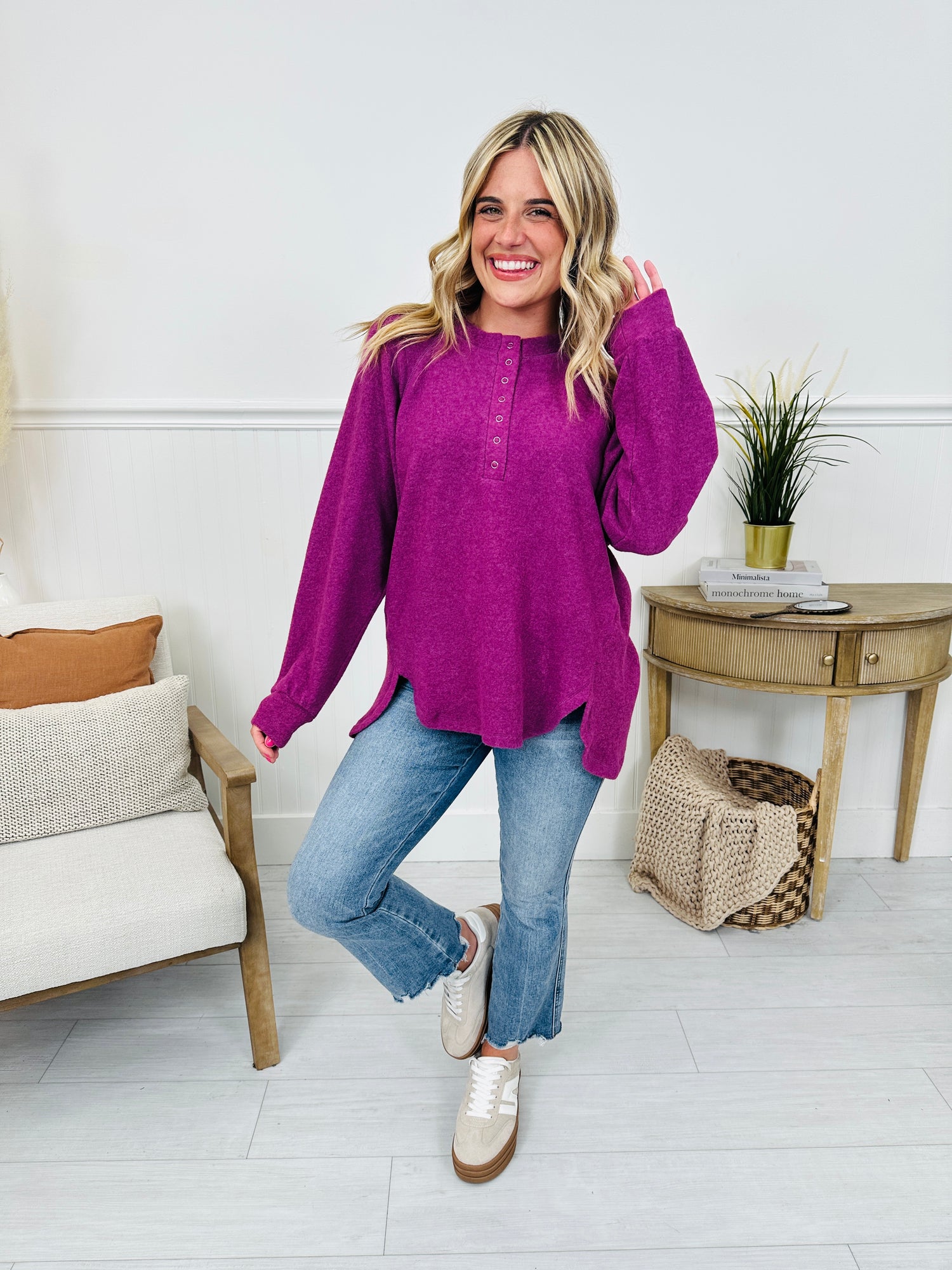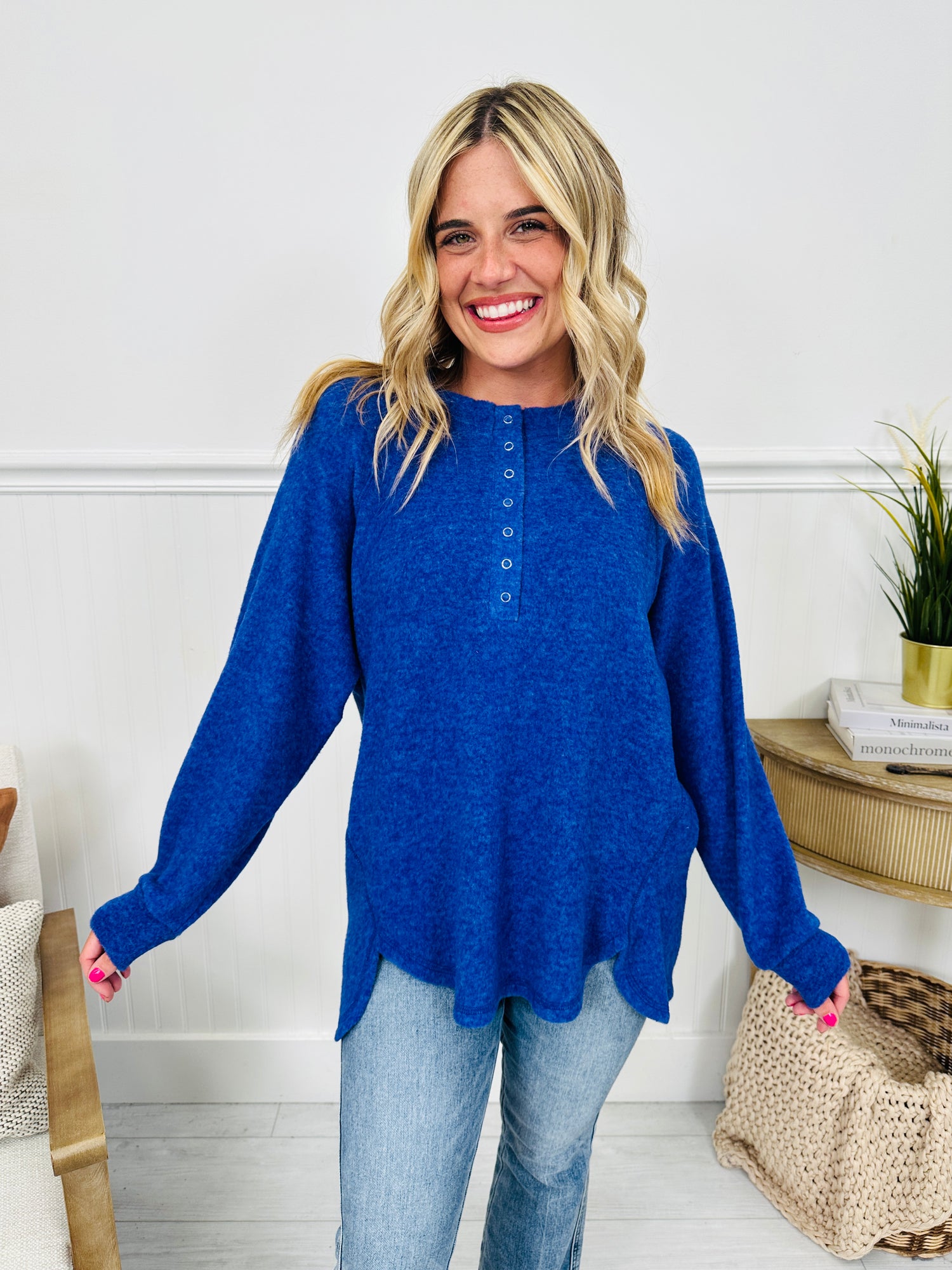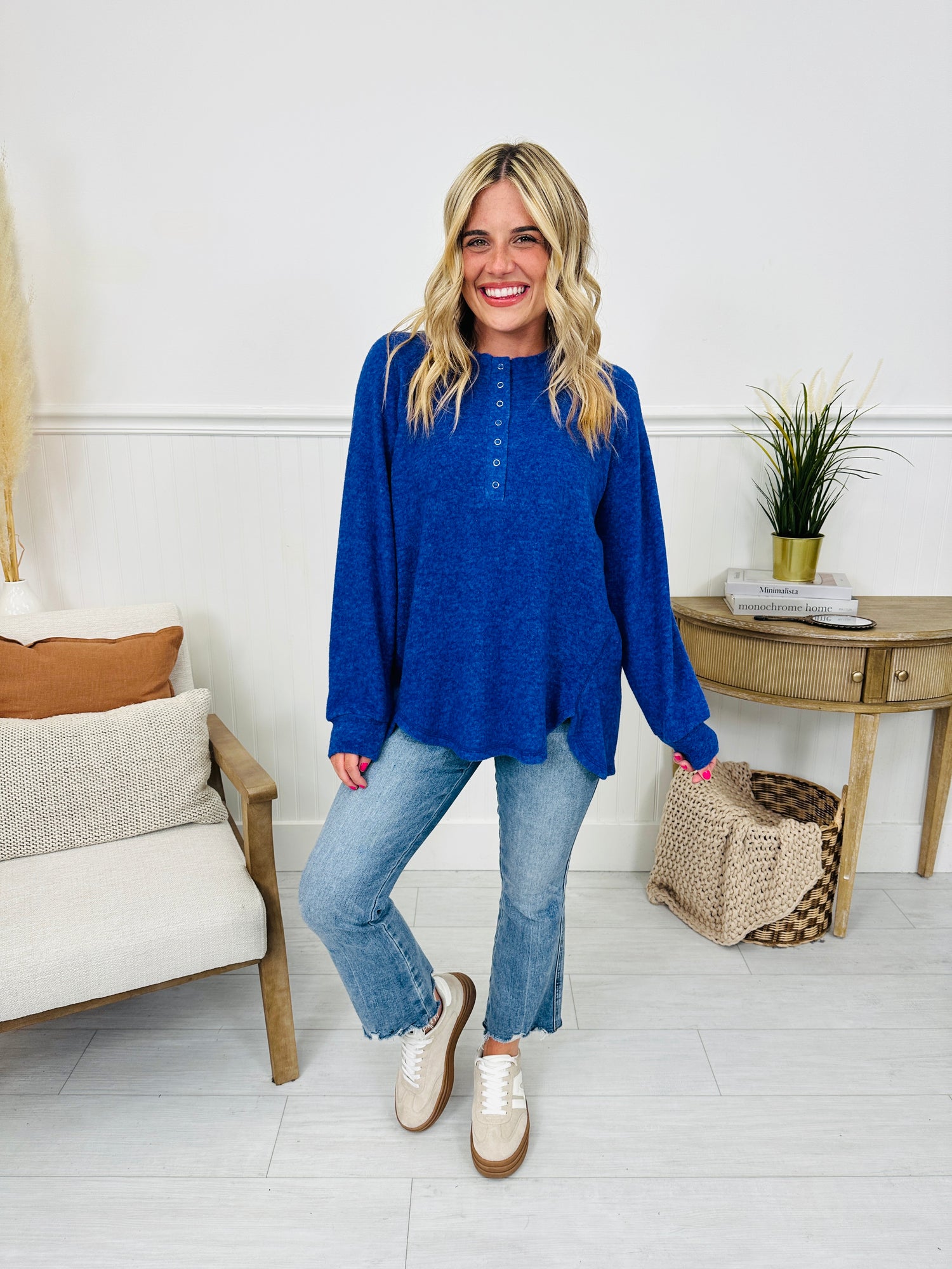This new fall arrival will be your favorite new cozy crush this season. This material is brushed soft and so cozy and comfortable. It has stretch and the flowy fit is flattering on every single body type! You can pair with jeans or leggings for multiple, versatile looks. The functional snaps also give you the ability to style this top in several different ways. We love the bold colors and we know you will, too. Add this new arrival to your cart while you still can!