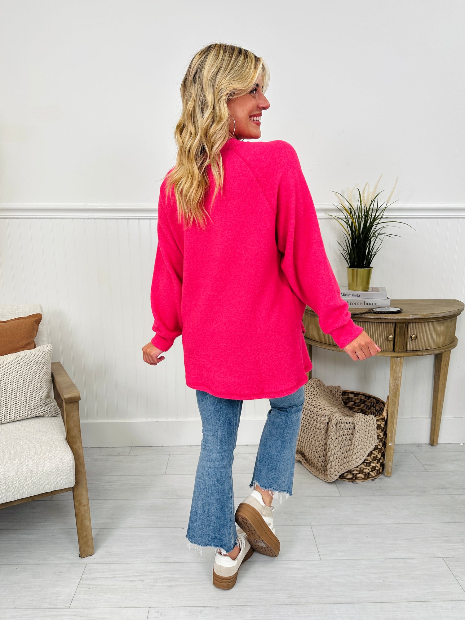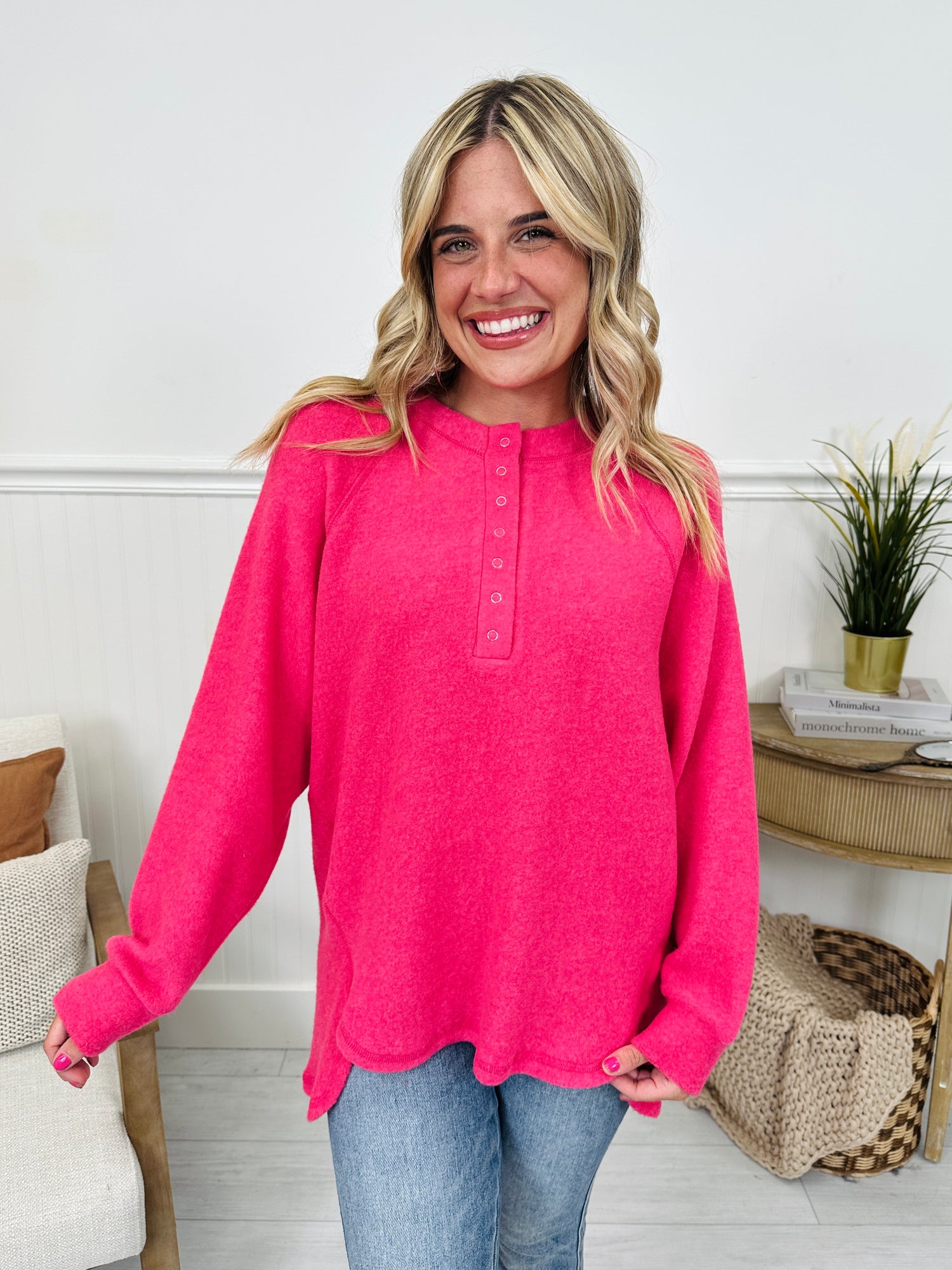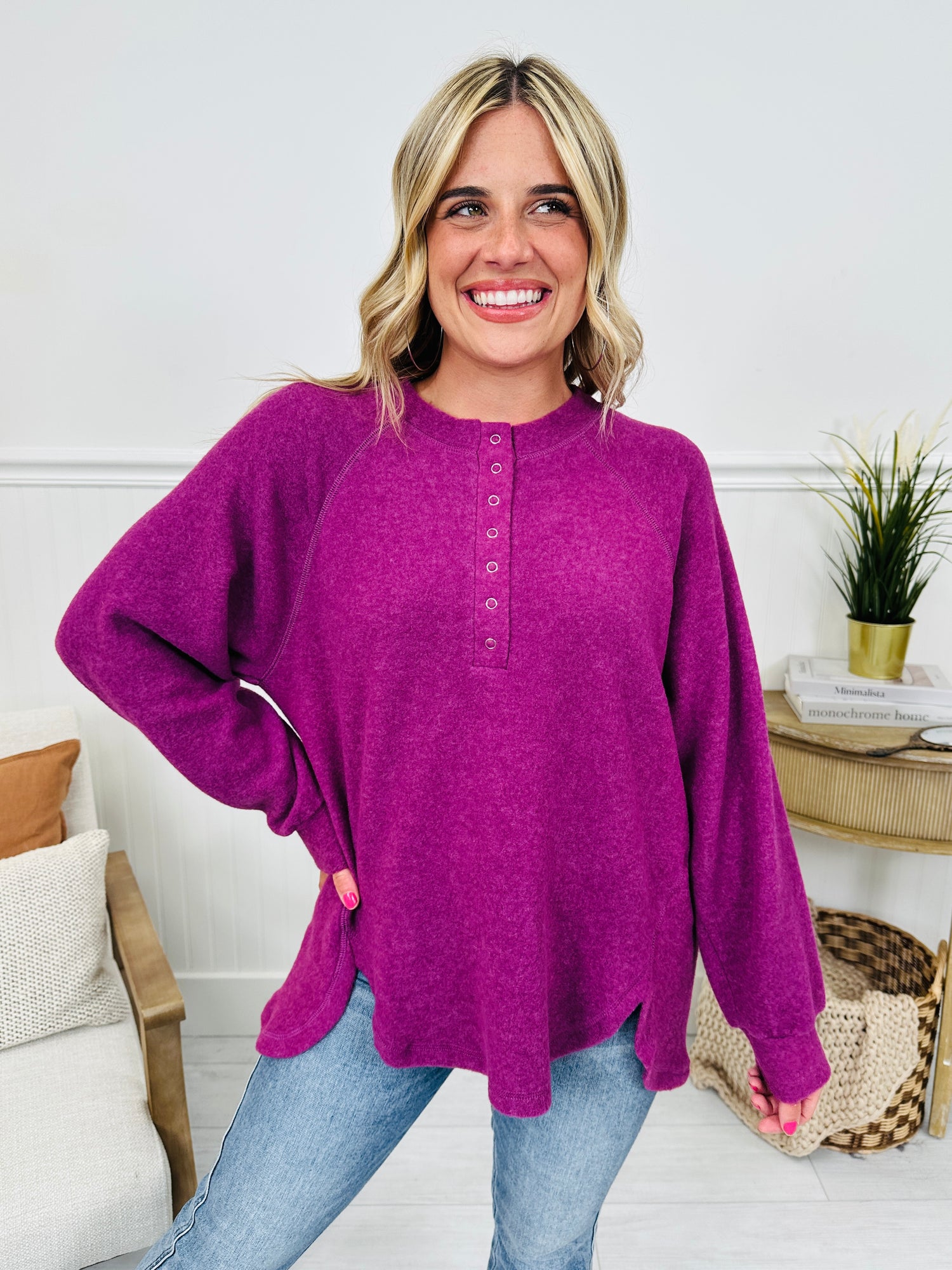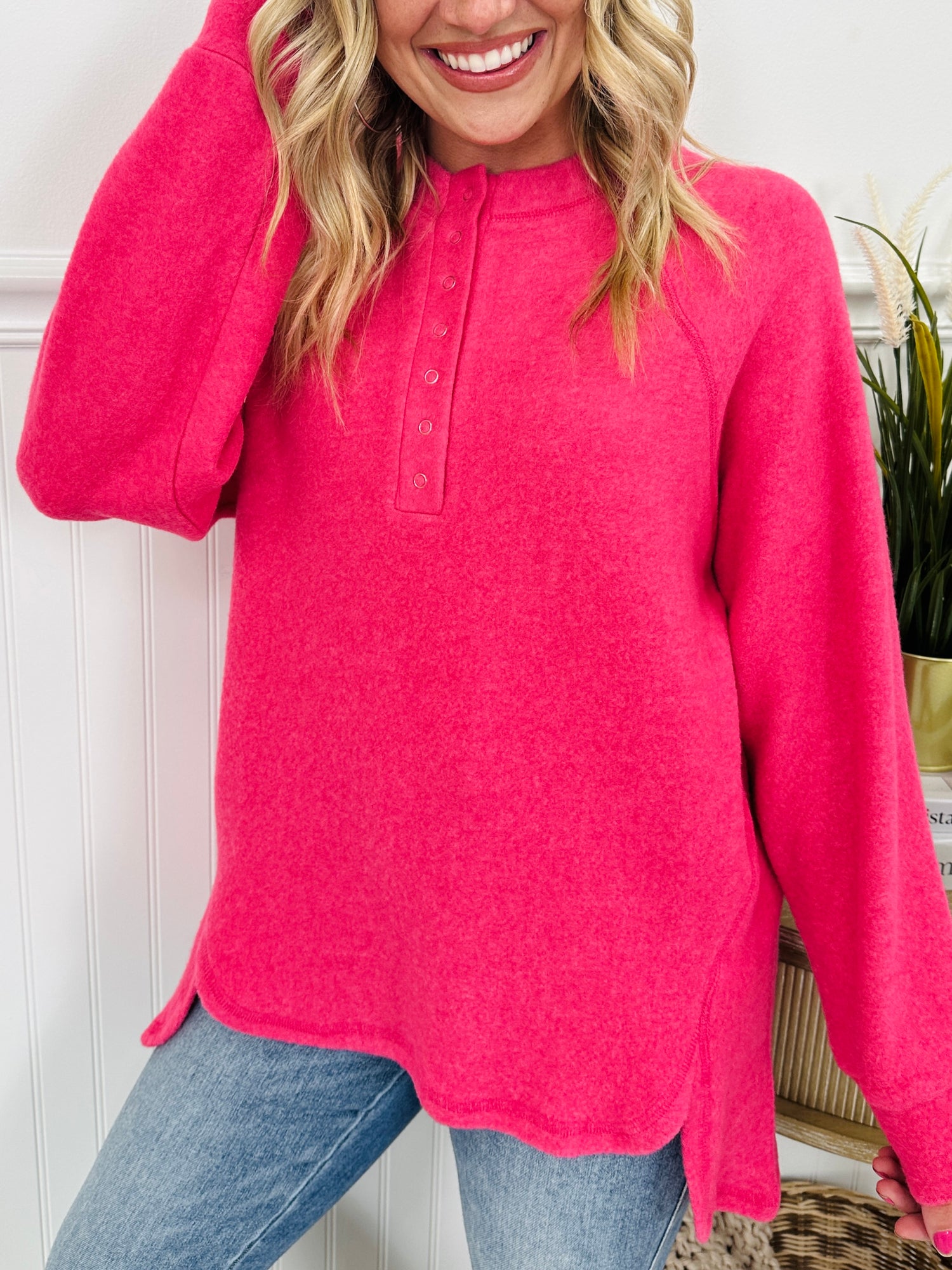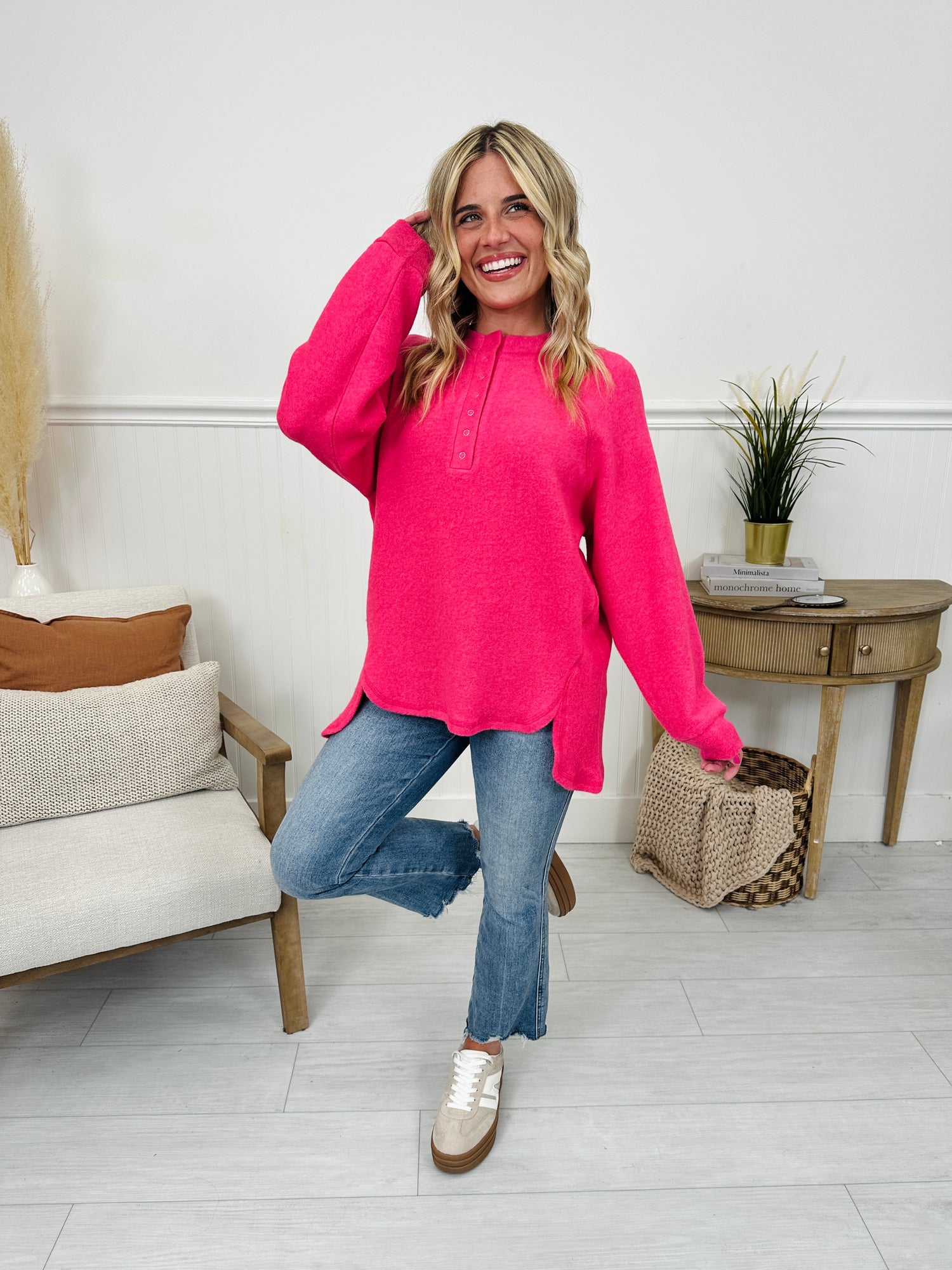 This new fall arrival will be your favorite new cozy crush this season. This material is brushed soft and so cozy and comfortable. It has stretch and the flowy fit is flattering on every single body type! You can pair with jeans or leggings for multiple, versatile looks. The functional snaps also give you the ability to style this top in several different ways. We love the bold colors and we know you will, too. Add this new arrival to your cart while you still can!