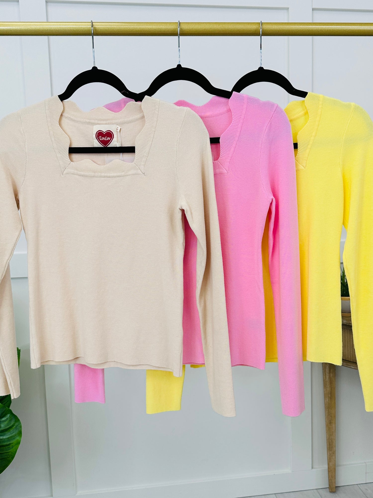 This top is the perfect blend of simple and stylish. The scalloped neckline detail adds a soft, feminine touch that instantly elevates the look, while the soft, stretchy knit keeps it comfortable and easy to wear all day. Long sleeves give it a polished feel that works across seasons, and the flattering fitted shape makes it perfect for pairing with denim, skirts, or layering pieces. Available in several colors, it’s an effortless staple you’ll love having in your closet.