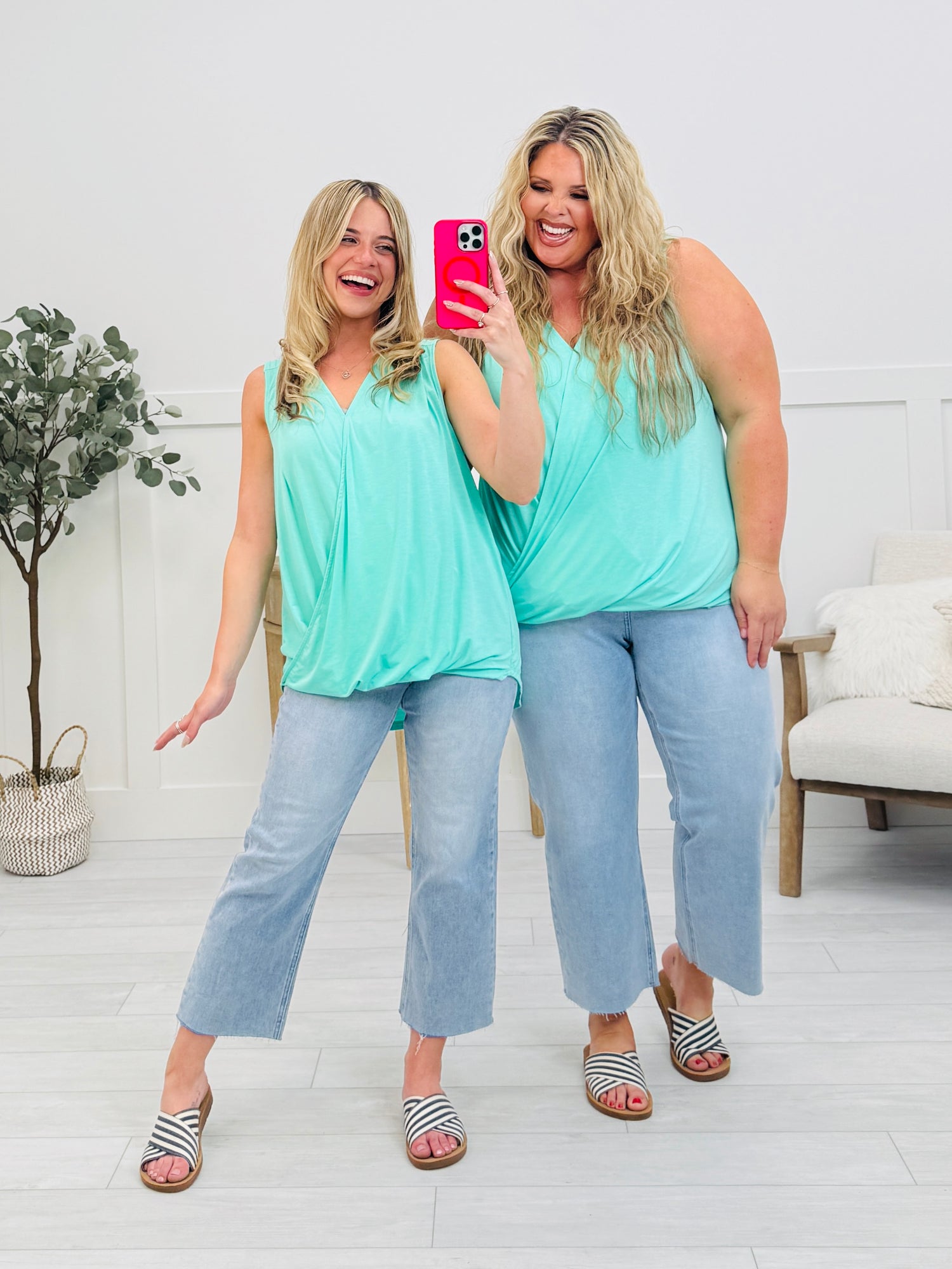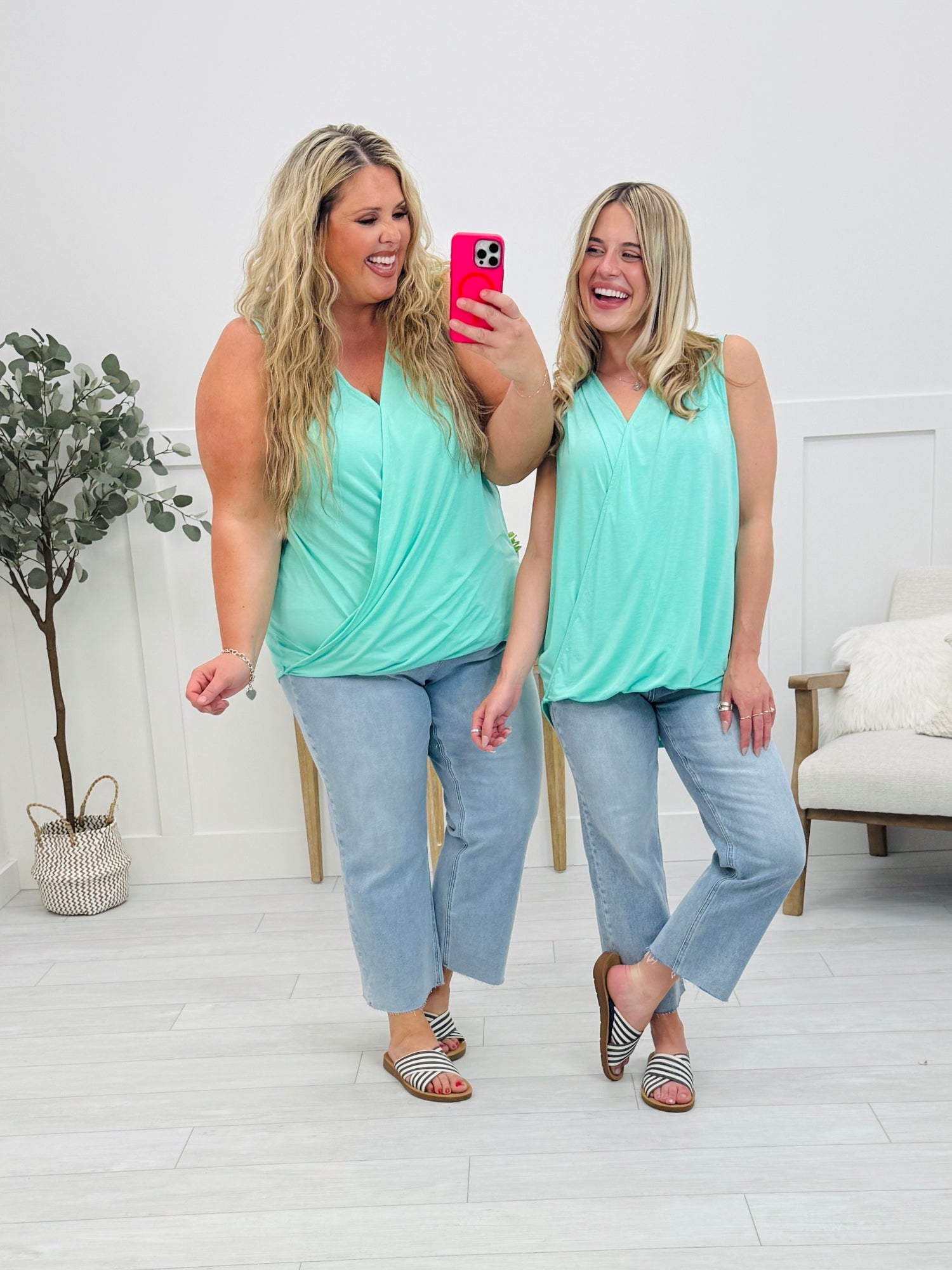 We are ready for sunshine and this new tank top is the perfect addition to your summertime wardrobe! This wrapped style top is so flattering on every single body type. The wrap is stitched so you do not have to worry about this top being revealing.