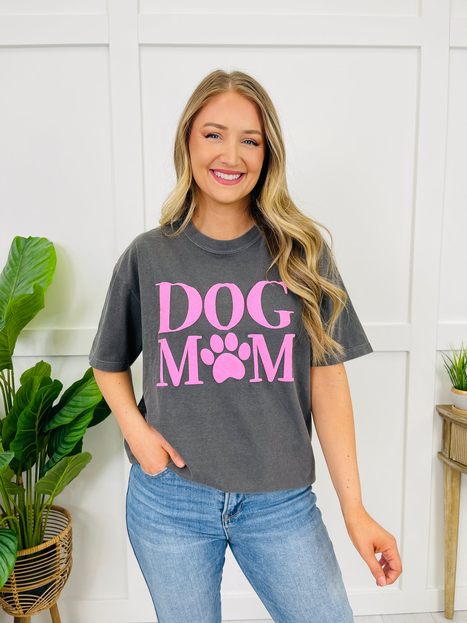 This tee is screen printed in house for long lasting wear on our best selling Comfort Colors Tees that our customers rave about for their lived in feel. This relaxed tee is perfect for casual days, dog walks, coffee runs, or lounging at home with your favorite pup. Pair it with jeans, joggers, or leggings for an effortless, feel-good look that celebrates your dog mom life in the cutest way.