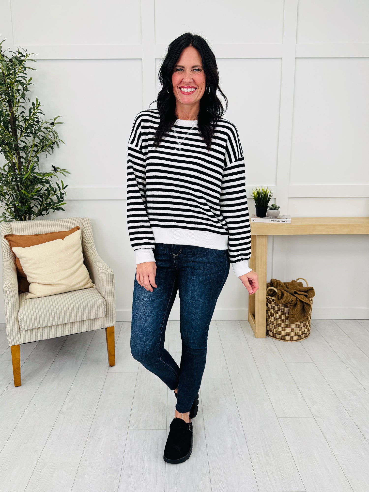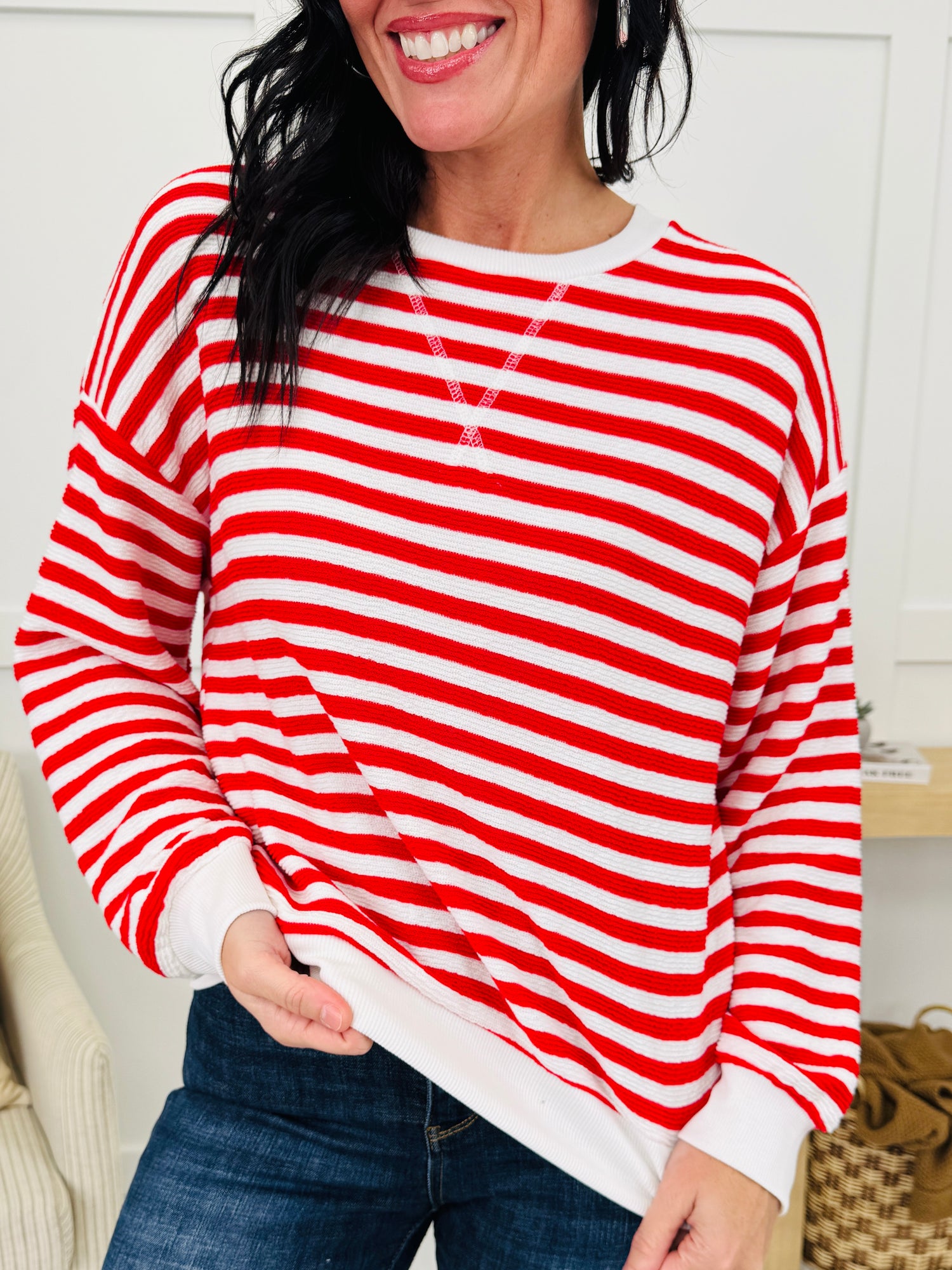 Add a pop of playful charm to your look with this bold striped top! Available in several fun color options, it’s perfect for mixing up your casual style. The contrast neckline trim adds a sporty touch, while the relaxed everyday fit keeps it effortlessly comfy and cute no matter which color you choose.