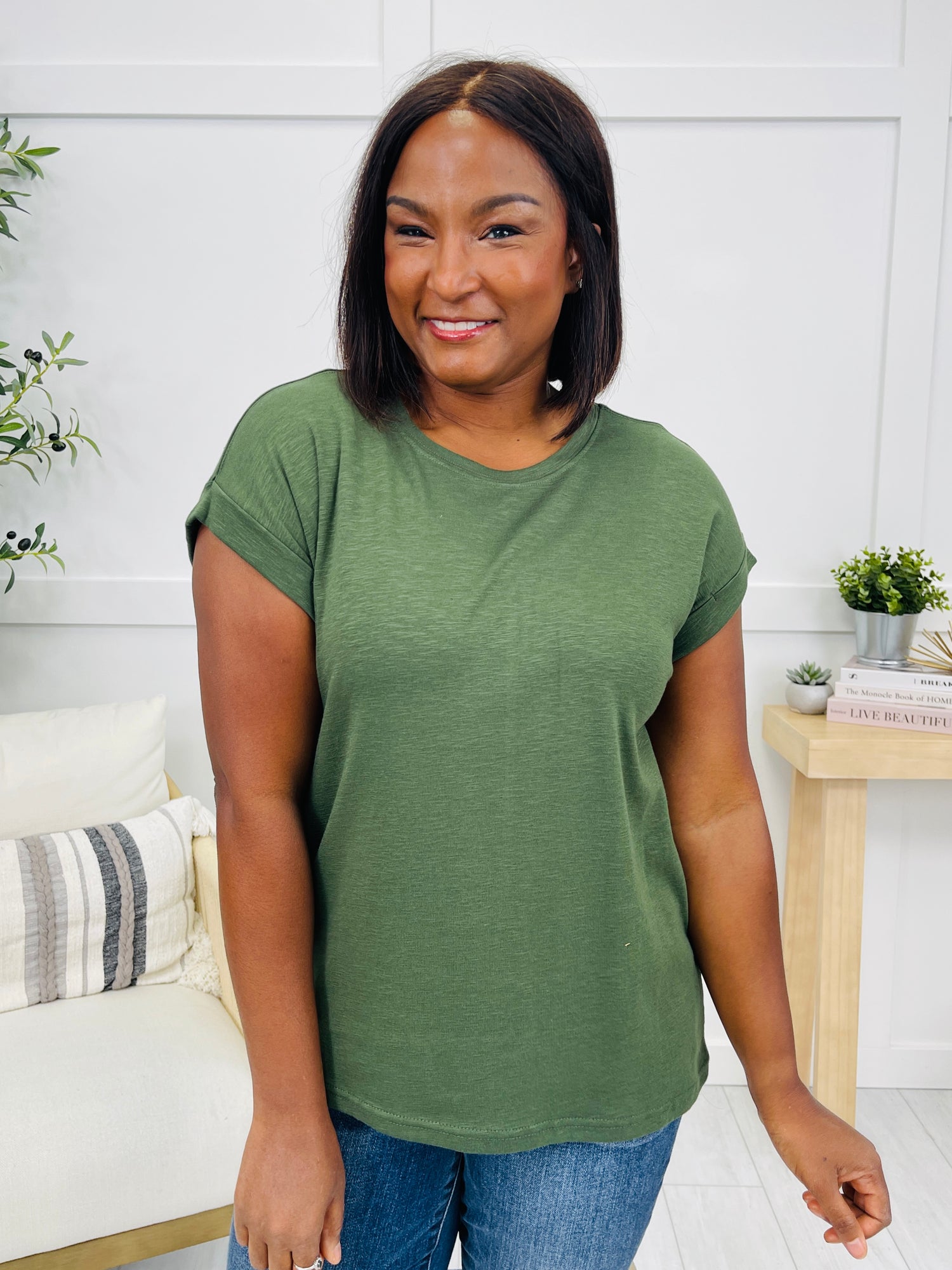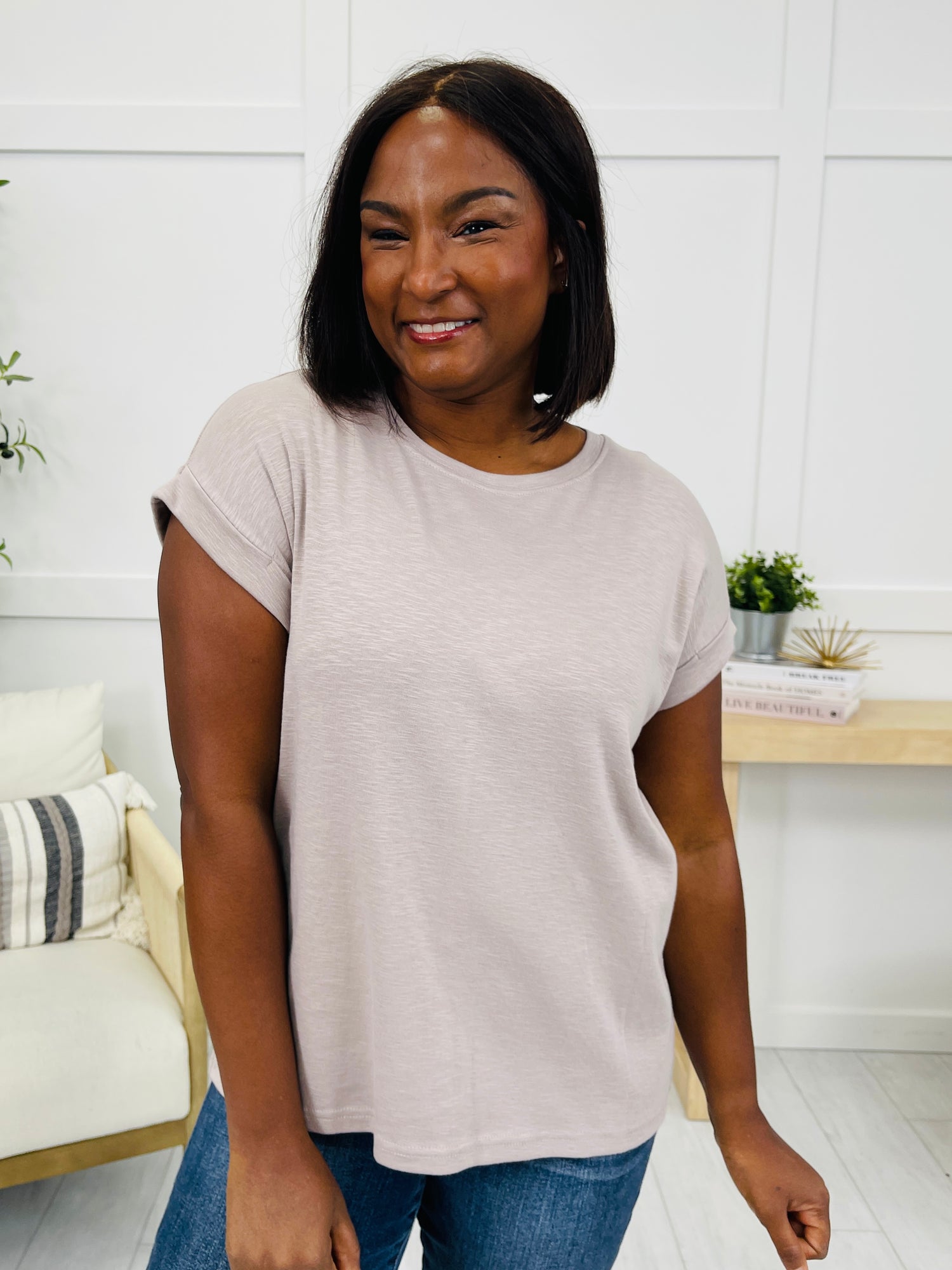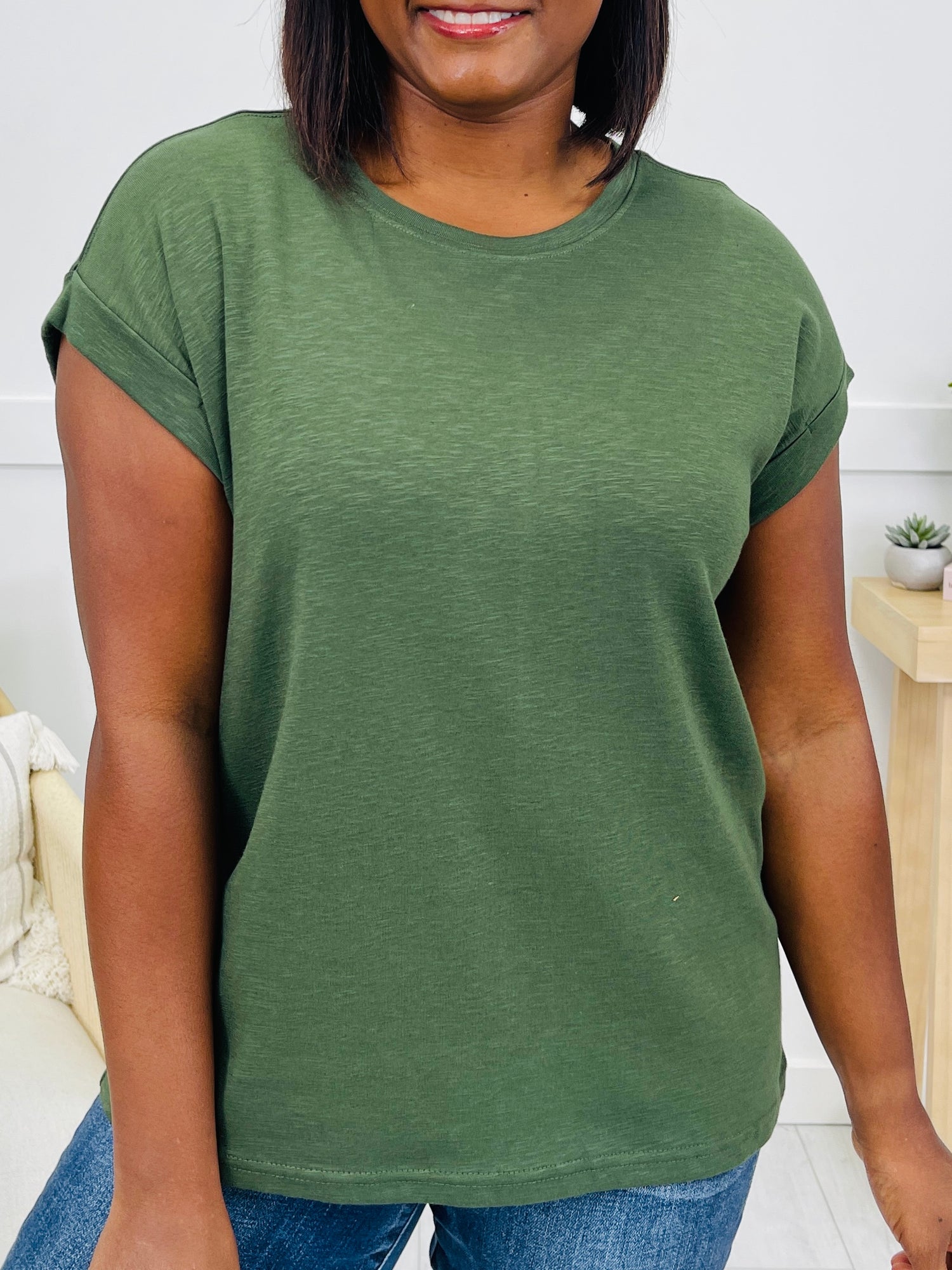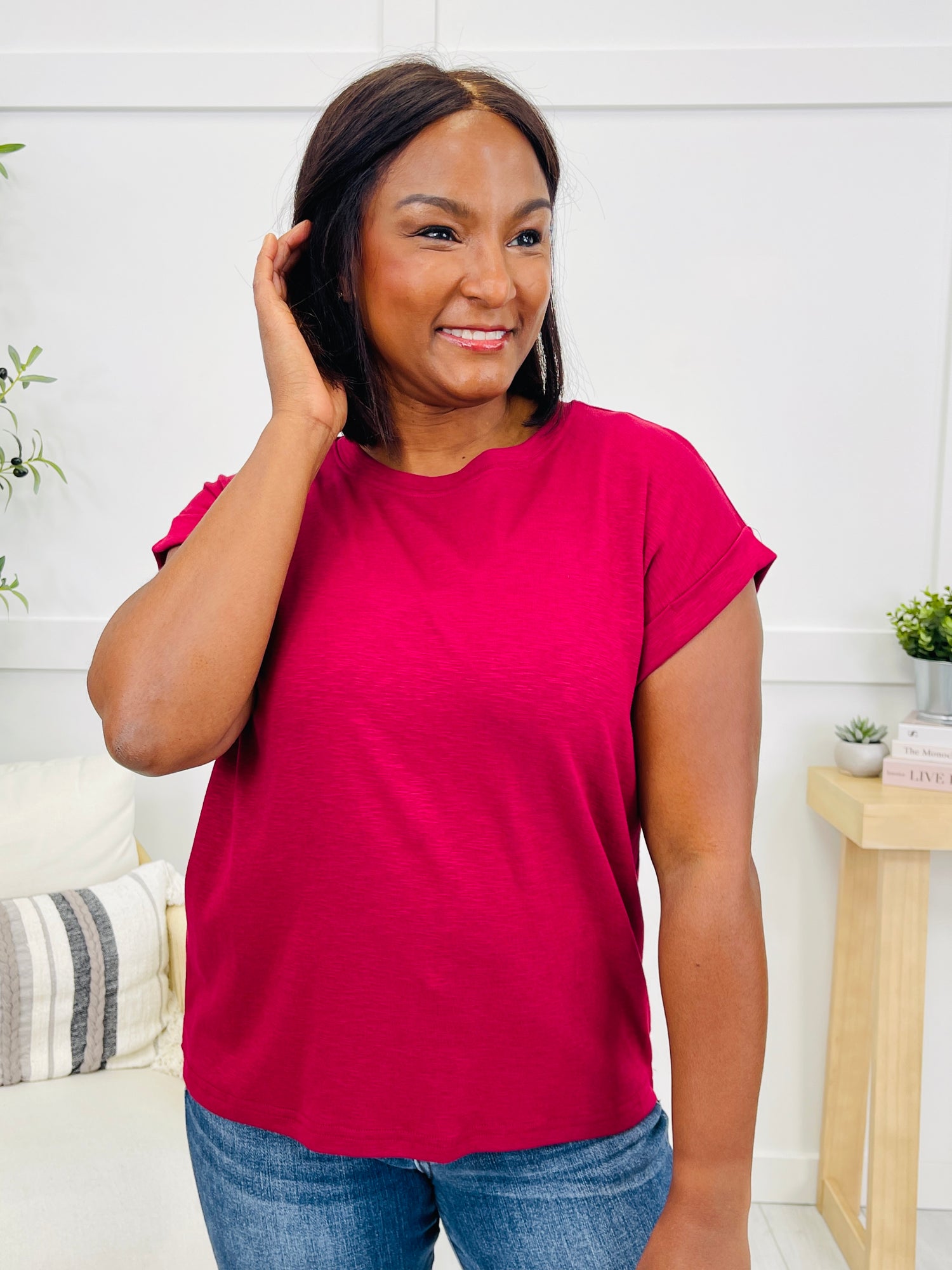 Brighten up your basics with this perfect everyday tee!  Crafted from soft, breathable fabric, this top features cuffed short sleeves and a flattering, slightly oversized silhouette for ultimate comfort and style. Available in both neutrals and bold, eye-catching colors, it’s the perfect everyday staple to add a pop of fun to your wardrobe. Pair with skinny jeans and wedge sandals for a casual-chic look, or tuck it into high-waisted shorts with white sneakers for a playful, laid-back vibe.