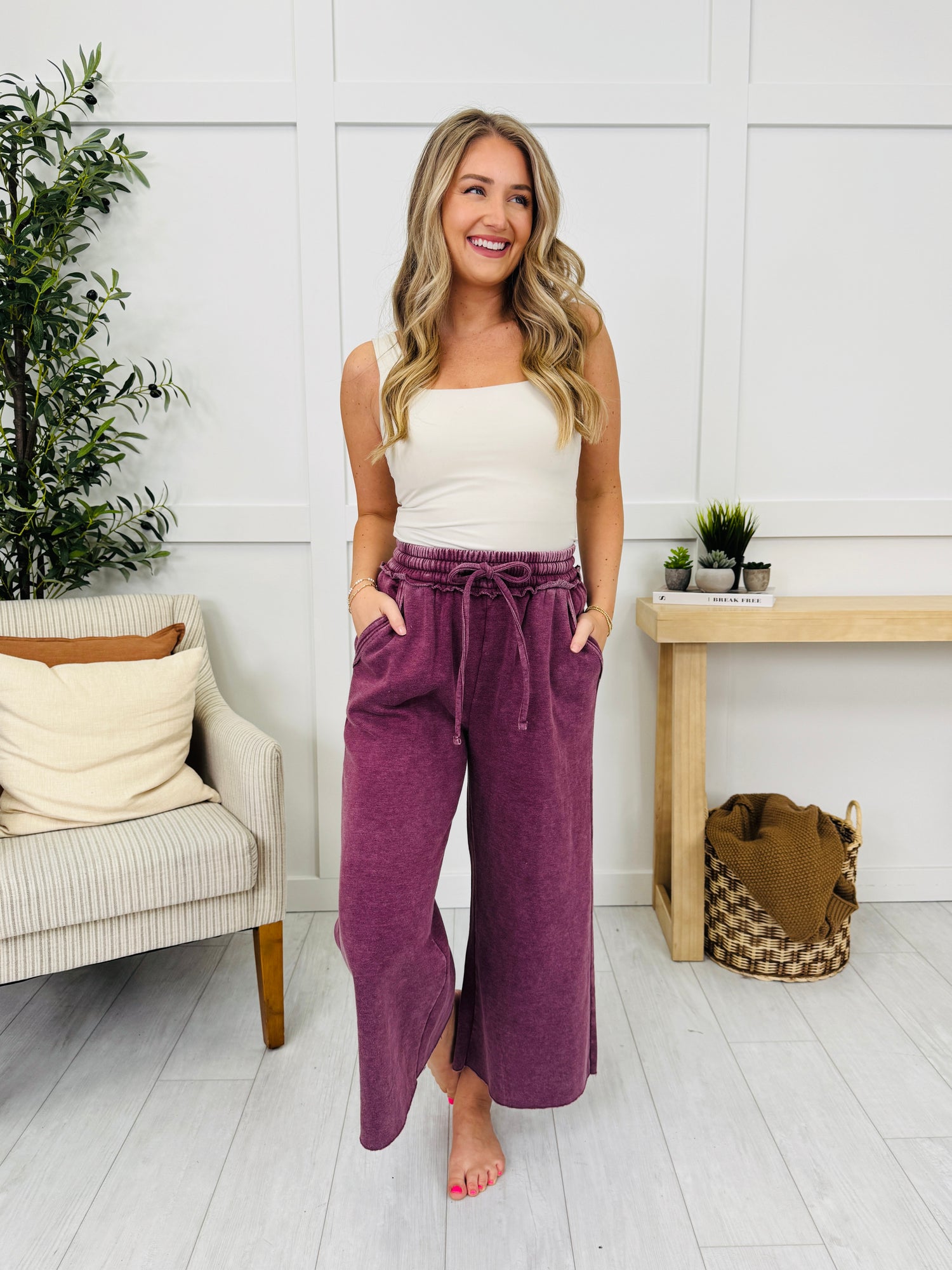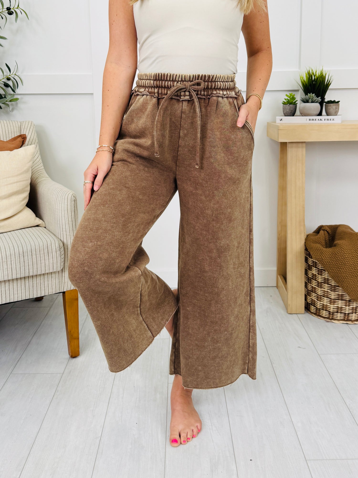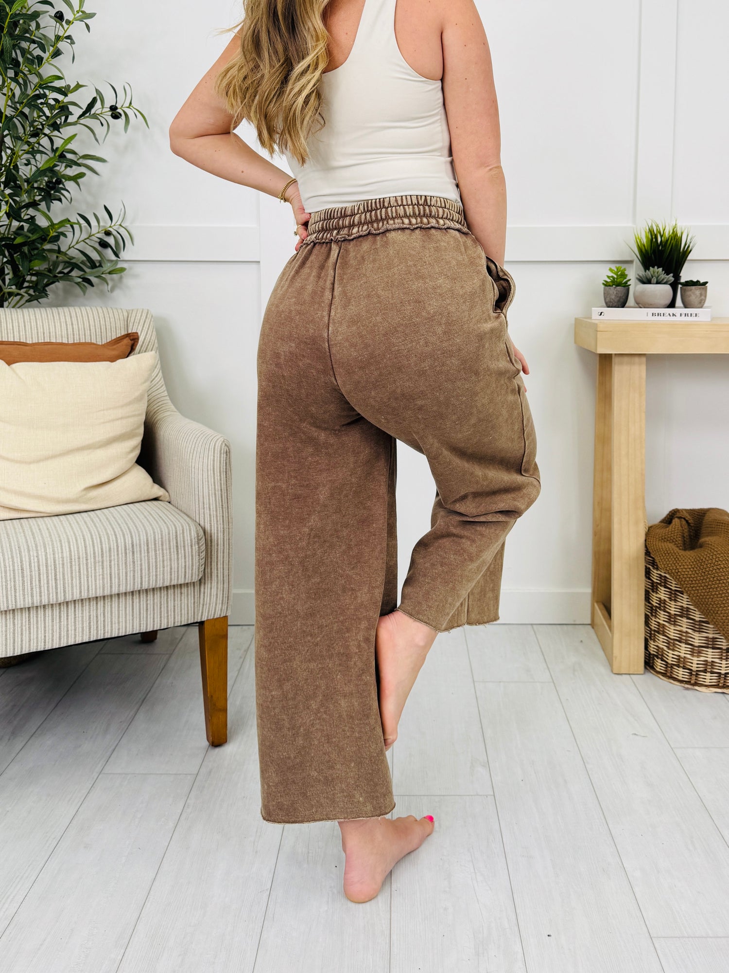 Relaxed and effortless, these bottoms feature a smocked elastic waistband with an adjustable tie for a comfy, stay-put fit. The drapey wide-leg silhouette hits at a cropped length for an easy, modern shape. Finished with side pockets and a soft, washed look you’ll reach for on repeat.