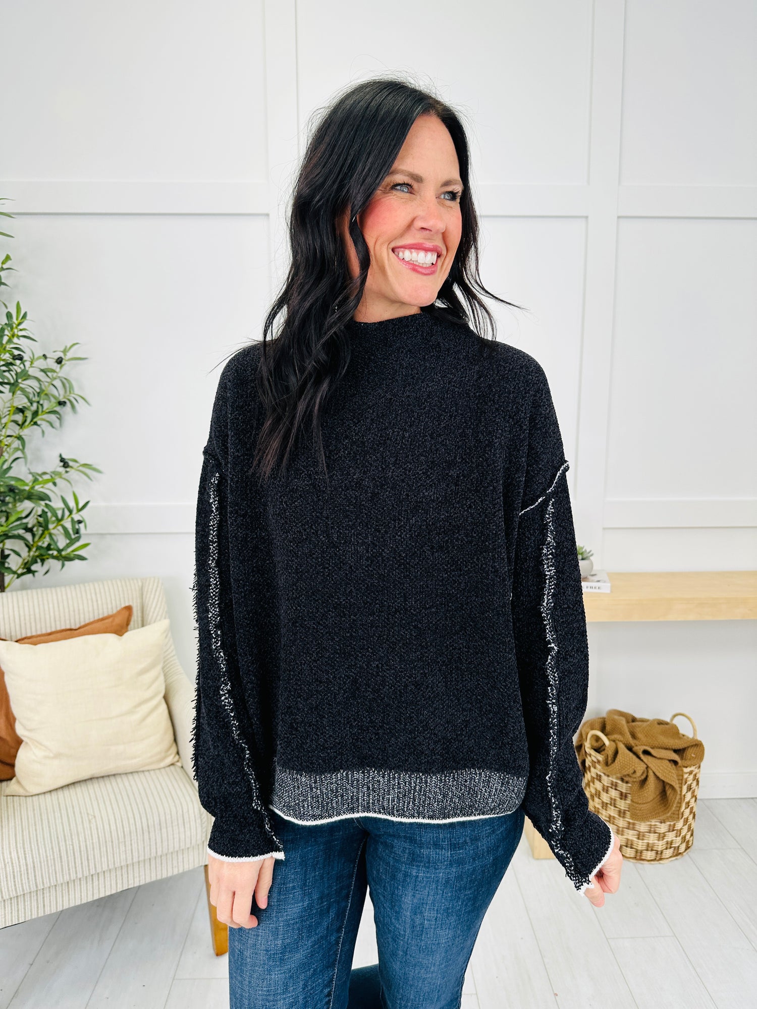Effortlessly cool and casually chic, this sweater is all about the details. The frayed seam accents add a touch of texture and edge, while the contrasting hem trim gives it a polished finish. With its relaxed, laidback fit and multiple color options, it’s a versatile staple you’ll reach for again and again.