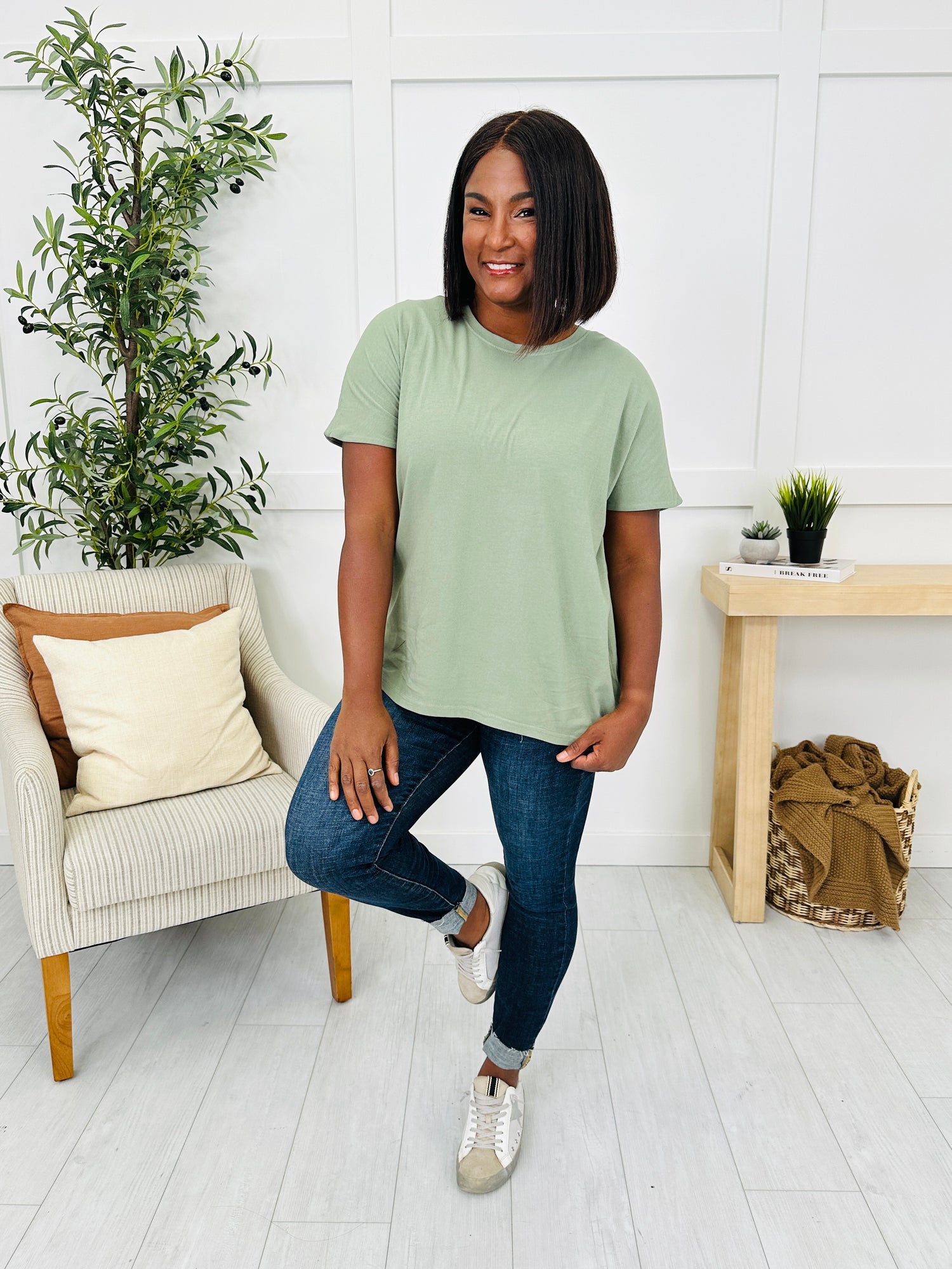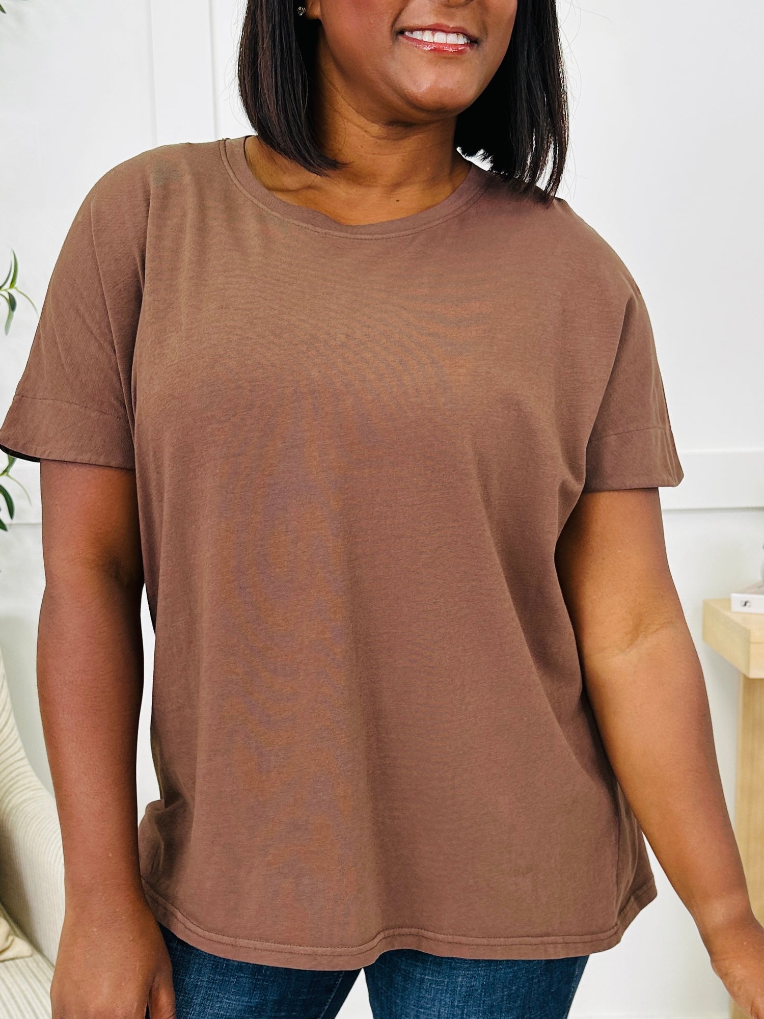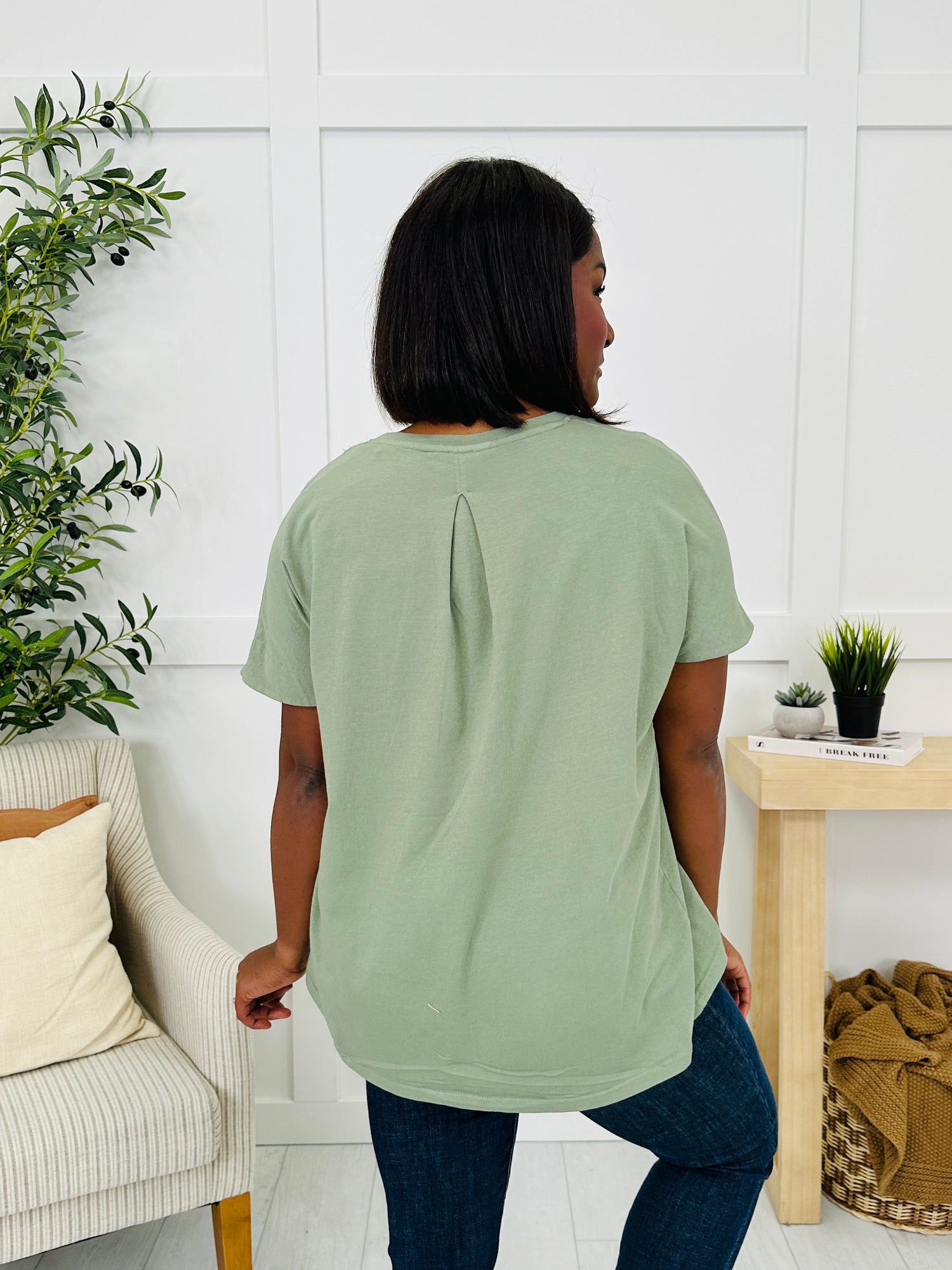 This easygoing top is the perfect blend of simple and stylish. It features a classic crew neckline and short sleeves for a timeless everyday look. The back pleat detail adds a subtle touch that makes it stand out, keeping this piece versatile yet polished for all your casual outfits.