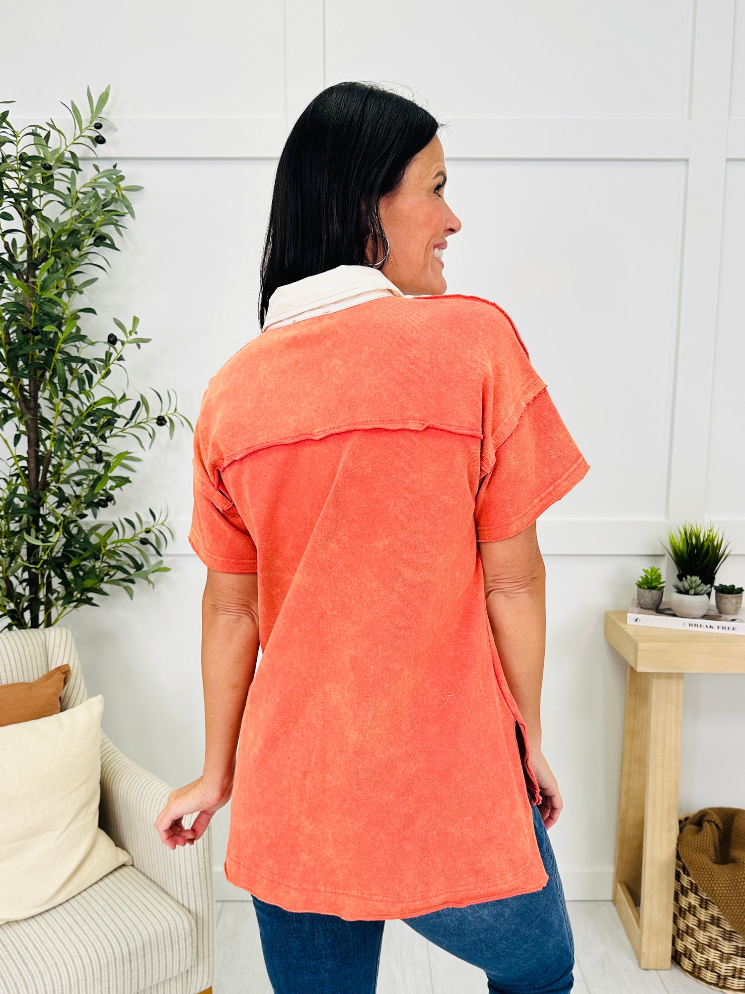 This polo top brings an effortless mix of sporty and casual with its sharp contrast collar, high-low hem, and easy button-front neckline. The reverse stitching gives it a laid-back, lived-in vibe while still keeping it stylish and unique. Perfectly easy to wear, this top adds character to any look with its relaxed structure and standout details.