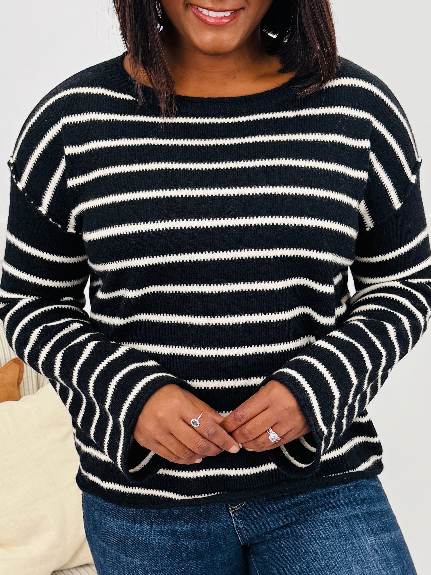This striped top is the definition of casual chic. The neutral striped pattern keeps it versatile and timeless, while the relaxed, easy fit makes it perfect for everyday wear. Finished with a classic crew neckline, this piece is an effortless go-to that pairs seamlessly with jeans or dyed denim for a laid-back look.