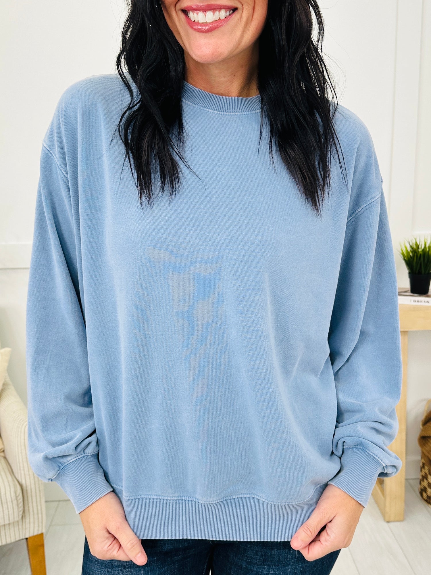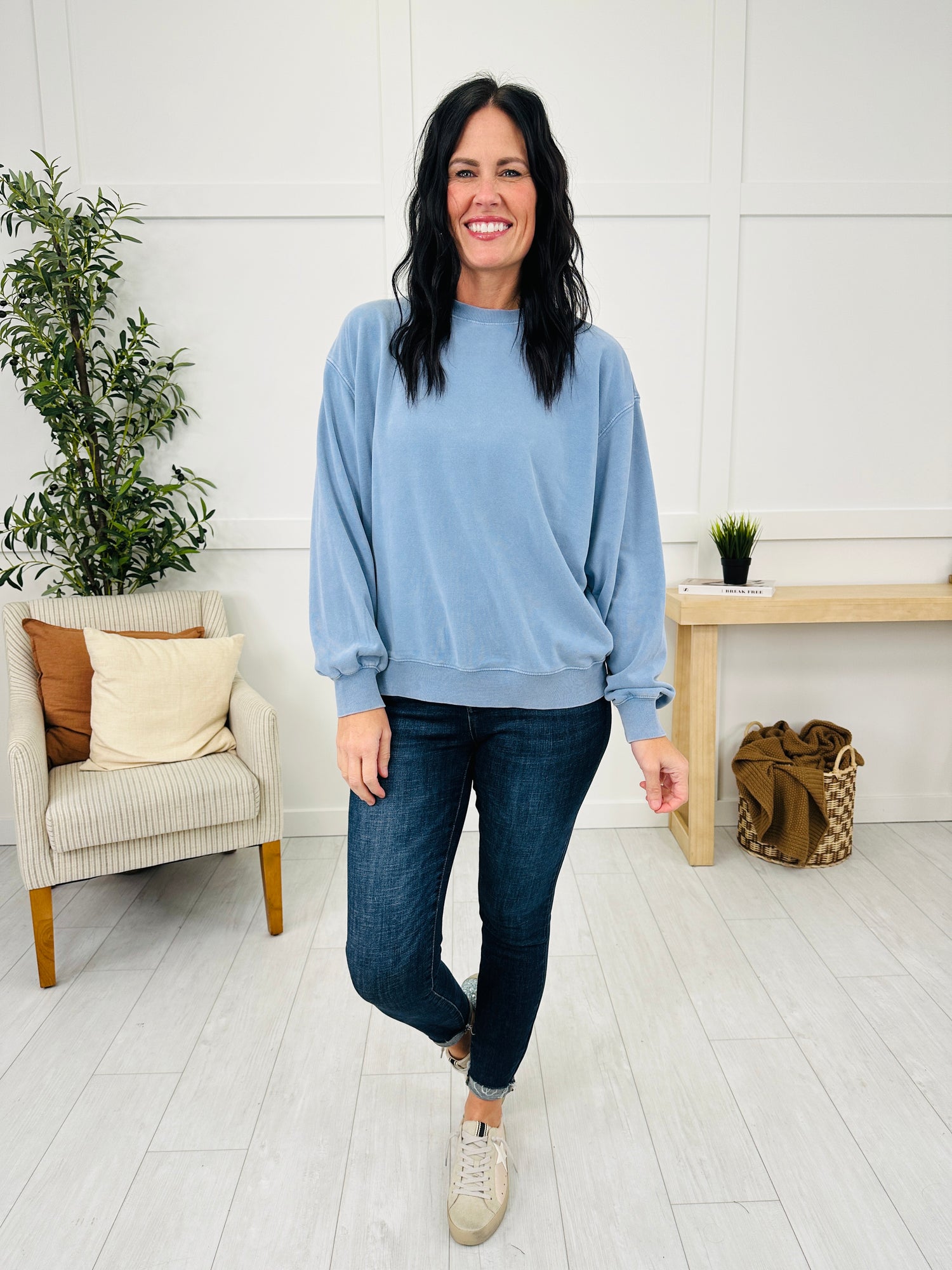 This sweatshirt offers the ultimate comfort with its soft, brushed fabric and relaxed, oversized fit. Perfect for layering under shackets or wearing solo, its easygoing style makes it ideal for casual days. Available in five trendy colors, this piece is as versatile as it is cozy!