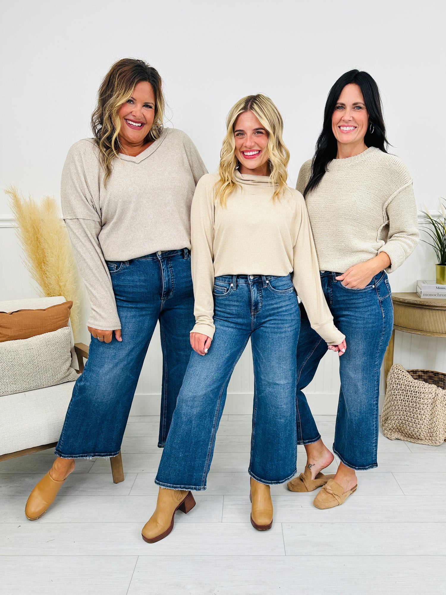 It's finally fall after all, and these new wide leg cropped jeans are a must have this season. They feature a stretchy tummy control panel that is going to suck you in and slim you out without sacrificing stretch or comfort. The tummy control paired with the high rise will make you feel so confident! As if that wasn't enough, these jeans feature yoking above the back pockets that is going to lift your booty, for an even bigger boost of confidence!