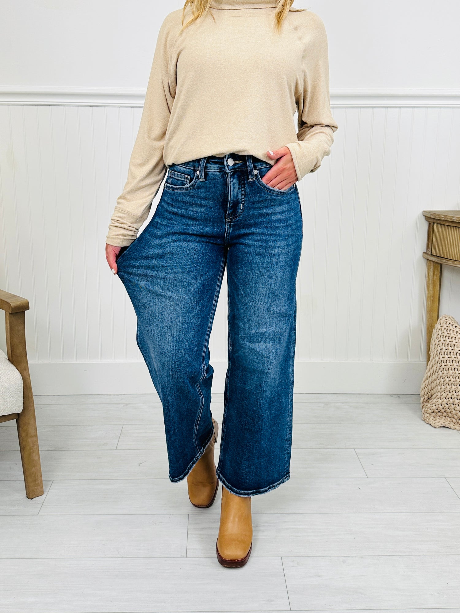 Fall After All Tummy Control Wide Leg Cropped Jeans