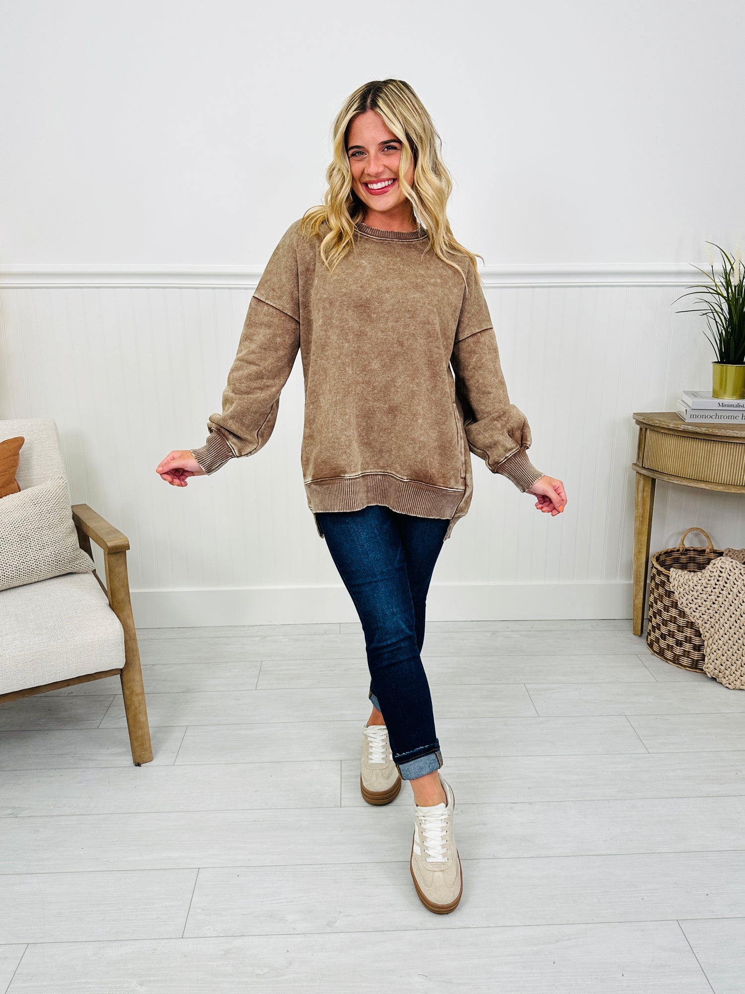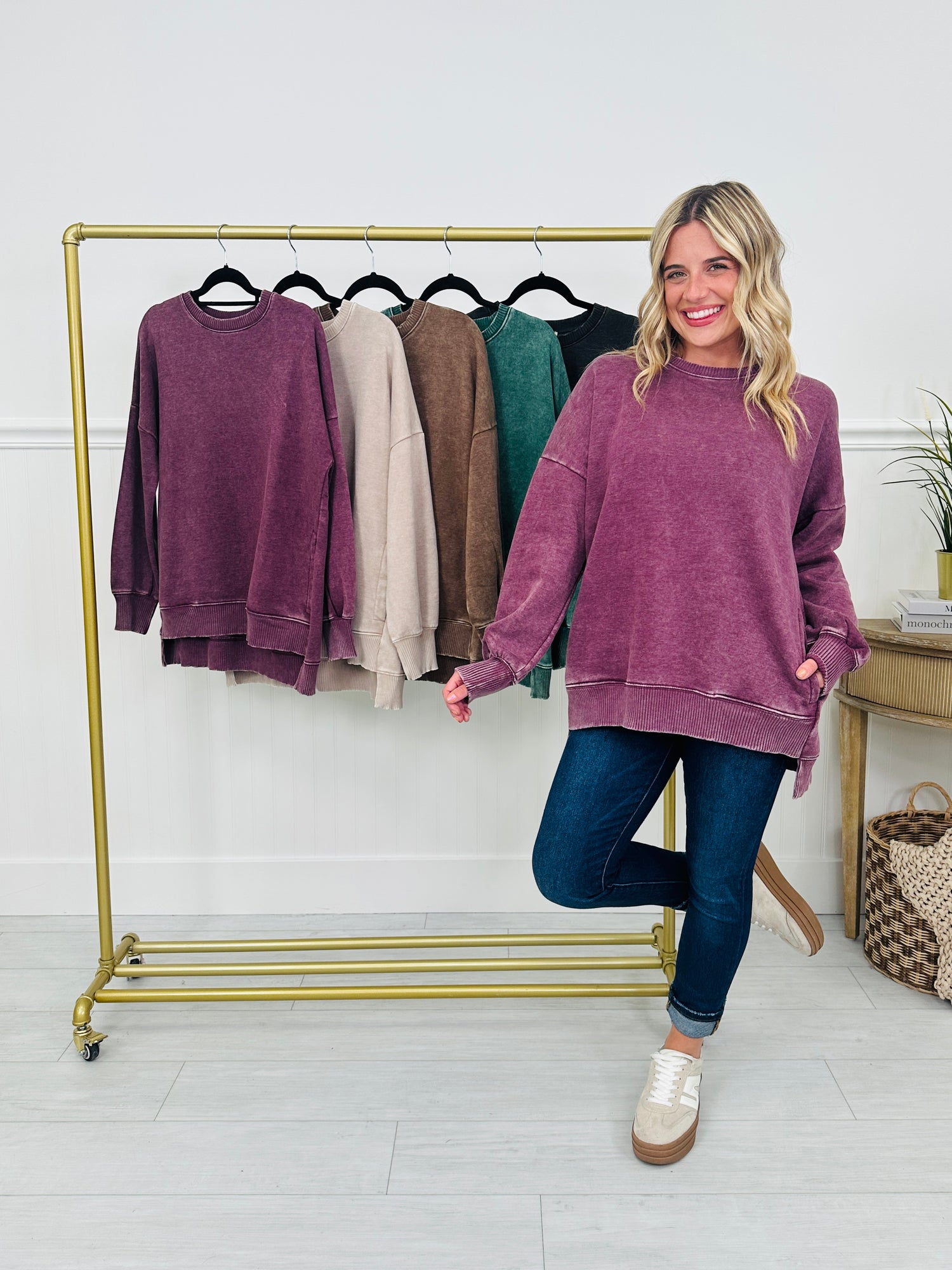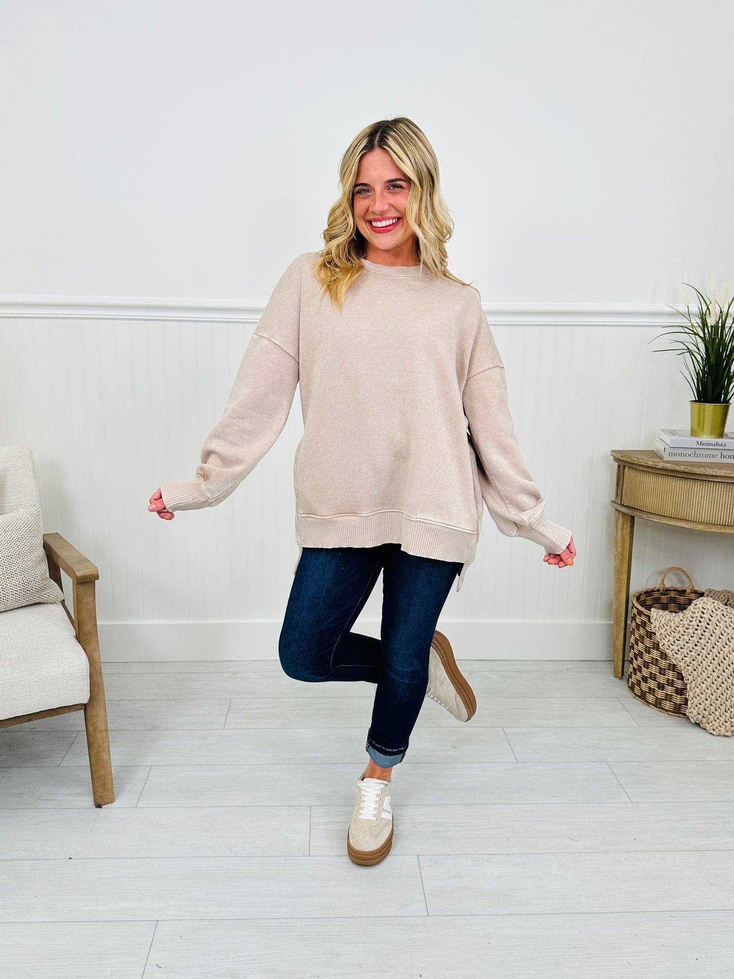 Your wardrobe this season is sure to fall into place after you add this new arrival to your cart. This garment dyed pullover is buttery soft and so cozy. This will be your new go-to pullover this season and you will never want to take it off! We love the oversized fit that is flattering on every single body type.