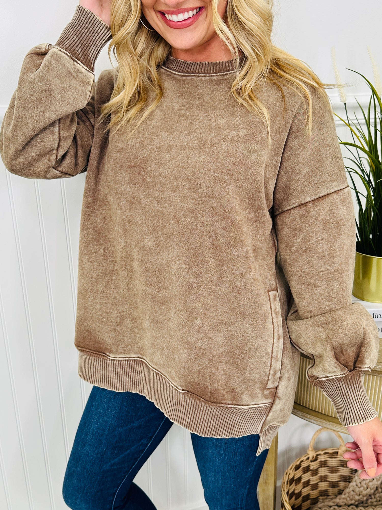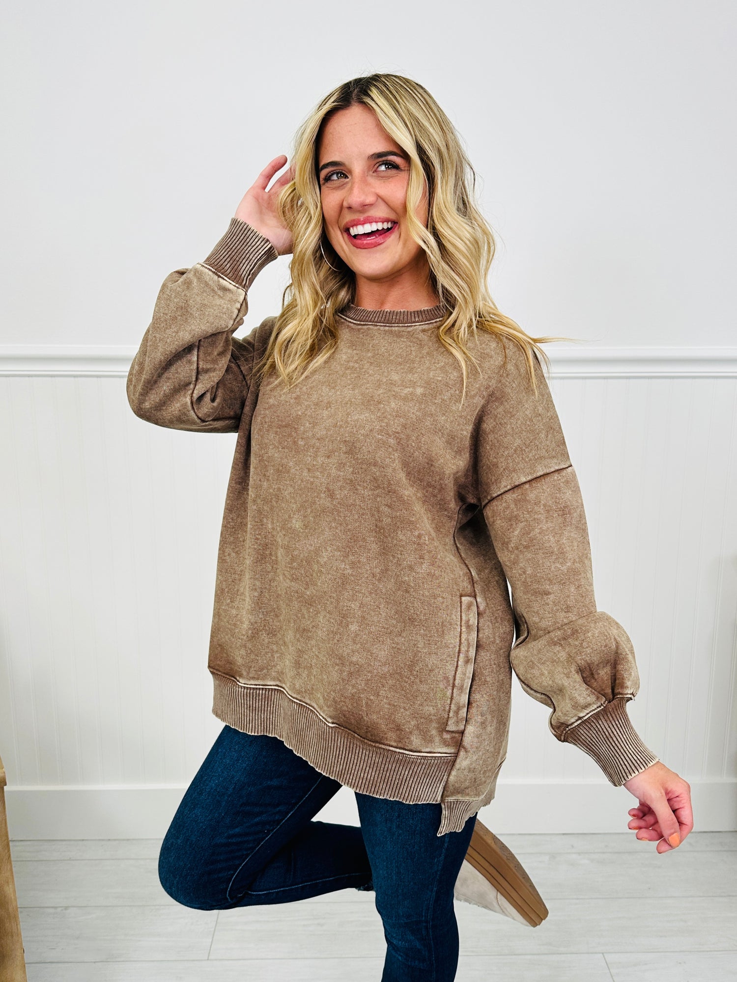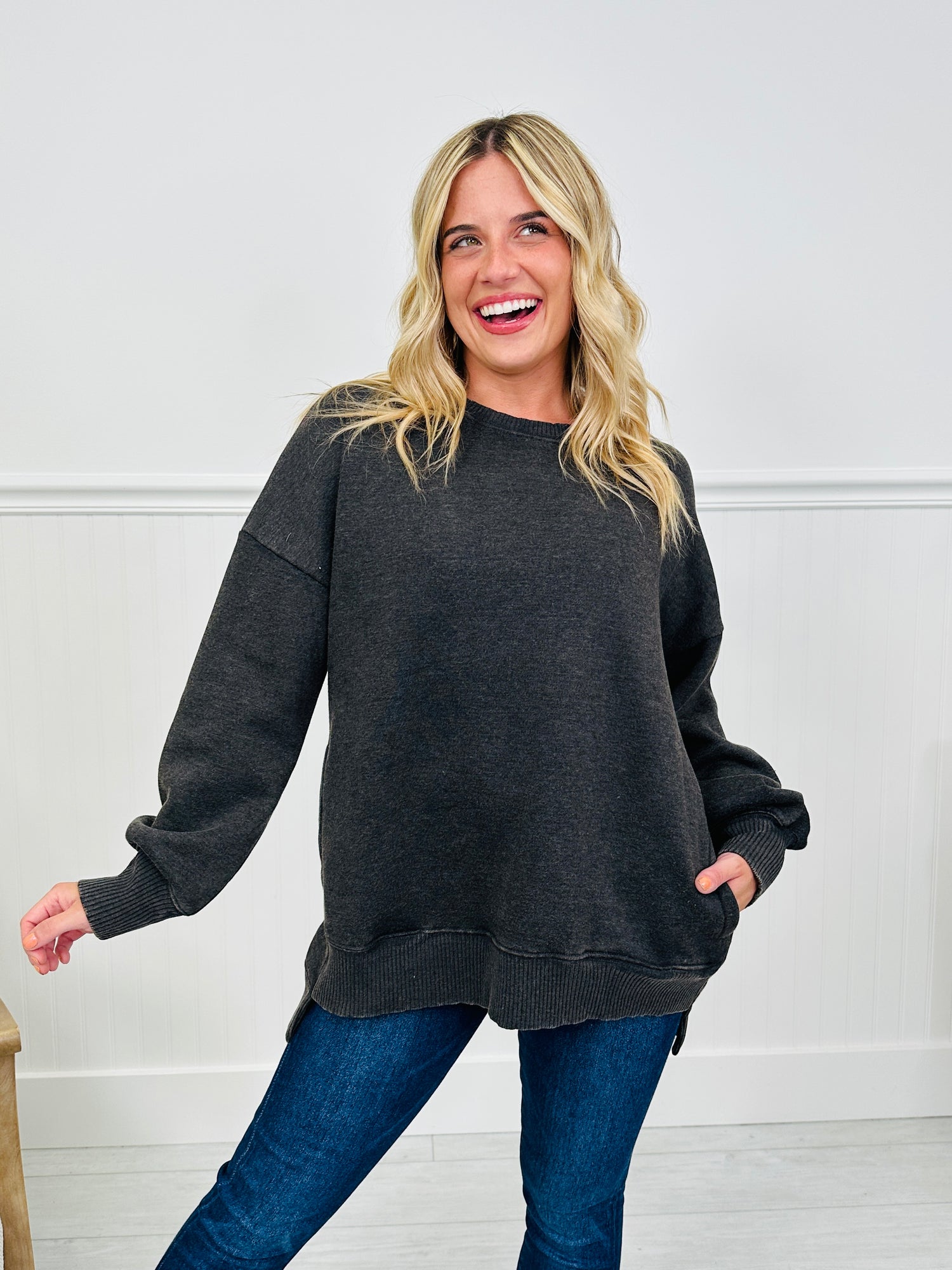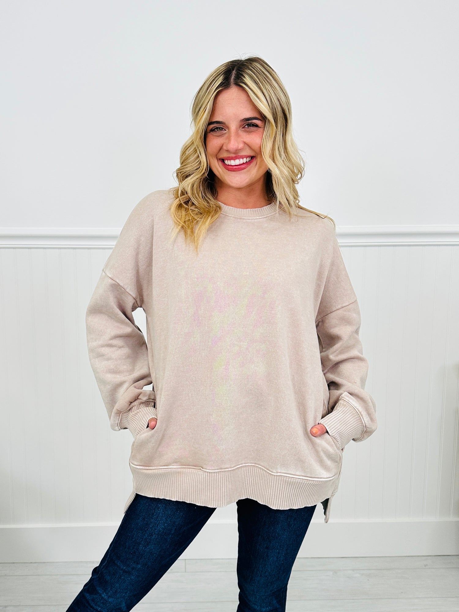 Your wardrobe this season is sure to fall into place after you add this new arrival to your cart. This garment dyed pullover is buttery soft and so cozy. This will be your new go-to pullover this season and you will never want to take it off! We love the oversized fit that is flattering on every single body type.