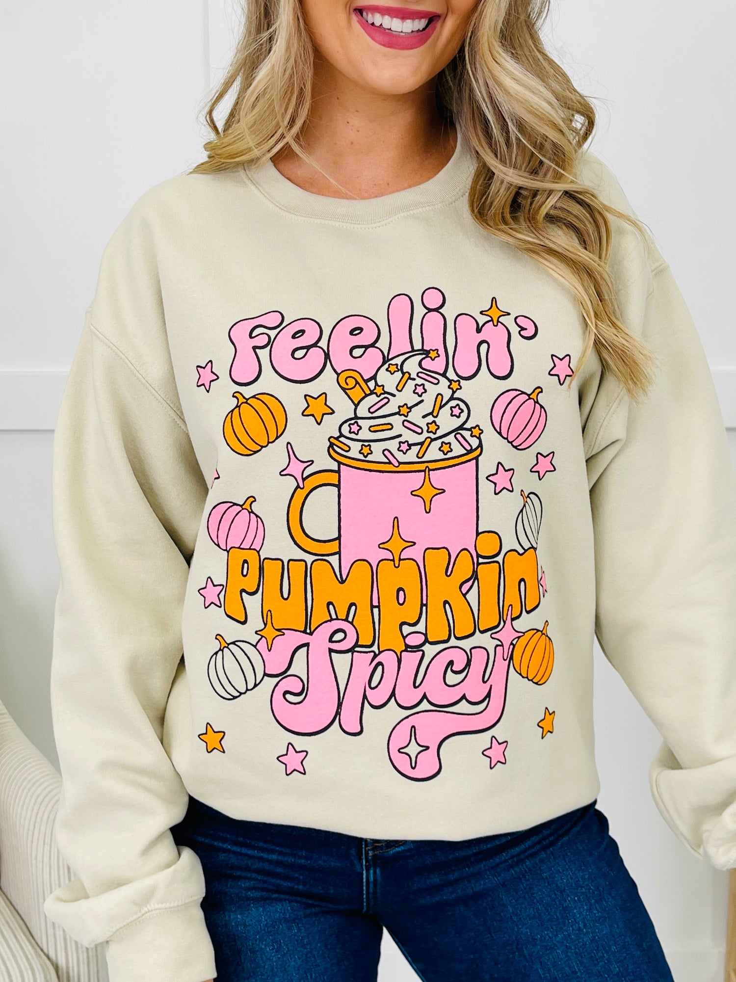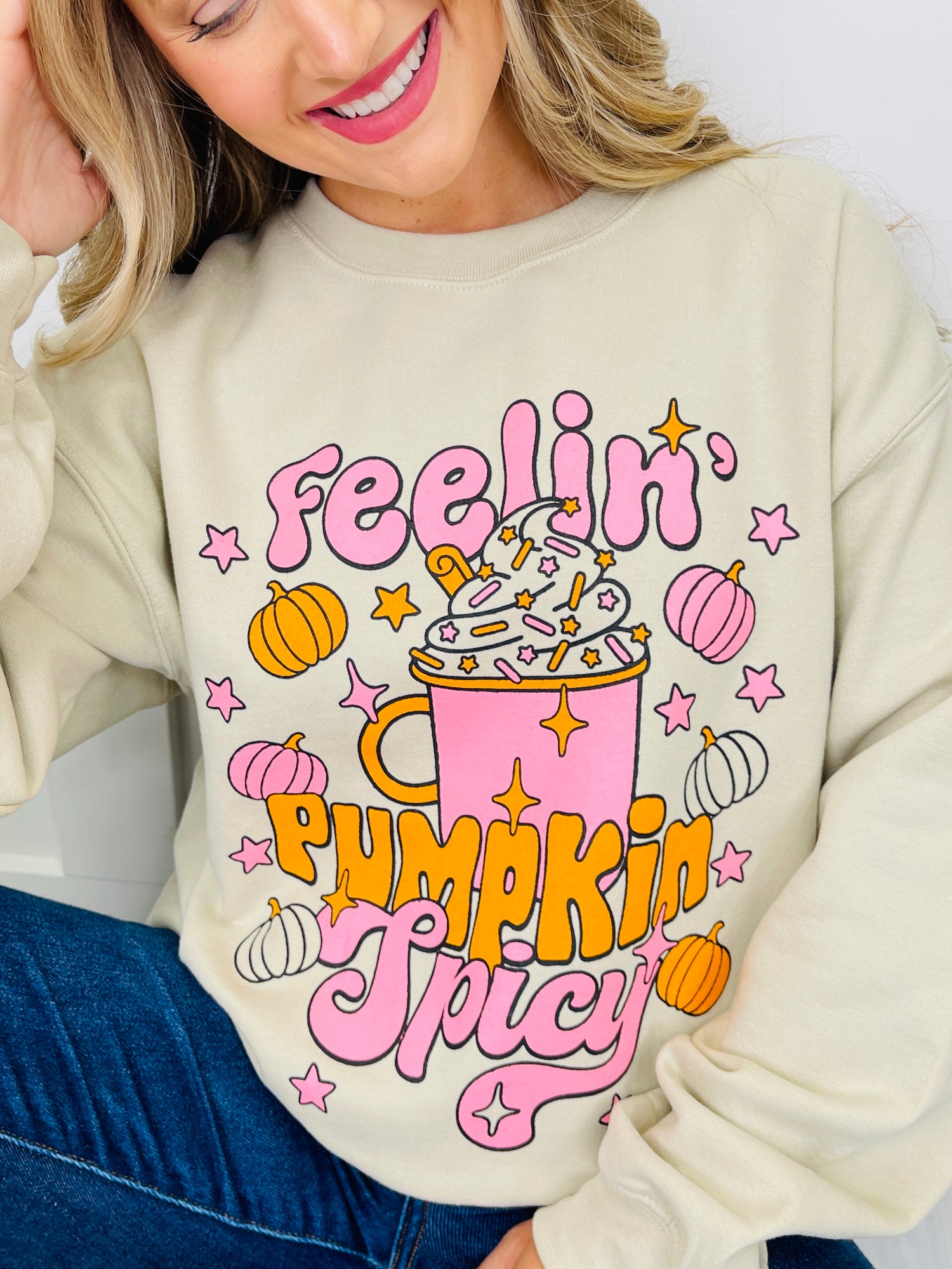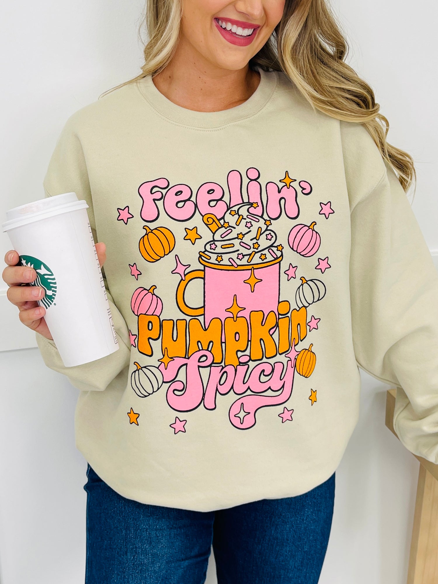 Feelin Pumpkin Spicy Graphic Crewneck Sweatshirt