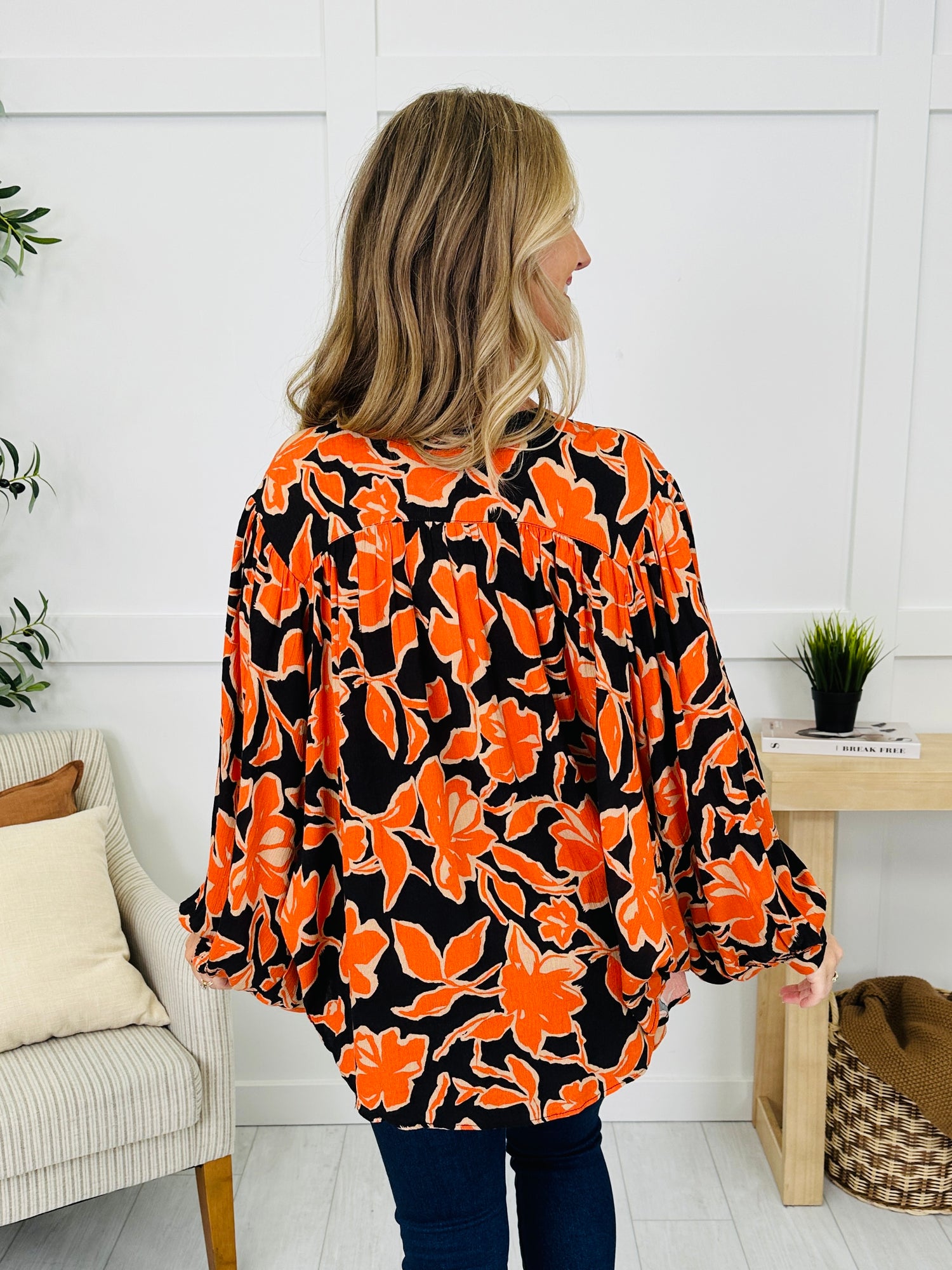 Bring a burst of color to your wardrobe with this flowy top’s eye-catching floral pattern and easygoing button-front silhouette. The lightweight fabric drapes beautifully while the playful balloon sleeves add just the right amount of drama. Pair it with your favorite jeans or trousers for a fun, flirty look that’s effortlessly chic.