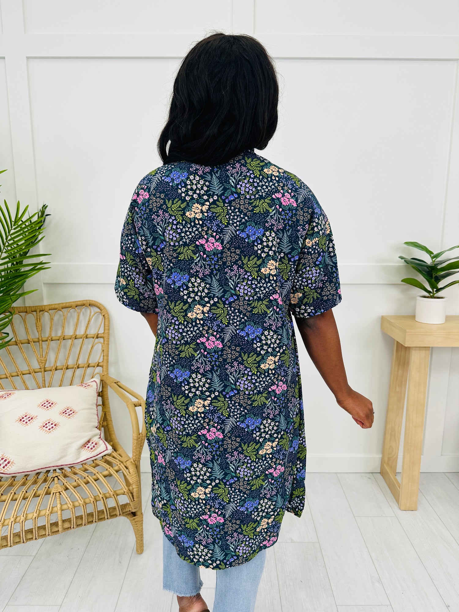 This beautiful floral kimono is designed to add a burst of color and effortless style to your wardrobe. The vibrant floral print pops against the dark background, creating a fresh and lively look. With its relaxed fit and open front design, this kimono is perfect for layering over a simple tee or tank, giving your outfit a breezy, chic vibe that works for any occasion.