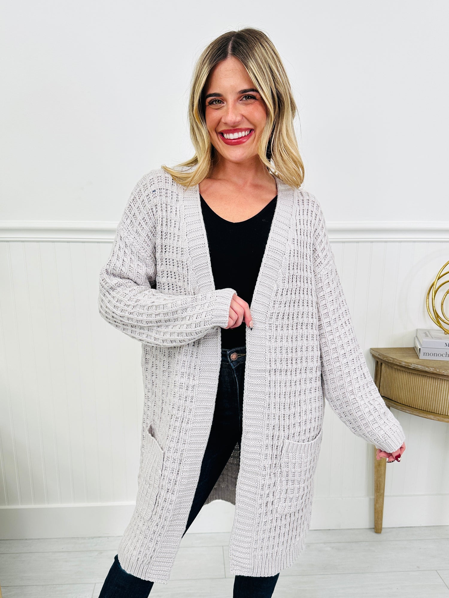 It's officially layering season and this new arrival is ready to make winter feel effortlessly cozy. This long line cardigan features a flattering, relaxed fit that drapes beautifully on every body type, making it perfect for layering over all your favorite basics.