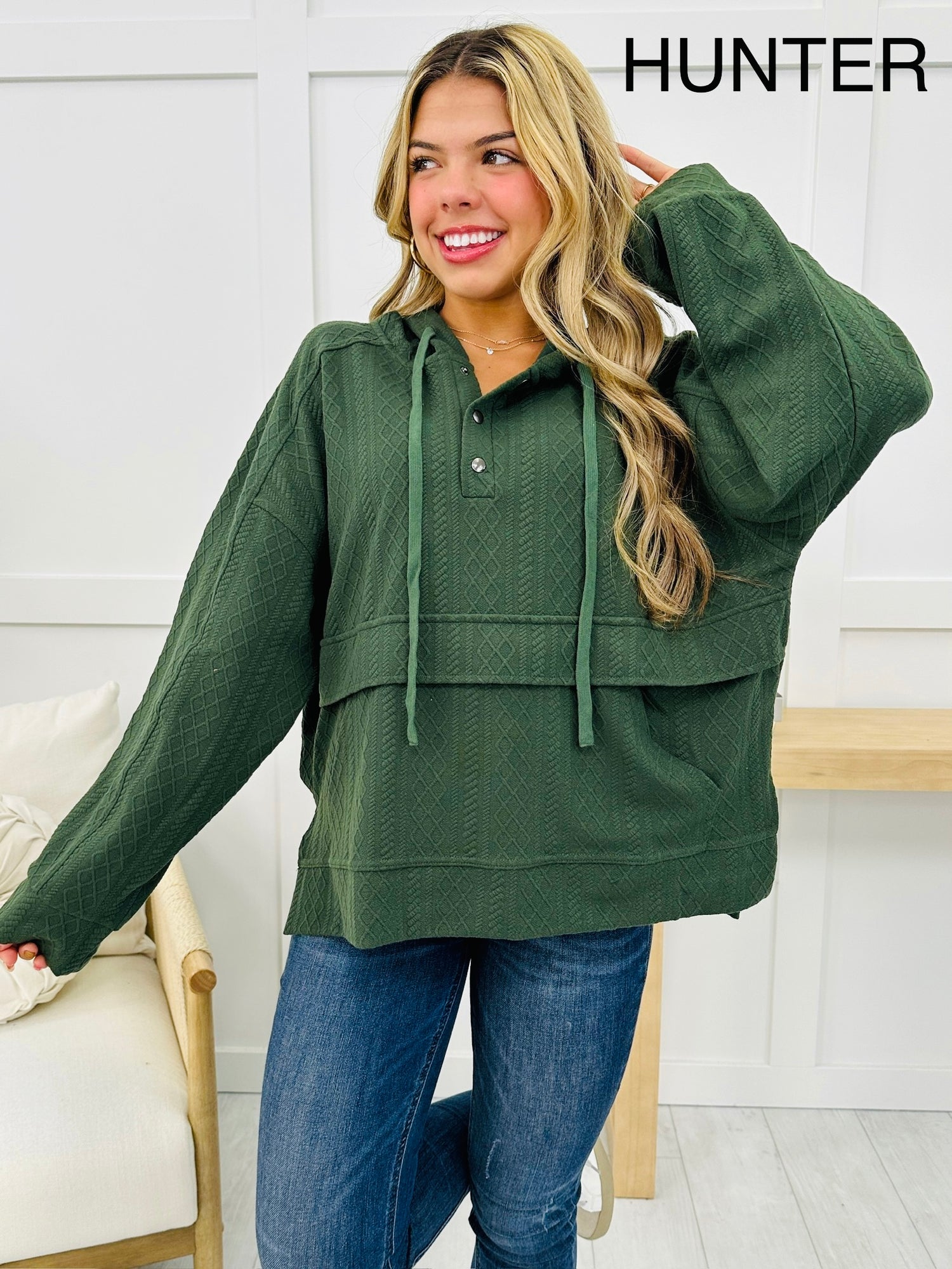 This cozy hoodie is all about casual comfort with an elevated twist. The textured diamond pattern adds subtle dimension, while the functional button neckline brings a stylish, laid-back feel. Finished with a relaxed silhouette and drawstring hood, this piece blends everyday ease with just the right touch of detail.