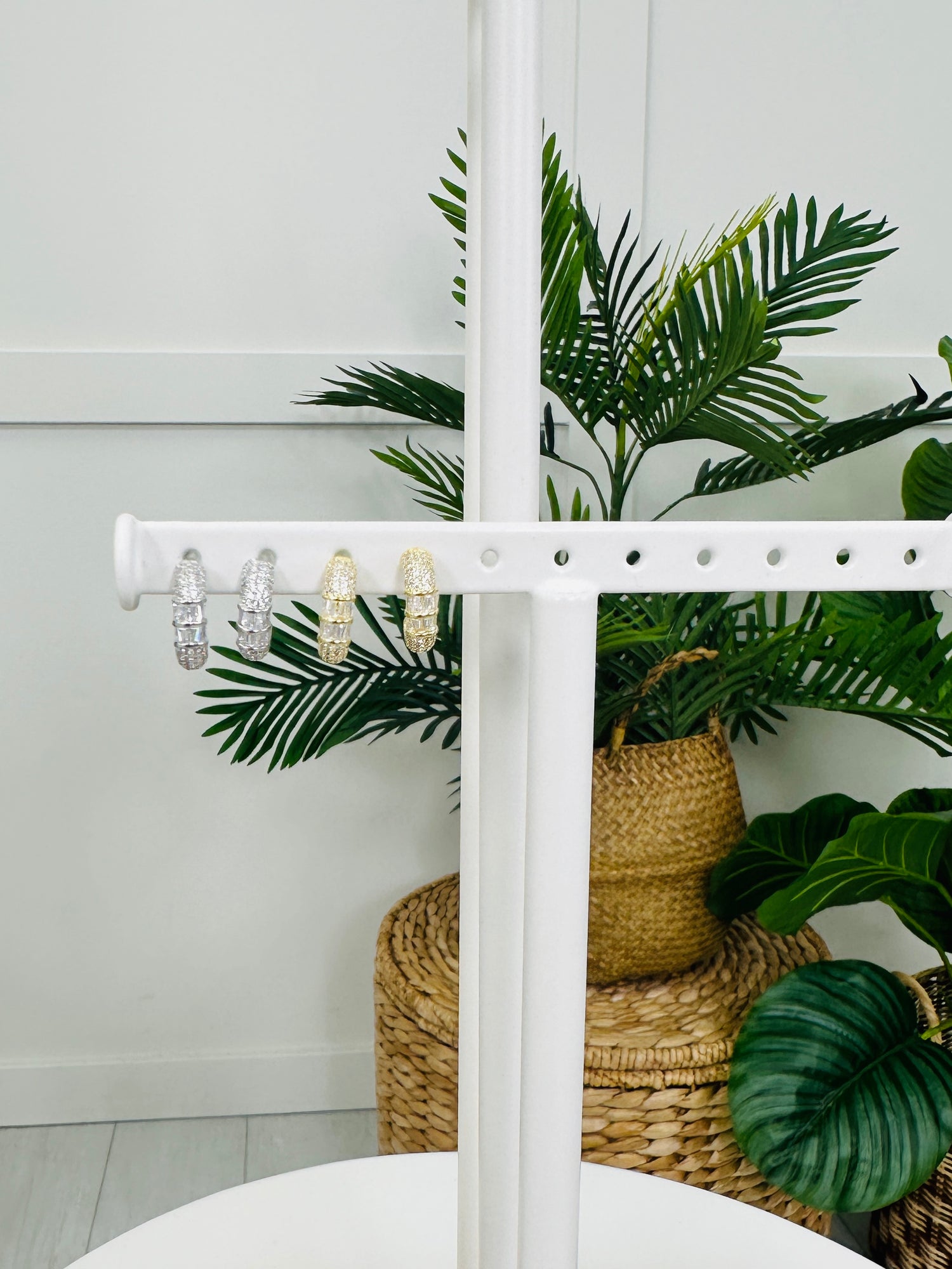 Elevate your everyday look with these sparkling huggie-style earrings! Featuring a sleek gold or silver finish with a delicate row of rhinestones, they offer just the right amount of shimmer for any outfit. Lightweight and easy to wear, these beauties add a touch of polish whether you’re dressing up or keeping it casual.