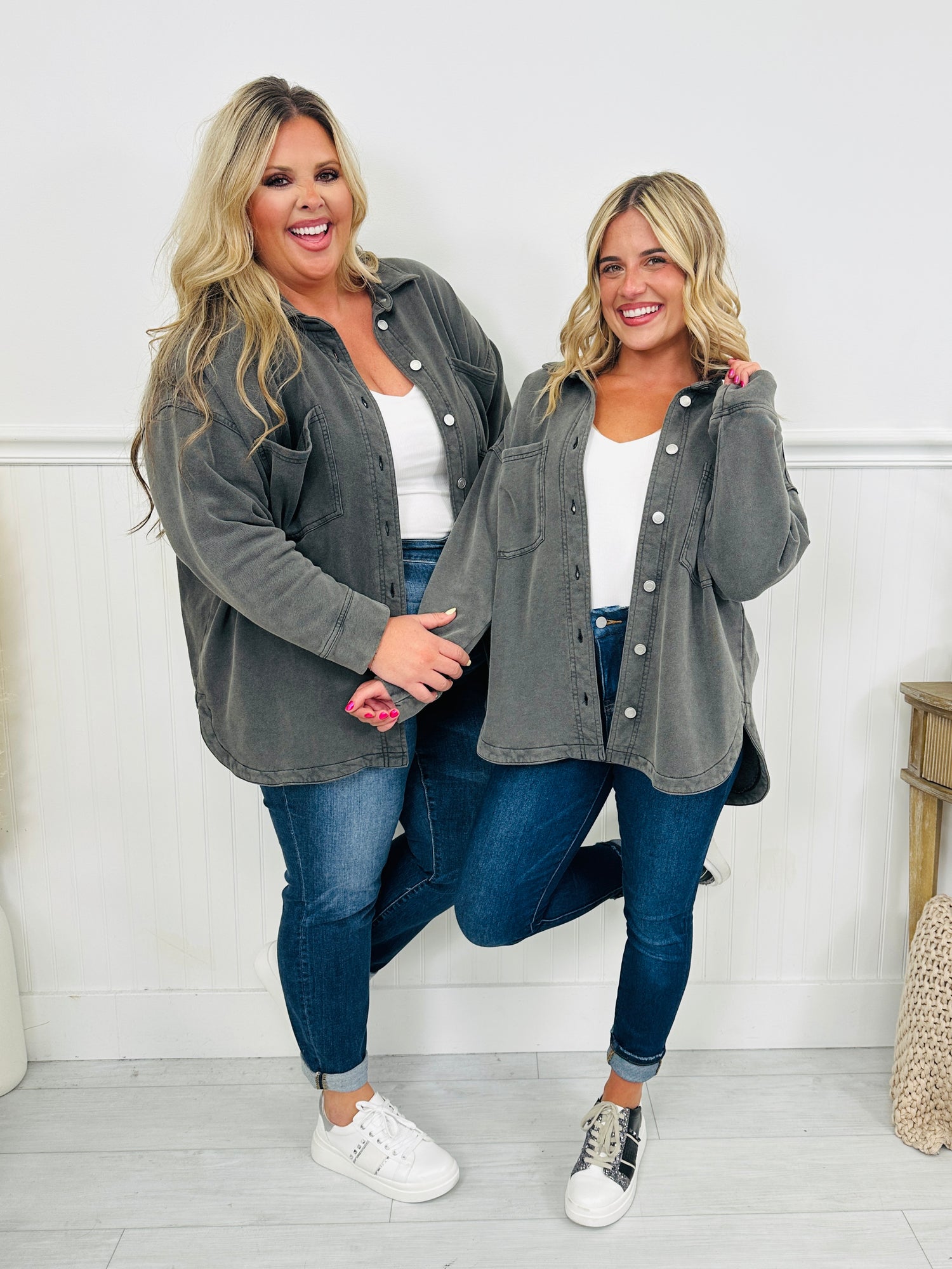Our best selling Go Everywhere Jacket is now available in a new fall color! Our customers rave about this jacket and we are obsessed with this new color that can be worn with both jeans and leggings. This buttery soft and comfortable jacket is mineral washed and perfect for layering this fall. Layer it with your basic tees, graphic tees, and even light weight sweaters. You can go everywhere ;) in this shacket! This is a staple in your fall wardrobe; add it to your cart while you still can!