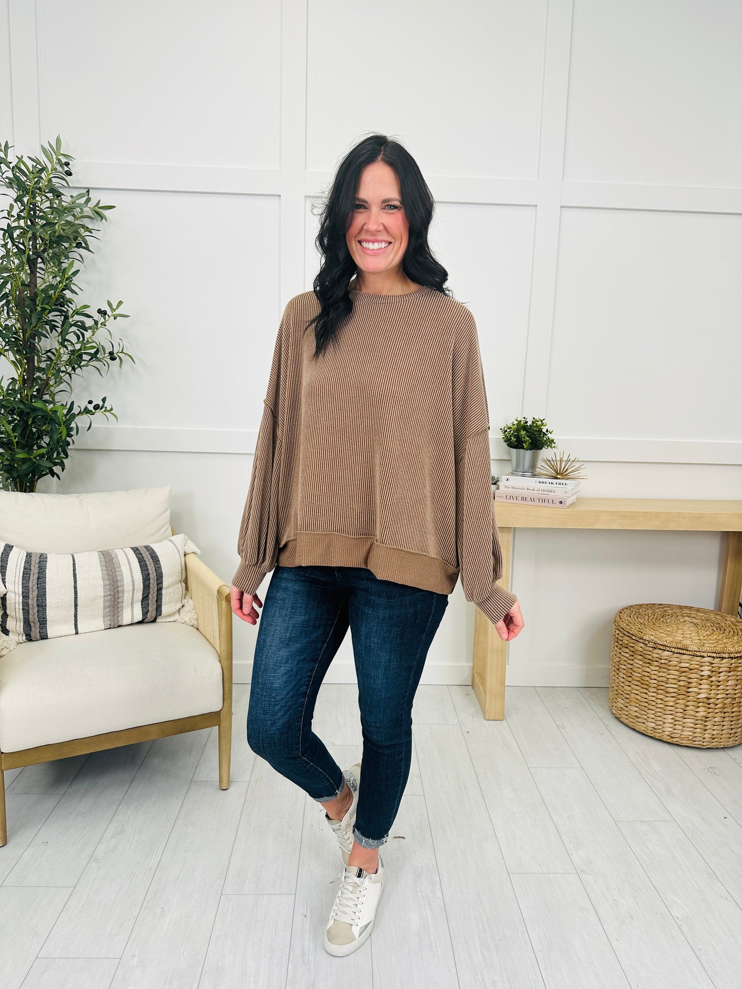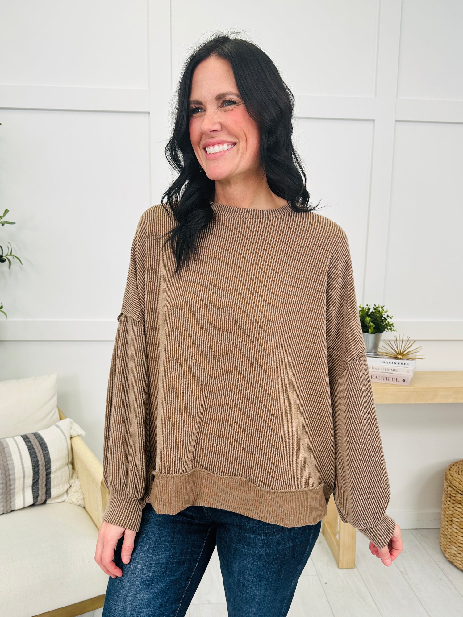This top is the perfect blend of simple and stylish, featuring the ultra-viral raised rib texturing that adds depth to its solid tone. The relaxed fit and reverse stitching give it an easygoing feel, while the wide cuffed trim and sleeves as well as the soft drape keep it effortlessly flattering. Available in several colors, this timeless piece is one you’ll reach for again and again.