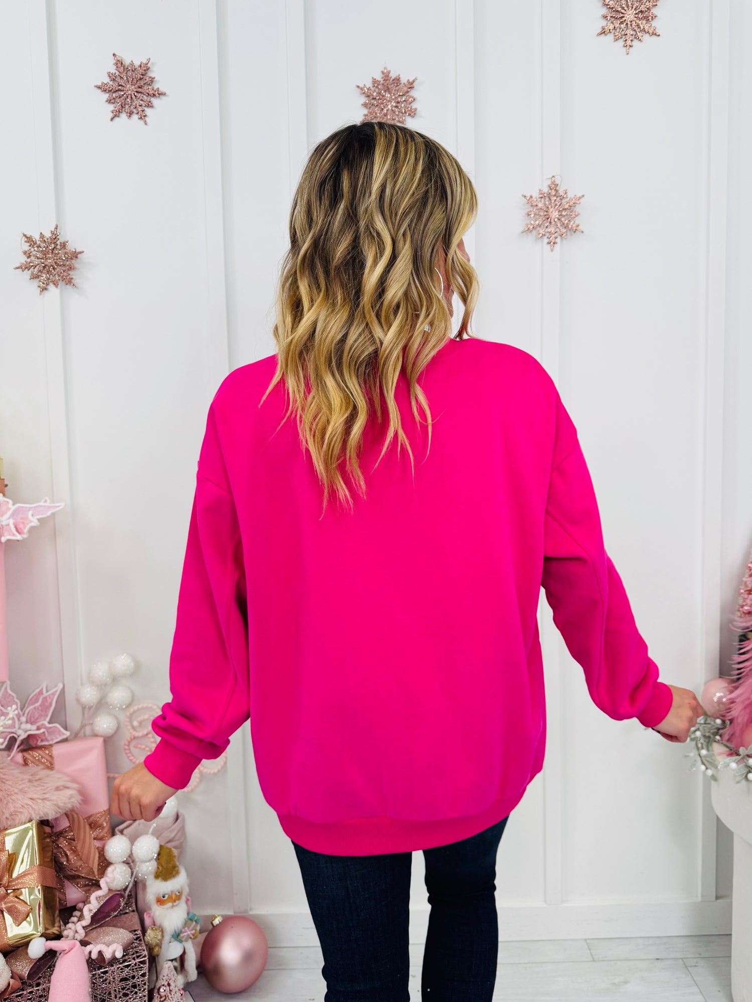 This hot pink color is sure to bring some cheer to your holiday wardrobe. It's ideal for lounging at home, running errands, or celebrating the season in style. It's perfect to pair with jeans or leggings for an effortlessly merry look that keeps you feeling holly and jolly all season long.