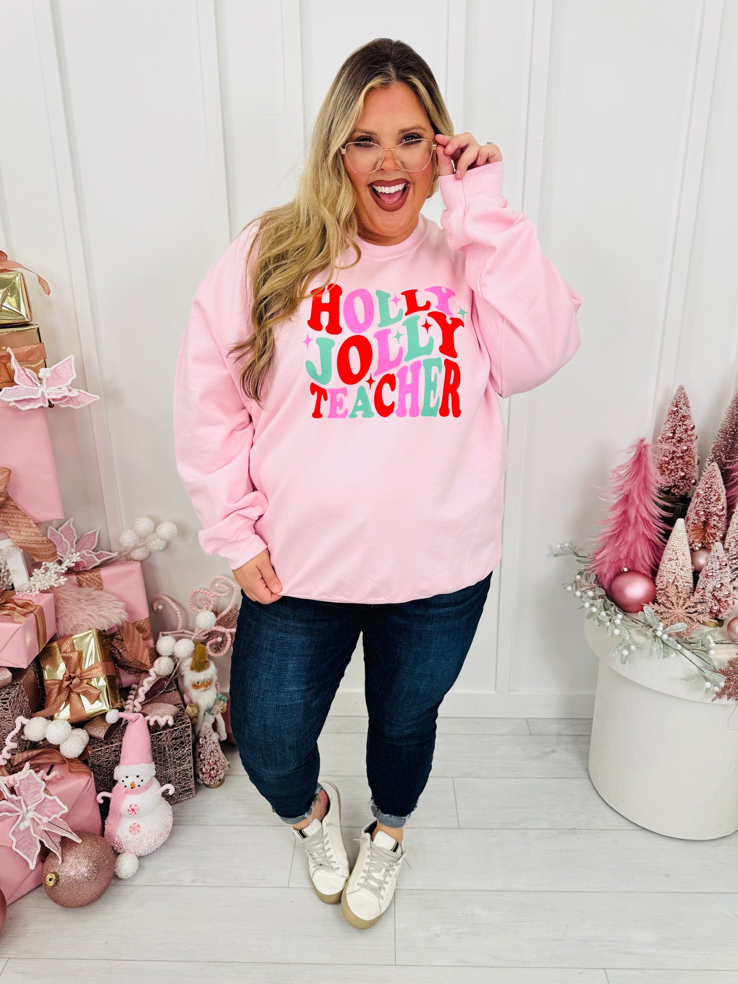 Holly Jolly Teacher Graphic Crewneck Sweatshirt
