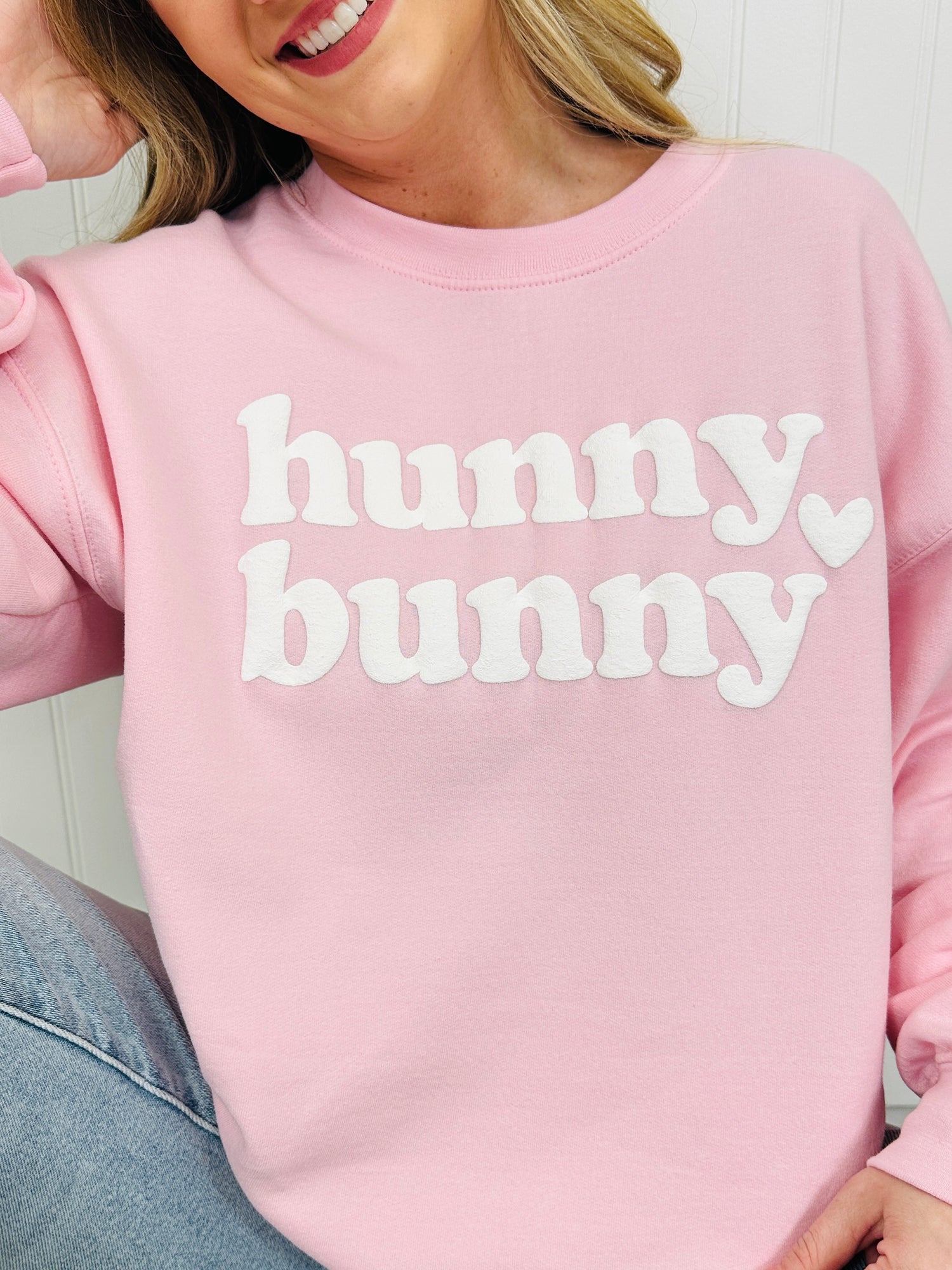 Spread the love with the Hunny Bunny sweatshirt — a cute and playful design that’s perfect for casual days and sweet moments. The bold, puffed lettering with a heart detail brings a soft touch of whimsy, making it feel both fun and cozy.