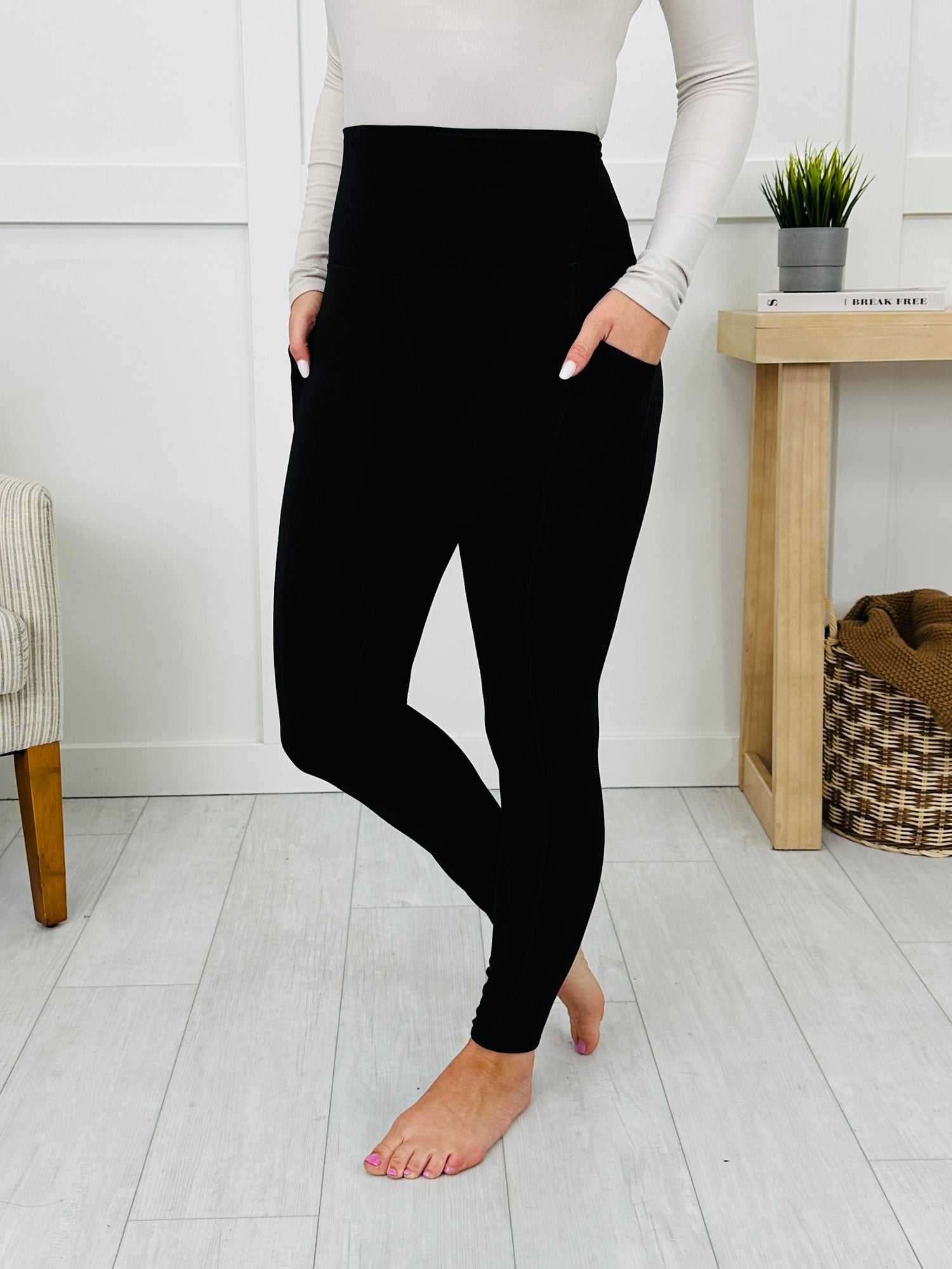 Slip into these sleek leggings for a flattering fit from waist to ankle, thanks to the high-rise waistband that smooths and supports. The practical side pockets keep your phone or keys close at hand, while the buttery soft and stretchy fabric moves with you through every stretch, stride, or lounge session. Pair them with your favorite oversized sweater or active top for all-day comfort that never sacrifices style.
