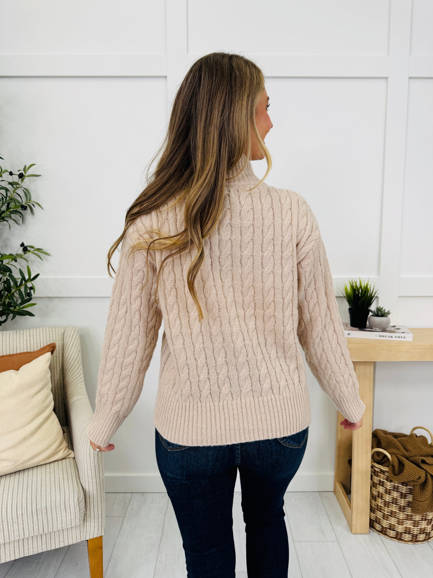 This timeless sweater adds effortless polish to your cozy-weather wardrobe. The classic cable knit design gives it a traditional touch, while the zip-up front offers a modern twist that’s easy to style. Finished with a folded collar neckline and textured trim, it’s the perfect blend of comfort and chic.