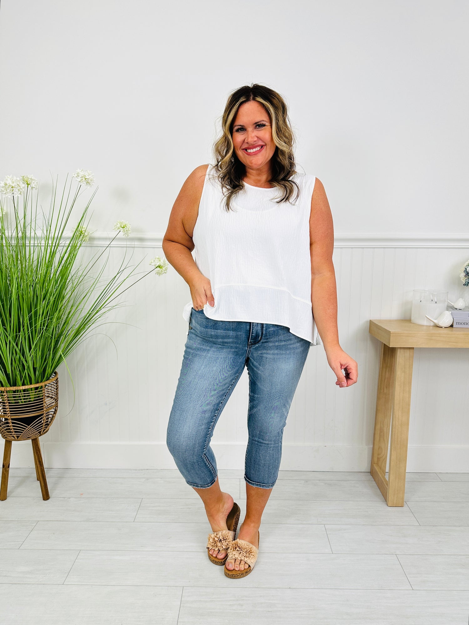 Go against the grain and add these best selling Judy Blue Capris to your cart! They are finally back in stock but only while they last! These capris are the most comfortable capris you will ever own. They are made from a soft, stretchy fabric that moves with you but also holds its shape al day long. The capri length hits just right for warmer weather, making them easy to style with sandals, wedges, or sneakers.