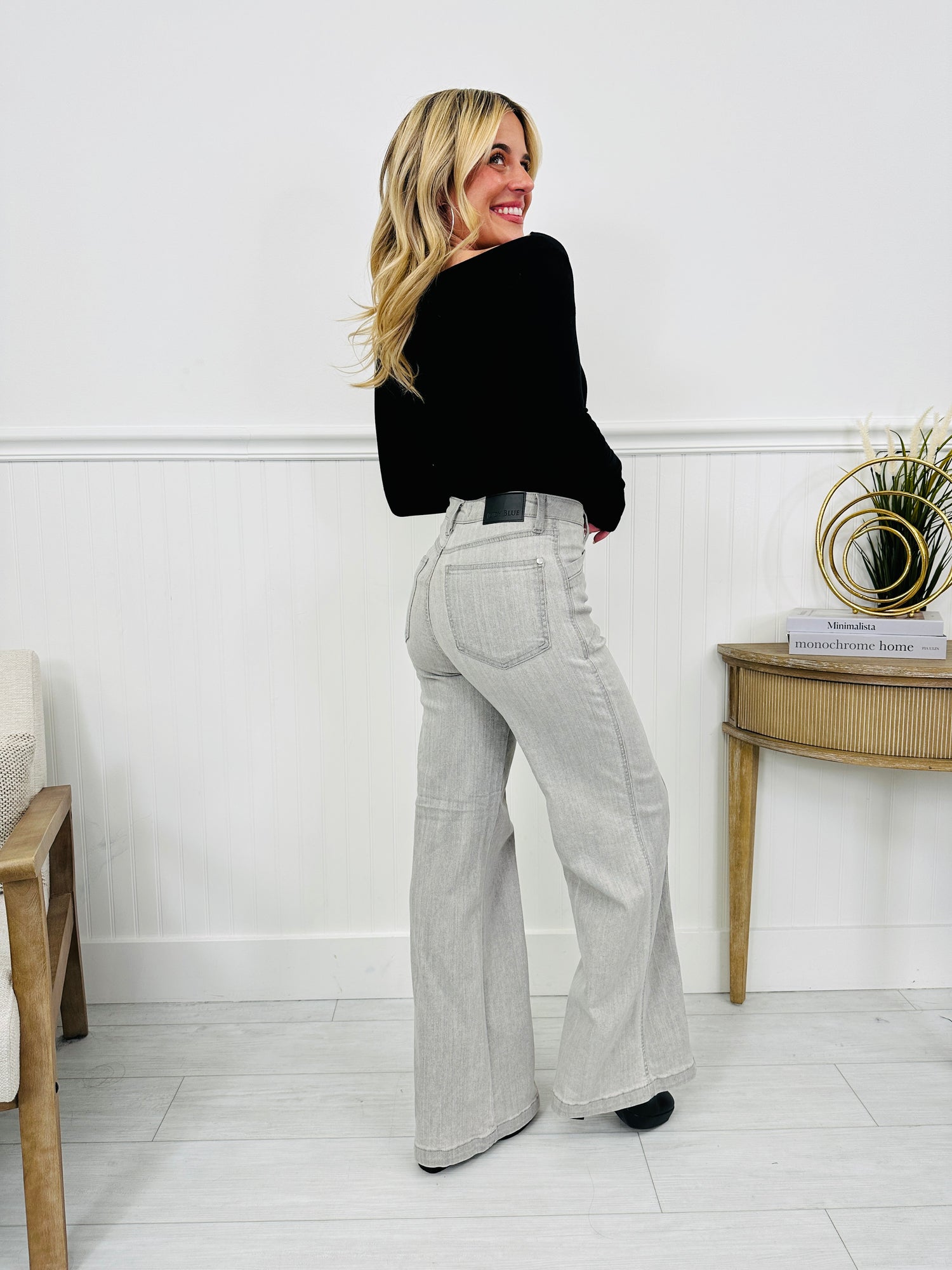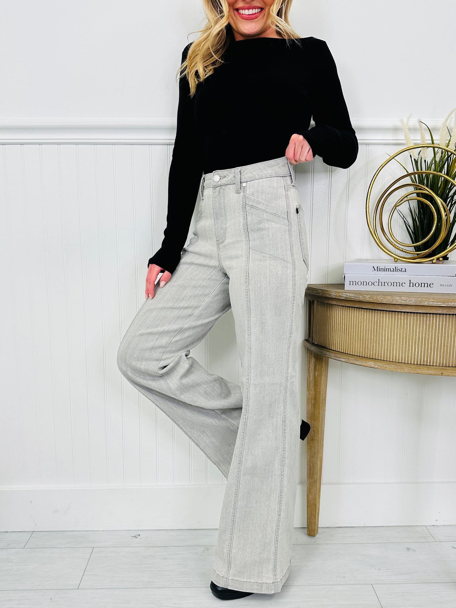 Judy Blue Gorgeous In Grey Retro Wide Leg Jeans