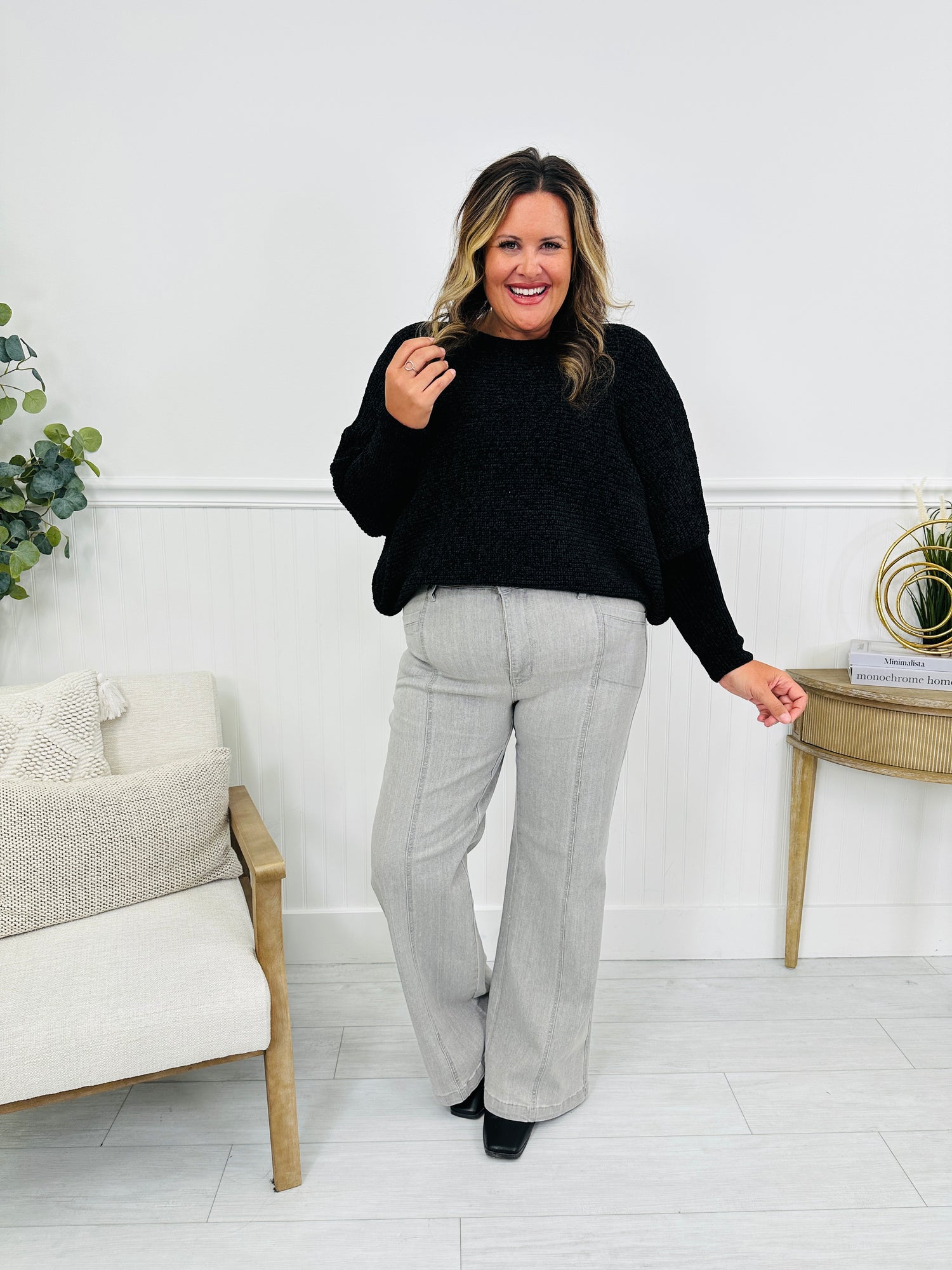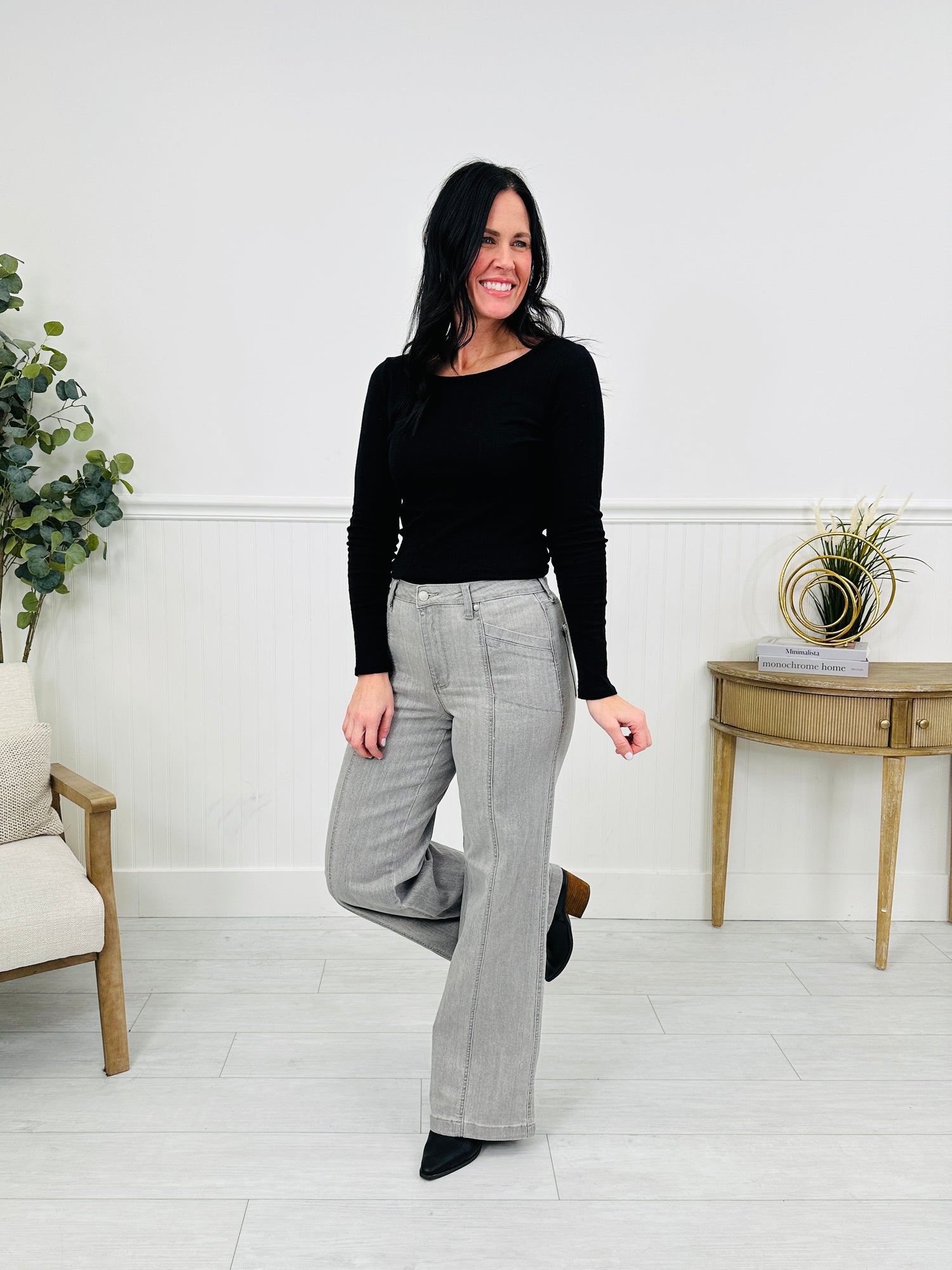 Fresh, flattering, and a little bit unexpected—these grey wide leg jeans are the kind of denim that makes any outfit feel instantly elevated. With a clean, cool-toned wash and zero distressing, they give you that sleek “put-together” look while still feeling comfy enough for all-day wear.