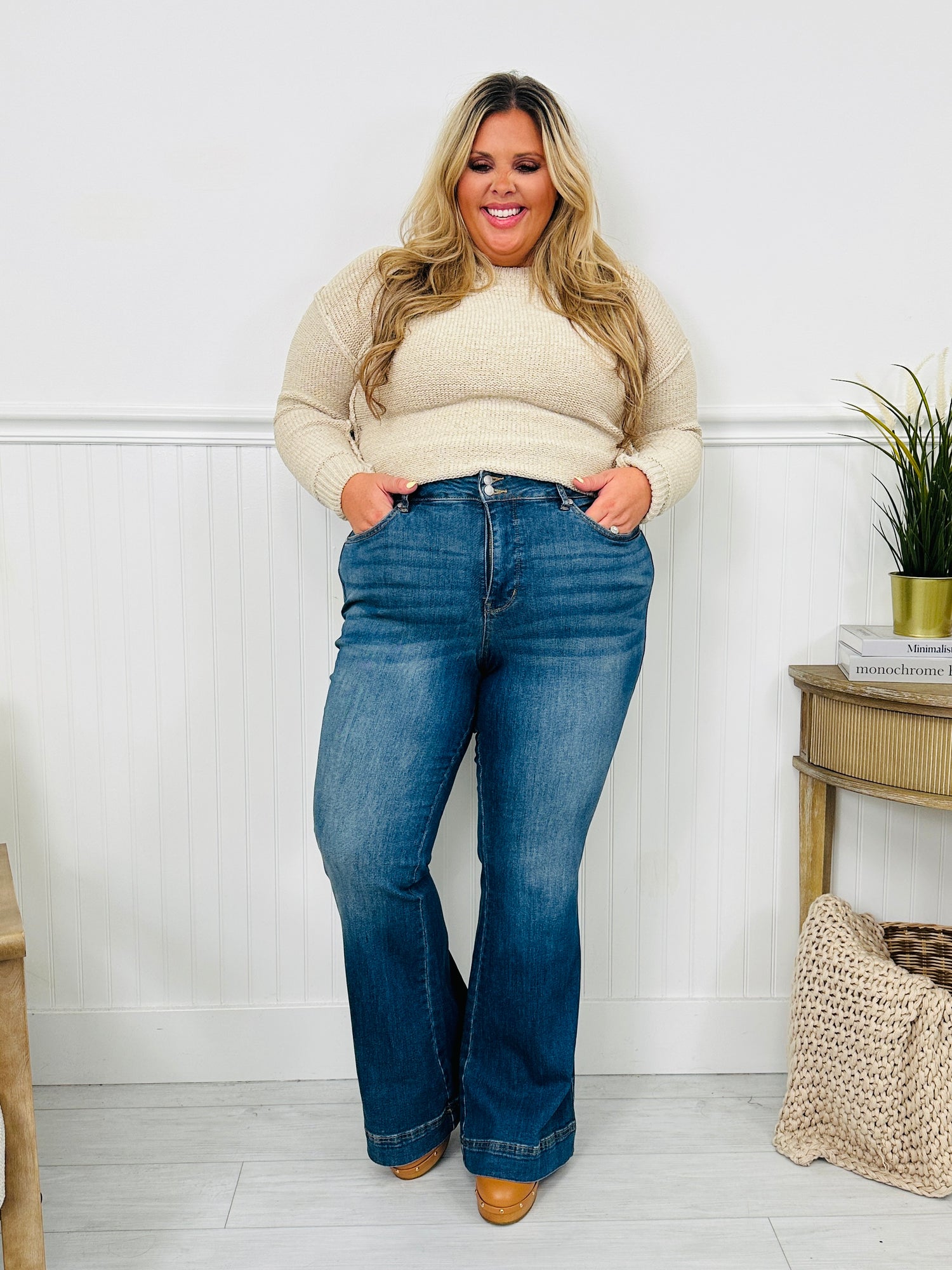 These jeans check all the boxes with their sleek double button detail and built-in tummy control panel that smooths and flatters in all the right places. The flare leg creates a lengthening effect that pairs perfectly with boots or heels, while the comfort stretch denim makes them easy to wear from day to night. Designed to hug and hold in all the right ways, they’re a must-have for any denim lover’s wardrobe.