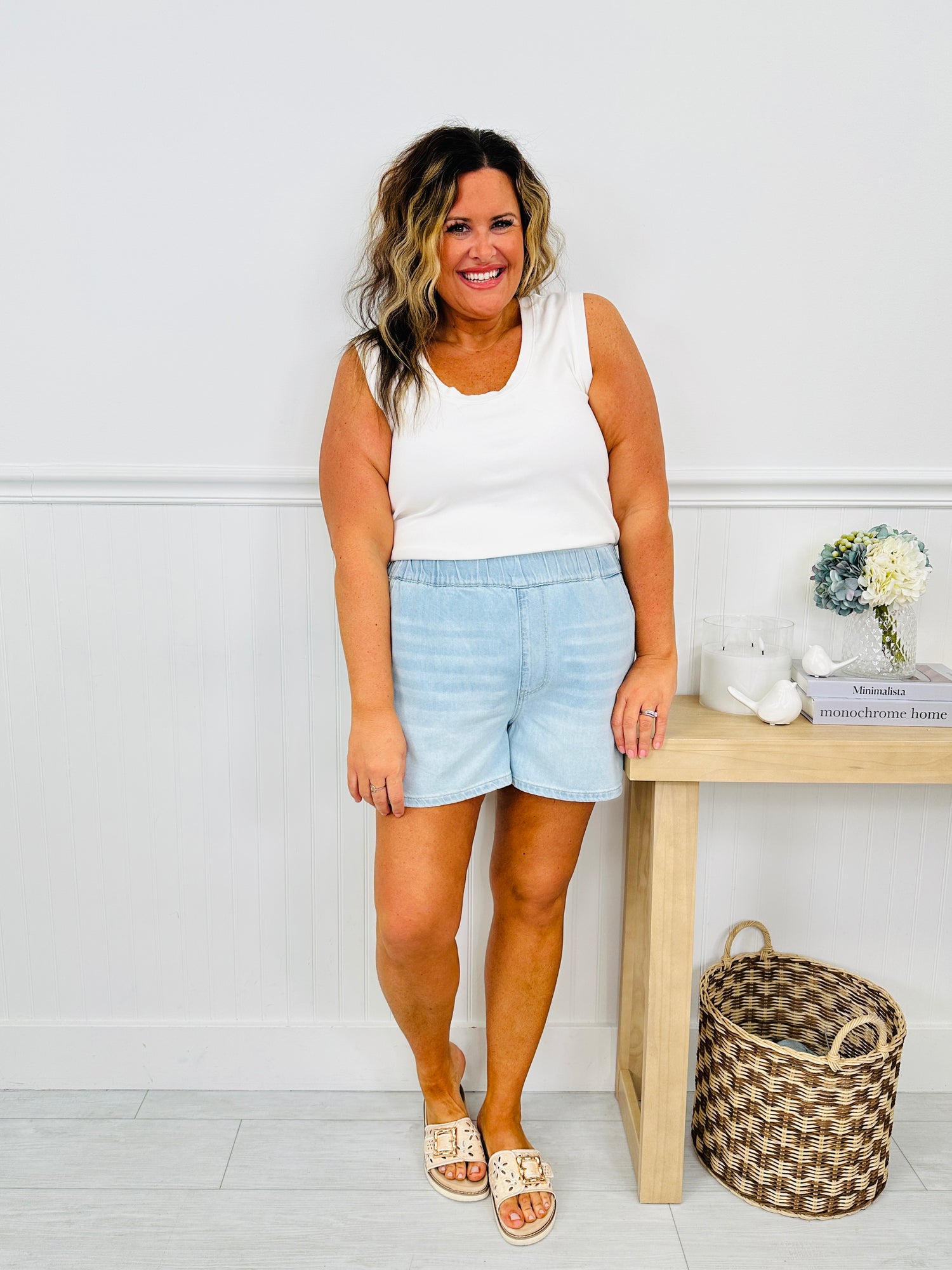 These new shorts from Judy Blue will pull any outfit together this spring and summer. These trending shorts are made from our viral, best selling, featherweight material. They are lightweight and perfect for warm weather. These pull on shorts are a boxer style short that feature and elastic waist band that offers comfort all day long.