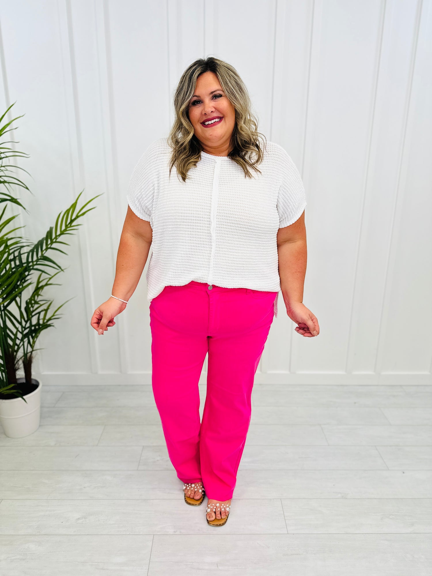 If there's one color we are passionate about at MOCO Boutique, it's pink and you need to get these new hot pink Judy Blue jeans in your closet ASAP! These come in sizes 0-24w and are a must have this season for a few main reasons: