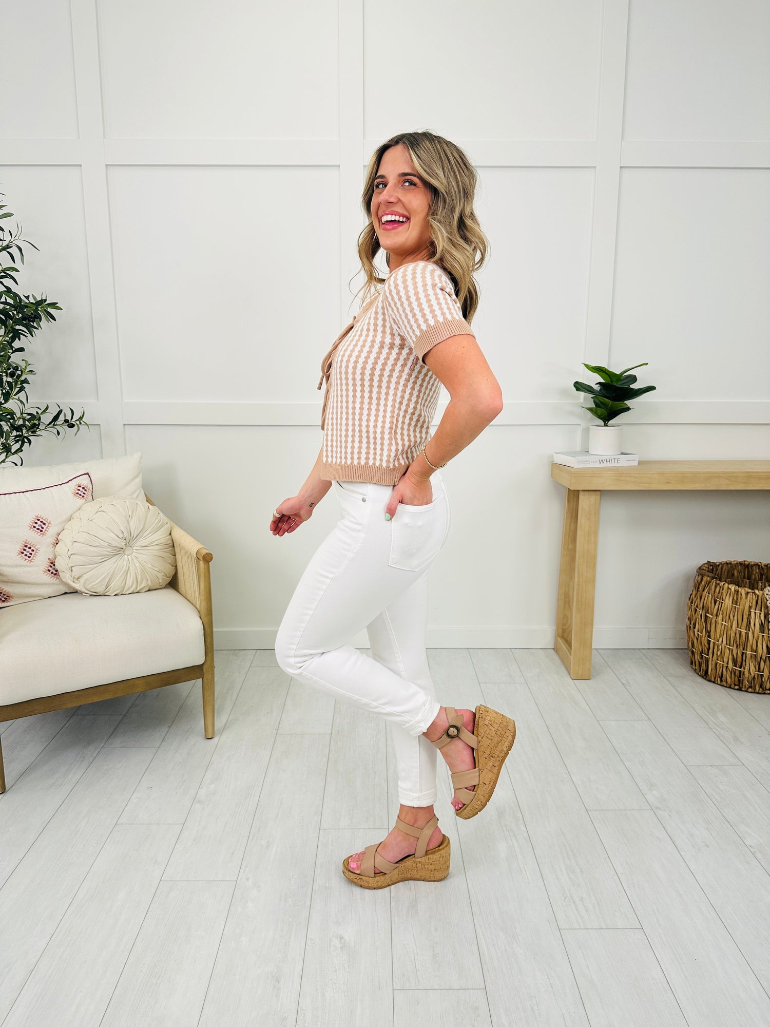 Have you heard? Skinny jeans are BACK on trend (and let's be honest, they never left our site) and these new white skinnies from Judy Blue are a spring and summer staple in your wardrobe. The fabric is soft and stretchy and not see through. They feature a high rise that holds everything in, which is essential in a white jean. They have zero distressing and can be dressed up or down for so many occasions!
