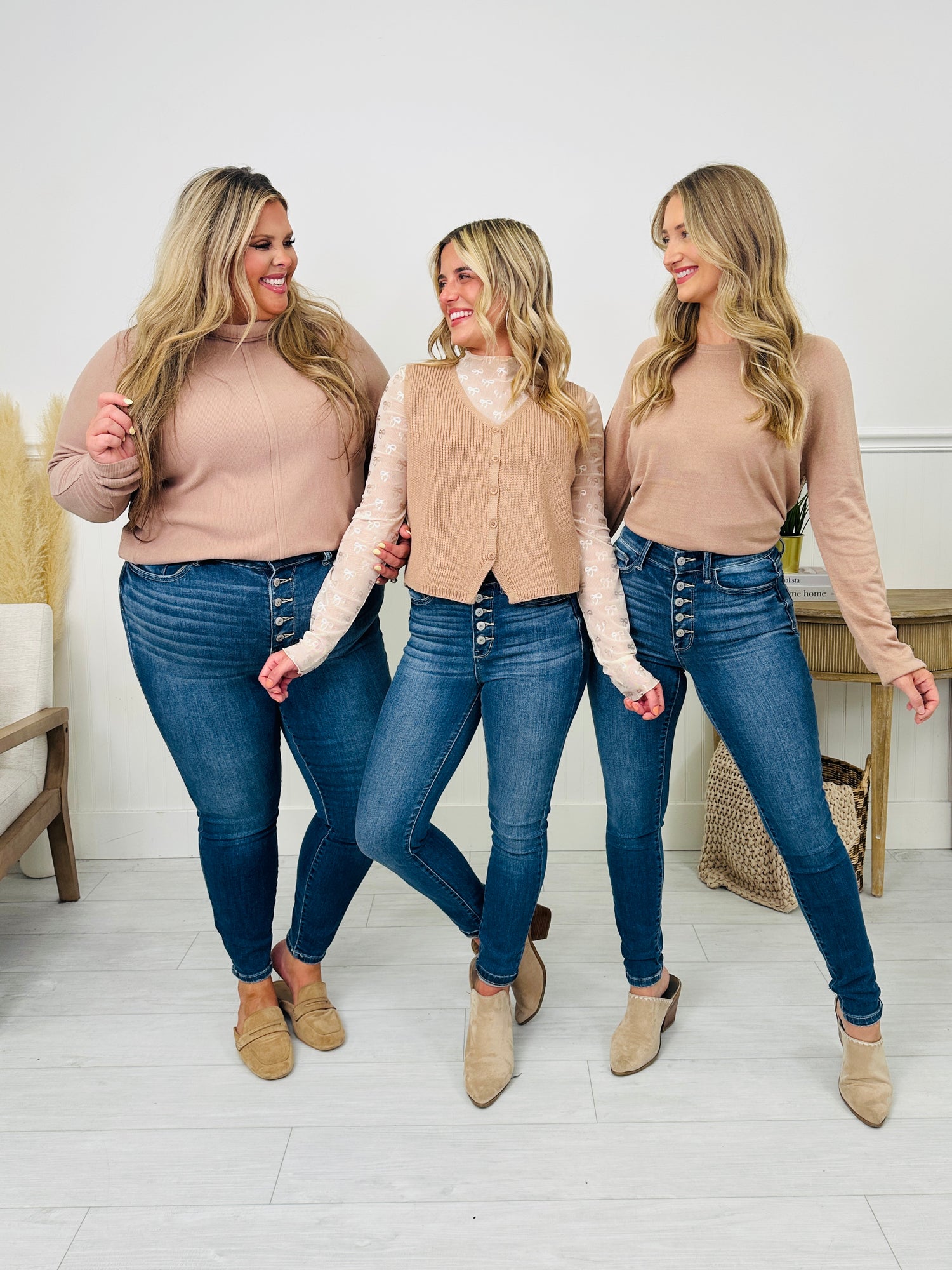 Stay fly this season in these new Judy Blue button fly skinny jeans that are perfect for fall. These are the perfect jeans to pair with all of your fall booties. We love the high rise paired with the button fly details that are going to suck you in and slim you out in all the right places.