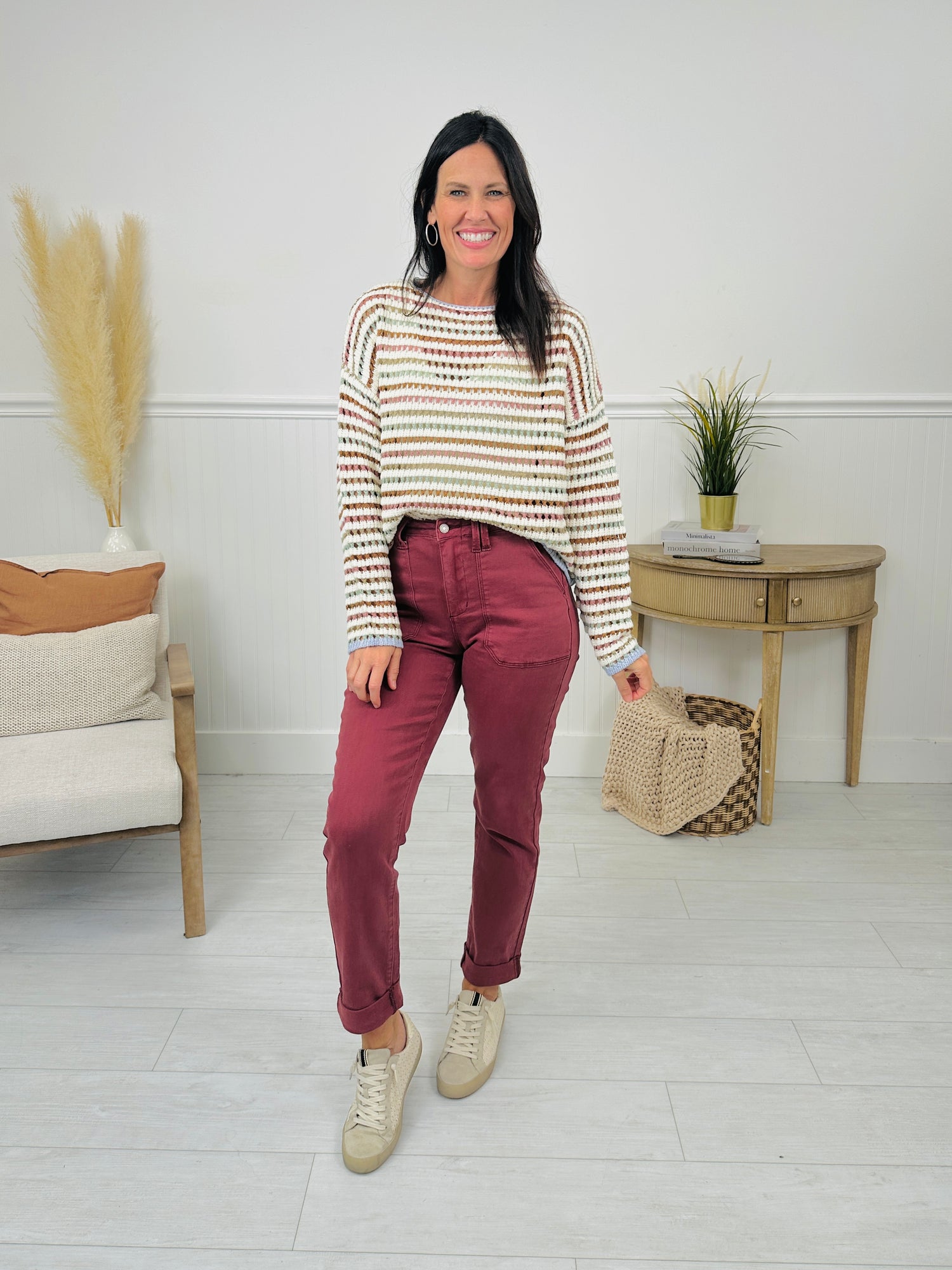 Wine down with these new pre-fall Judy Blue Jeans in a brand new, weekender style! These relaxed fit style of jeans are as comfortable as a jogger style jean but without the drawstring so that you can dress them up or down! They are buttery soft, so stretchy, and hold their shape all day long- you do not have to worry about them stretching out as the day goes on!