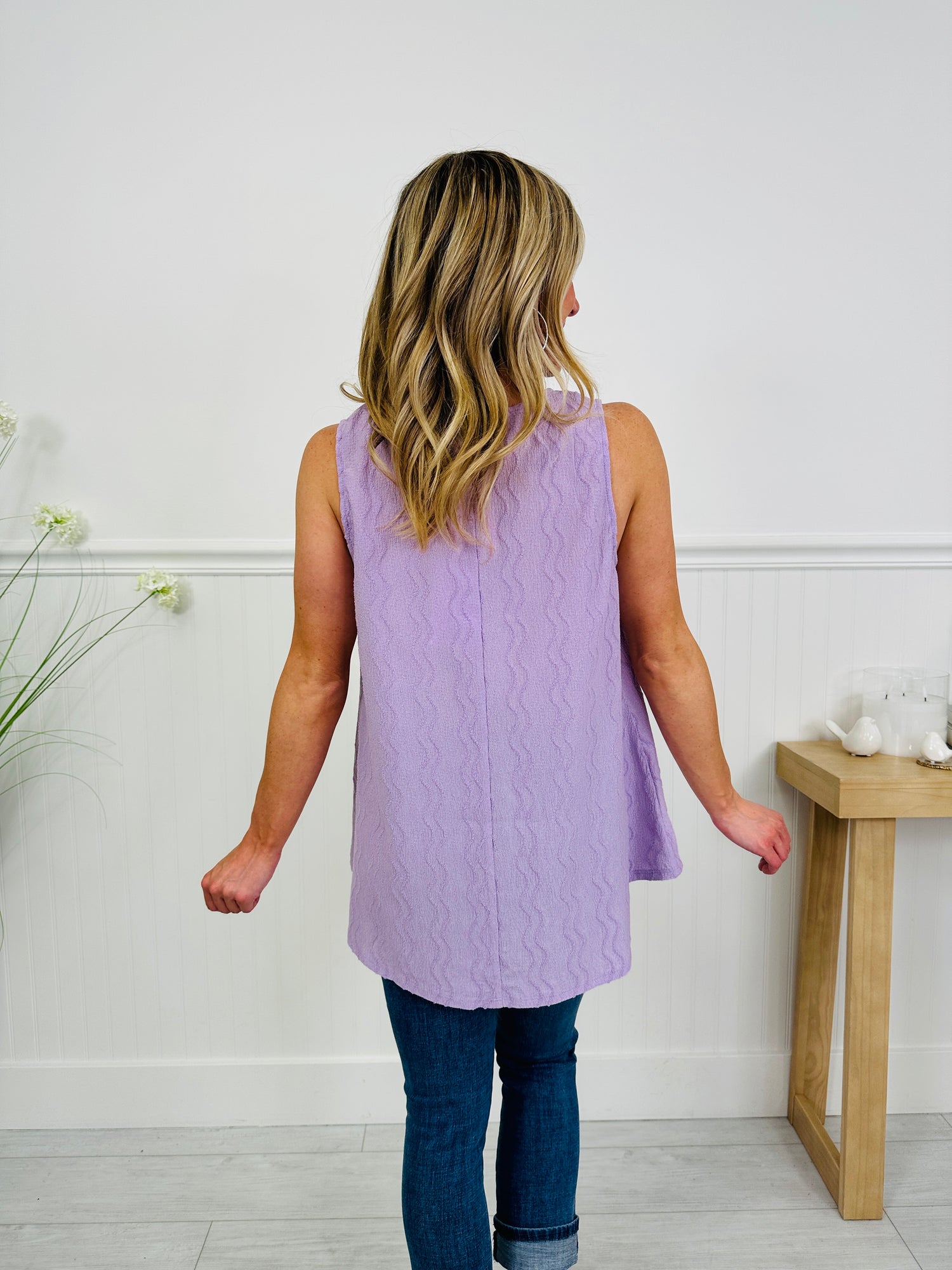 Just add sunshine to this sweet and simple top and your summer wardrobe is complete! This new arrival will be your new go-to for effortless everyday style. Designed with a soft, textured fabric and a relaxed, flowy fit, this tank is as comfortable as it is cute.