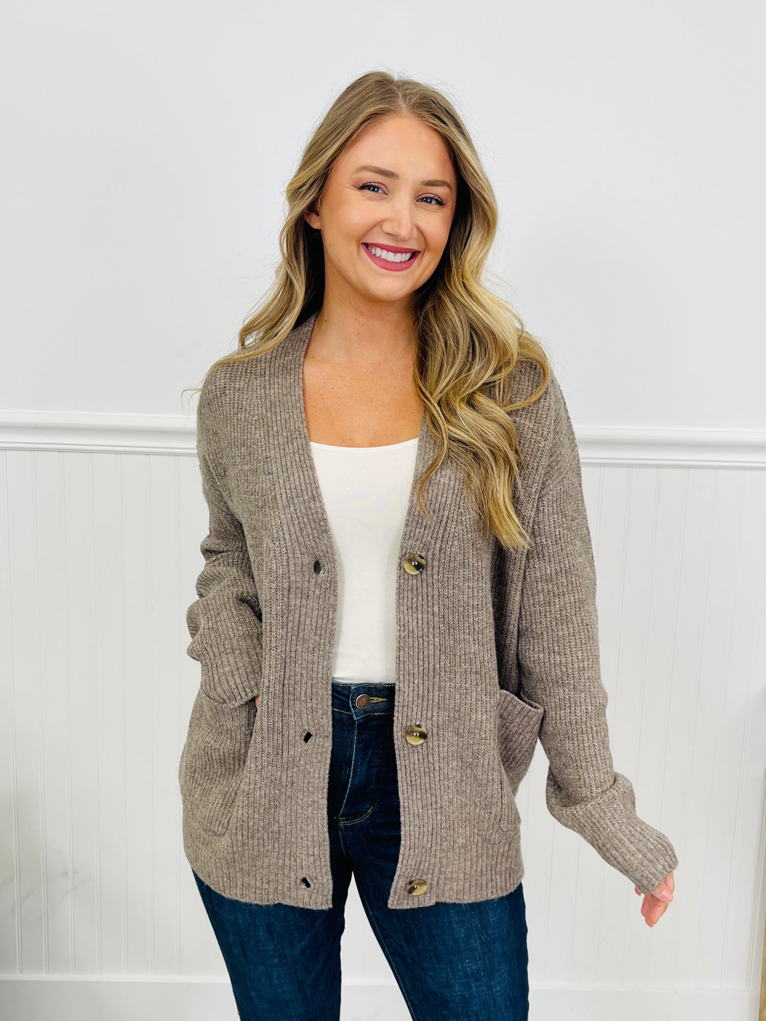 Classic meets cozy in this timeless cardigan that’s perfect for layering. The v-neck, button front design adds a touch of charm, while the soft textured knit gives it a warm and comfy feel. Finished with front patch pockets and wide banded trim, it’s an easy piece to dress up or down through every season.