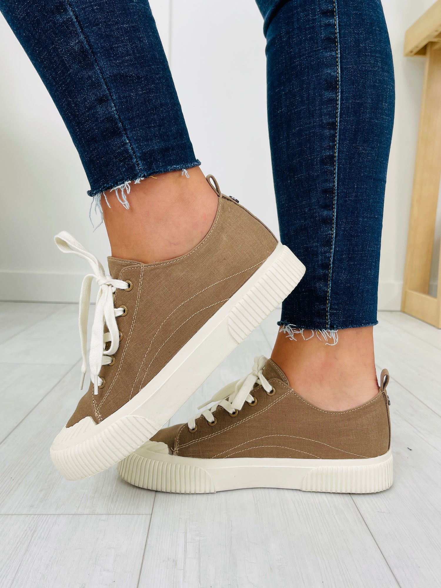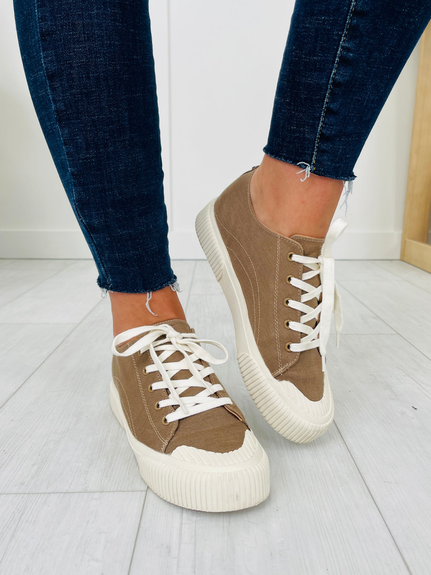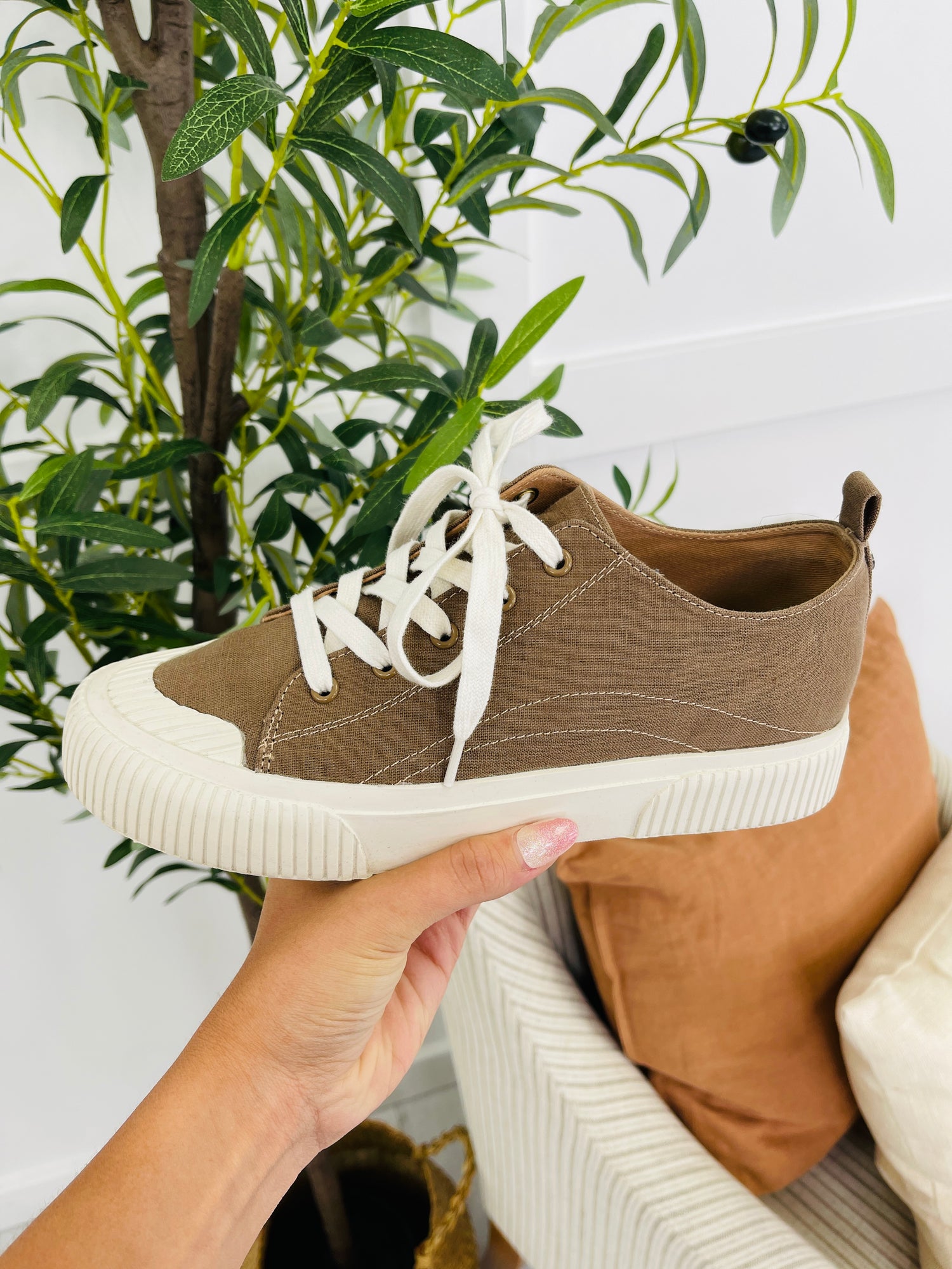 These lace-up sneakers blend sporty style with everyday comfort. The canvas-style upper offers a laid-back look, while the chunky rubber sole provides both height and comfort for all-day wear. The textured toe detailing adds a subtle pop of style, making them the perfect casual pair to pair with denim or dresses.