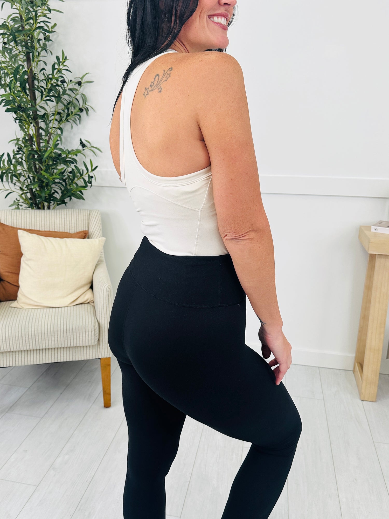 Made with a soft and stretchy fabric, this black tank is perfect for layering or wearing on its own. We love how the athletic fit and racerback design provide both support and flexibility. Whether you're working out or just running errands, this versatile top is a must-have for your athleisure wardrobe. Pull it on with leggings and sneakers for your next workout, or wear it under a matching sheer top with jeans!